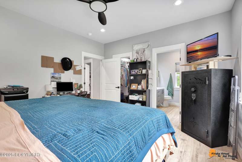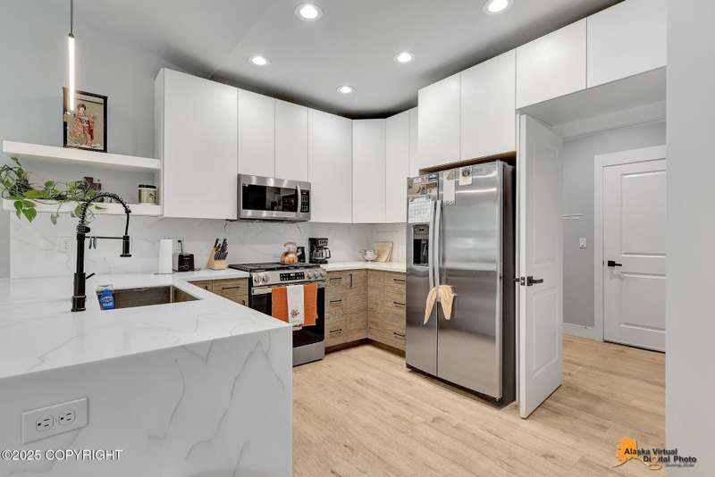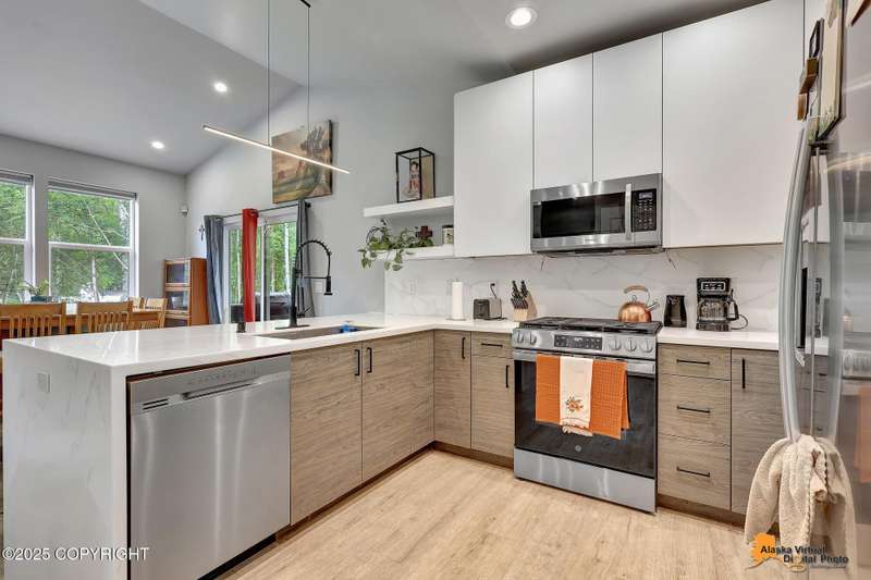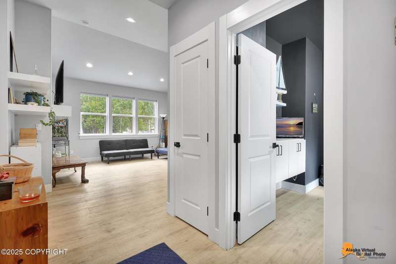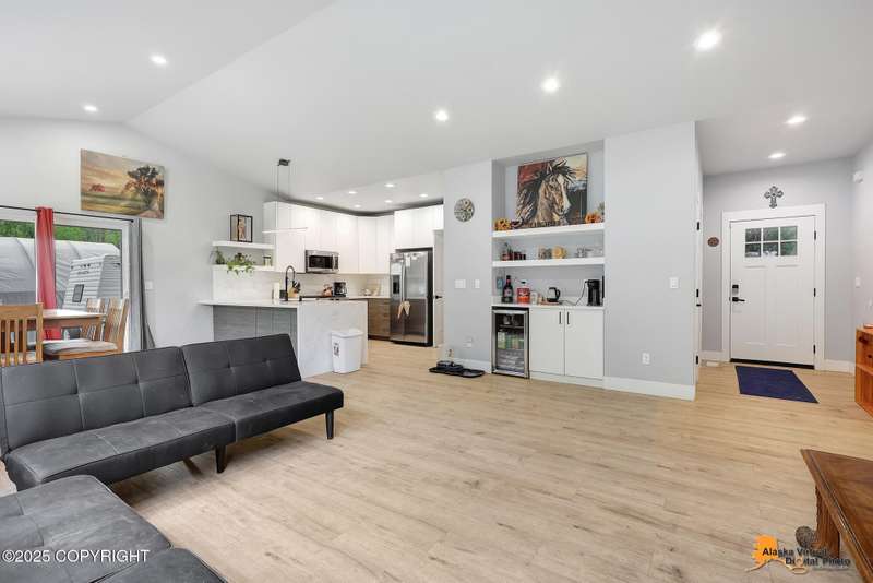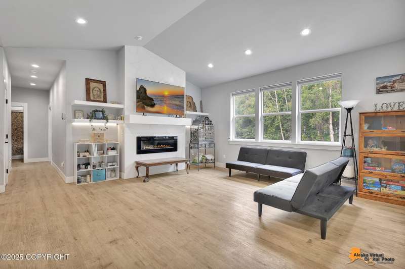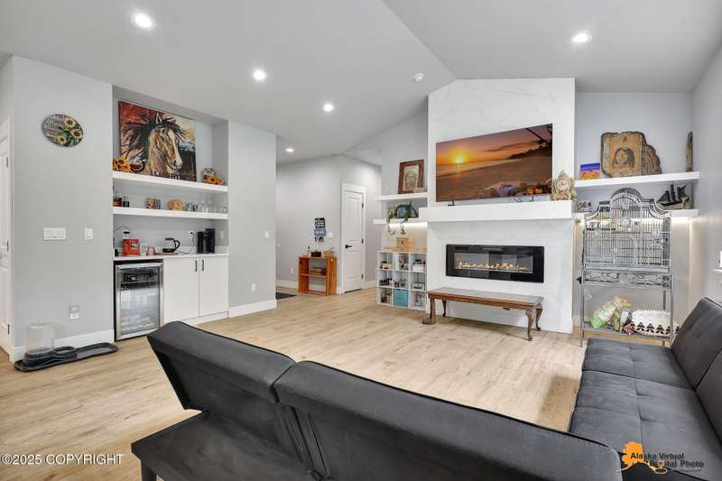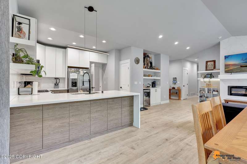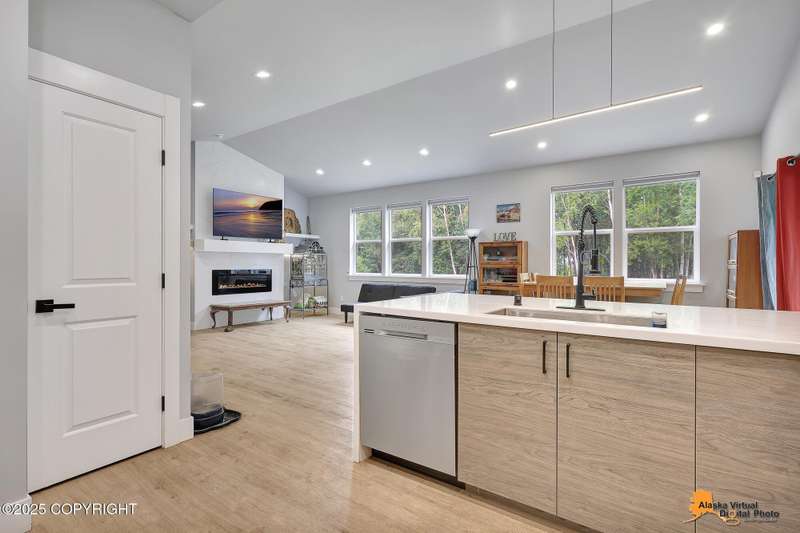 Initially built by Tandem Construction LLC in 2023, this stunning home offers a modern flair that continues to impress! Featuring 1,504 sq ft of living space, 3 spacious bedrooms plus a dedicated office, 2 bathrooms, and a generous 708 sq ft 3-car garage, this property is packed with thoughtful details. The luxurious primary suite features a tub with stunning floor-to-ceiling tile surround, offering a sleek and modern look, and ample linen storage in both bathrooms. Interior highlights include 9-foot ceilings throughout, locally crafted custom cabinetry, and the absence of carpet. The well-appointed kitchen features a coffee bar with a wine fridge, as well as newer appliancesincluding a stove and refrigerator. There is also a pantry, as well as additional cabinet storage space beneath the island. Enjoy the convenience of built-in office shelving with under-cabinet lighting, a quartz-wrapped electric fireplace for cozy evenings, and both front and rear decks, perfect for relaxing or entertaining. Additional features include keyless entry, and both covered front and back porchesperfect for year-round outdoor enjoyment. Schedule your showing todaywhy wait to build when you can have it all right now?
