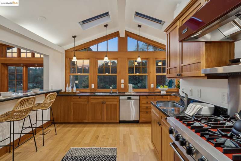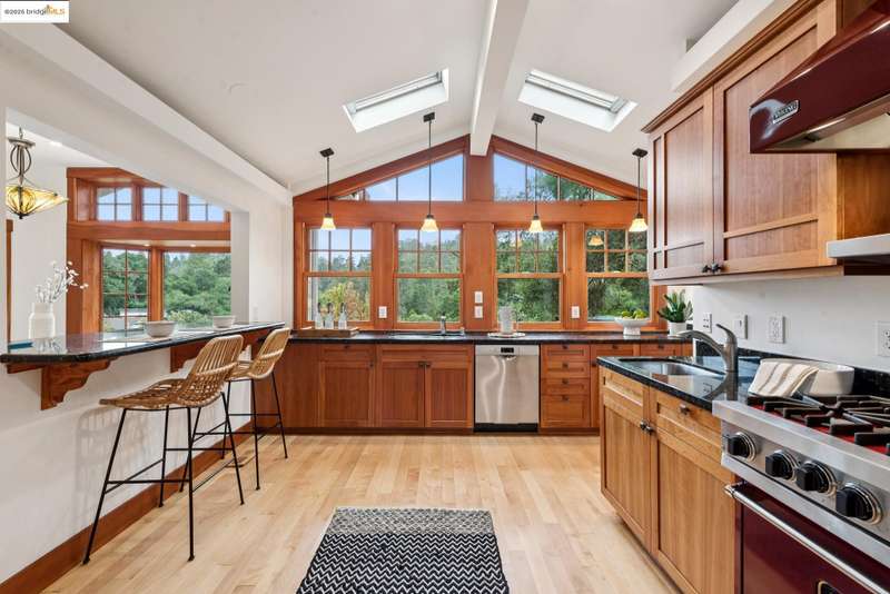 Surrounded by nature, this enchanting 1920’s Craftsman exudes timeless classic charm & elegance. As you enter, you will be drawn to striking verdant views & rich wood craftsmanship throughout. The light-filled living room features large windows, a vintage fireplace & sliding glass doors leading out to a terrace overlooking the expansive backyard & tree-top views. The dining room & spacious kitchen feature vaulted ceilings with expansive picture windows showcasing the stunning canyon views. The gourmet kitchen boasts beautiful cherry wood cabinets, stone countertops, a Viking range & ample storage. 2 bedrooms and a large bathroom complete the main floor. Lower level offers 2 additional bedrooms, a bonus room that could be used as a 5th bedroom or office, a cozy family room area, 2nd bathroom, laundry room & storage room. Both levels provide access to the amazing garden! The gardener’s paradise has a variety of fruit trees, a greenhouse for growing your favorite veggies, a fantastic play area and 2 large patios perfect for hosting family and friends, summer BBQ's & dining alfresco. This magical retreat provides the privacy & serenity you desire yet is so close to it all! Prime location just steps to Montclair Swim Club and minutes to Thornhill Elem and vibrant Montclair Village.