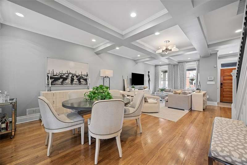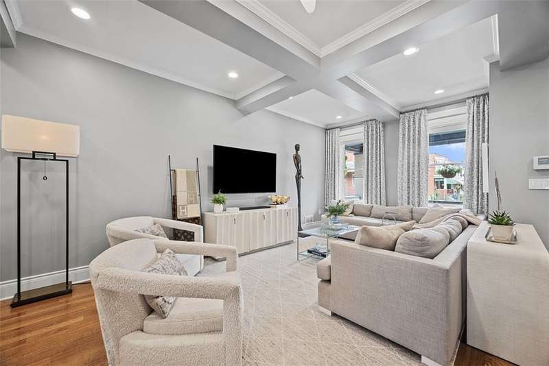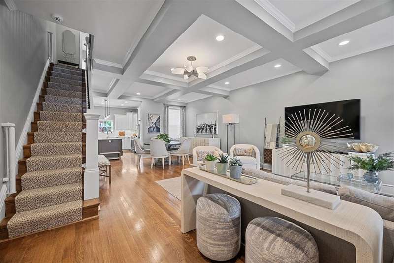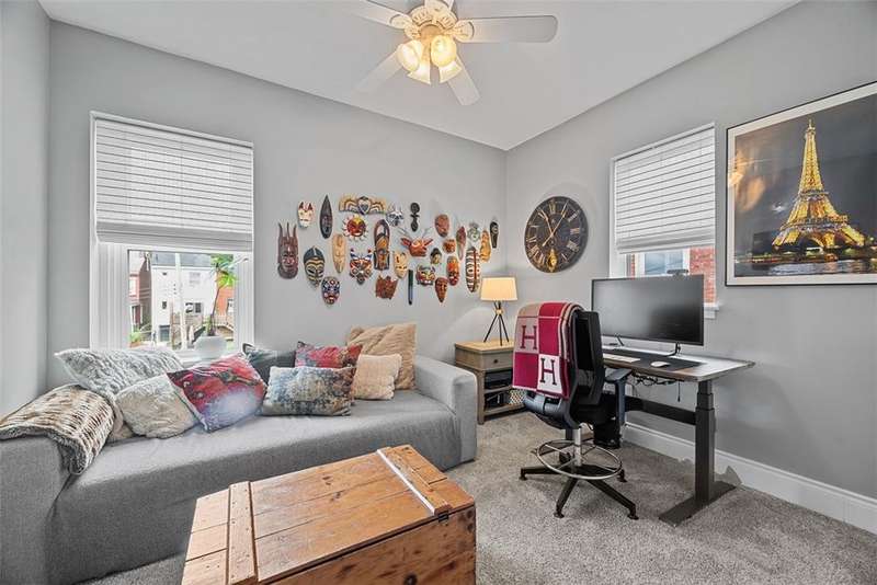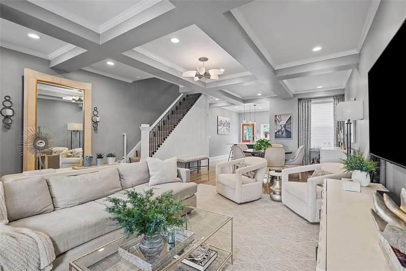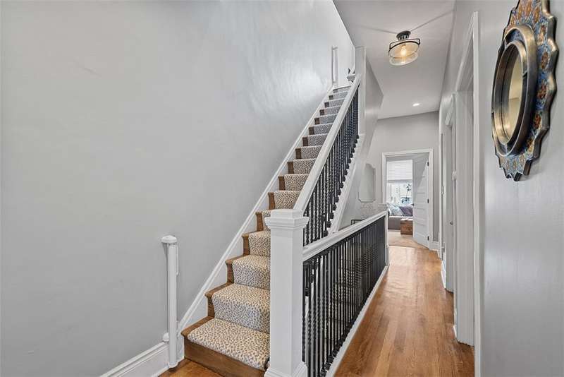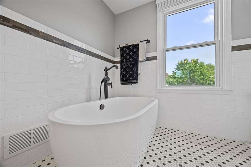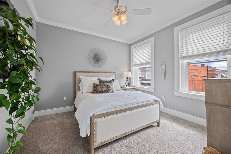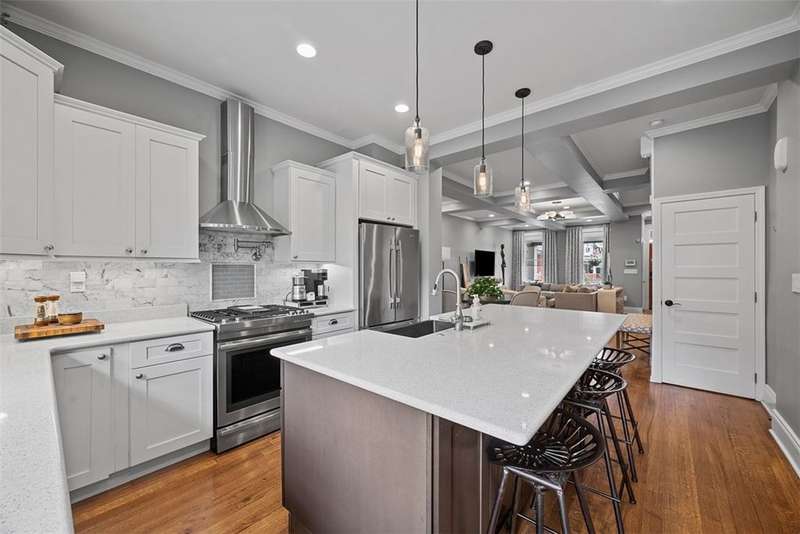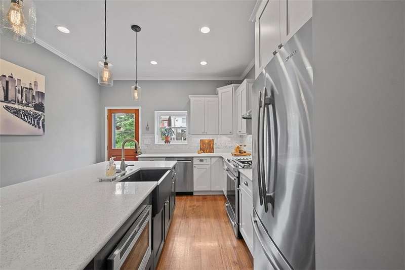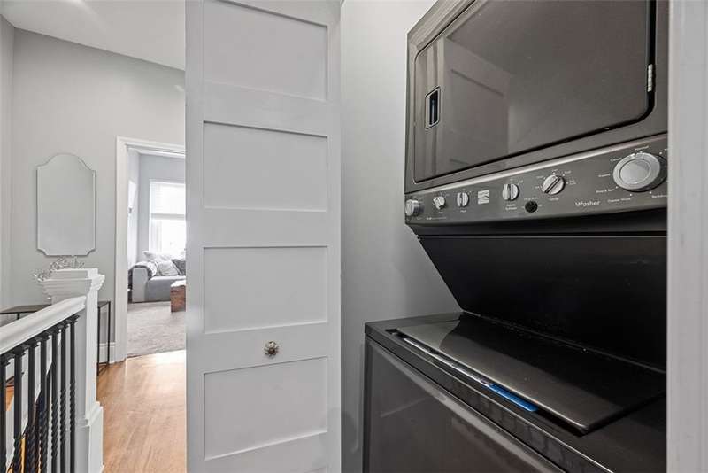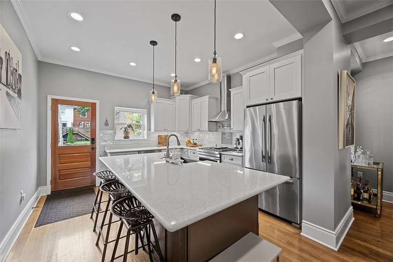 This stunning, fully renovated home blends classic architectural sophistication with top-tier modern upgrades. The open-concept main floor boasts genuine hardwoods, tray ceilings, and premium finishes including a Lutron Smart Lighting System and Vivint Security. The gourmet eat-in kitchen features quartz counters, sleek cabinetry, and ample space to entertain. The second floor offers an ensuite bedroom, two additional bedrooms, a stylish full bath with double vanity. The third-floor primary suite is a retreat with a spa-like bath, soaking tub, dual vanity, and custom walk-in shower. The basement includes a 4th full bath and walk-out access via double metal doors, ideal for indoor-outdoor entertaining or future finishing. Enjoy the fenced yard with maintenance-free turf and 2 off-street parking spaces. Prime location near the Strip, East End, hospitals, universities, and major highways.