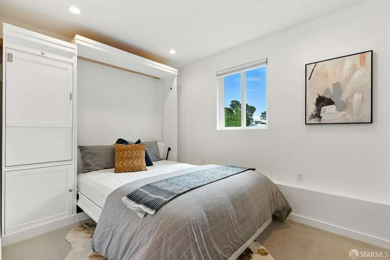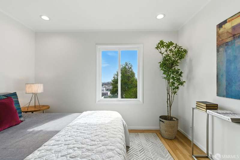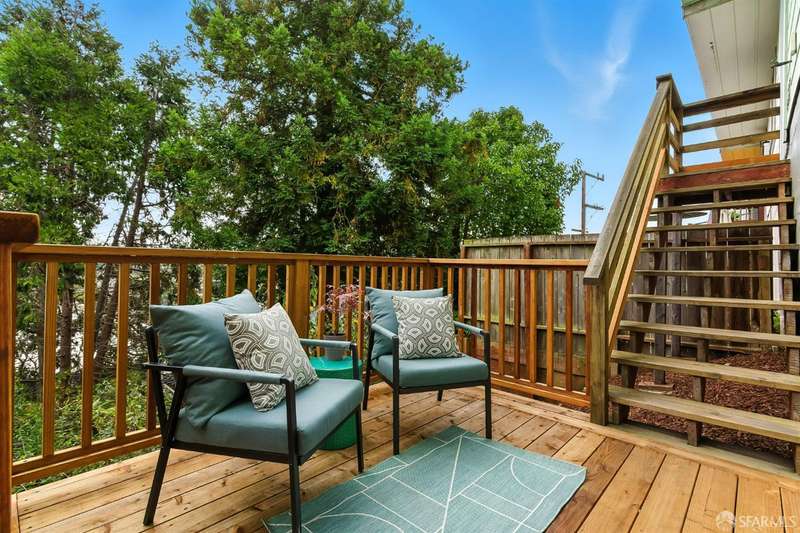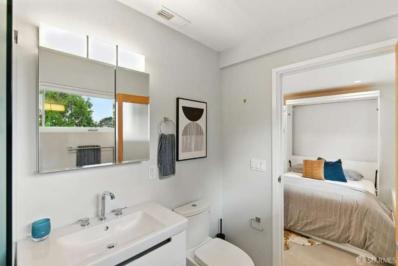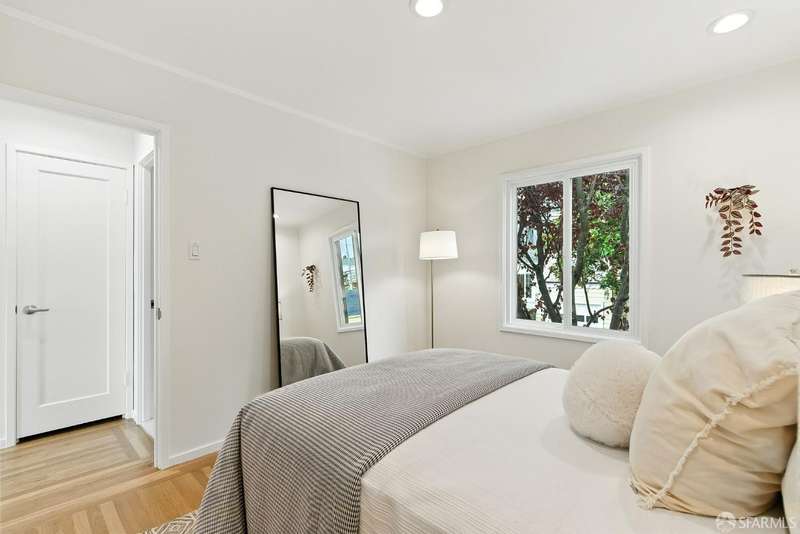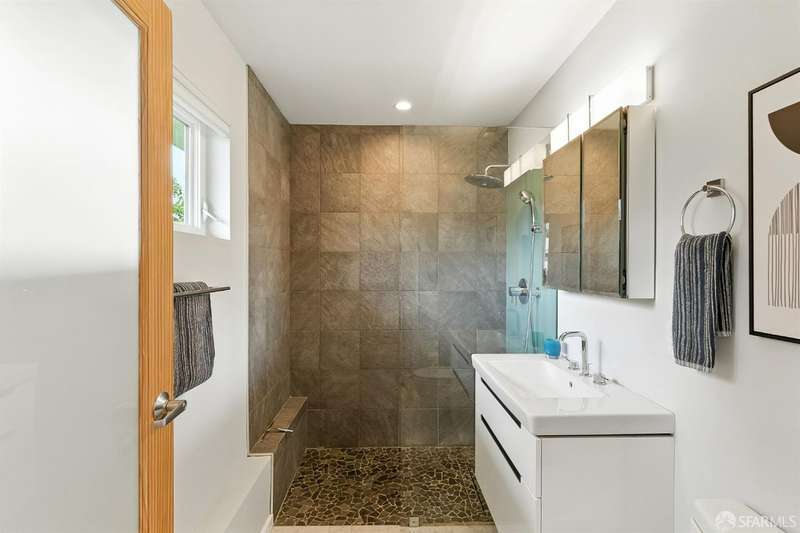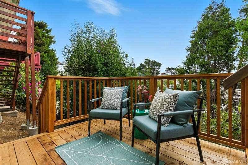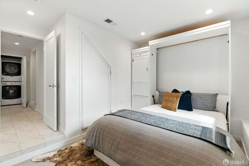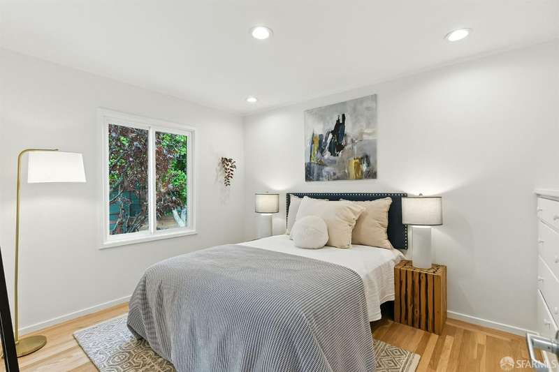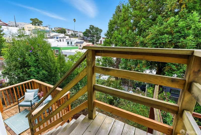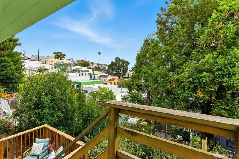 Just two blocks from the vibrant Cortland shopping district, 379 Nevada Street is a beautifully updated mid-century home designed for both comfort and style. Sunlight floods the main level through oversized east-facing windows, where an open-concept kitchen, dining, and living area connects seamlessly for everyday living and entertaining. Marble countertops, stainless steel appliances, abundant cabinetry and custom built-ins make the space both practical and beautifully appointed. Two bedrooms on this level share a bright, sunny, bathroom complete with decorative plaster walls and operable skylight. The lower level offers remarkable flexibility, featuring a third bedroom with a private en-suite bath, ideal for hosting guests or serving as a home office with a folding Murphy bed and built-in desk. Additional highlights include three storage closets, stacked laundry machines, and a spacious one-car garage with plenty of room for bikes or a workshop. Step outside to a lush private backyard with a sunlit deck, perfect for morning coffee or weekend gatherings. With easy access to both 101 and 280, this home balances commuter convenience with the walkability of one of Bernal Heights' most beloved neighborhoods.