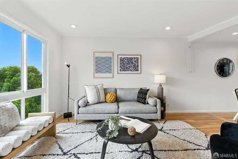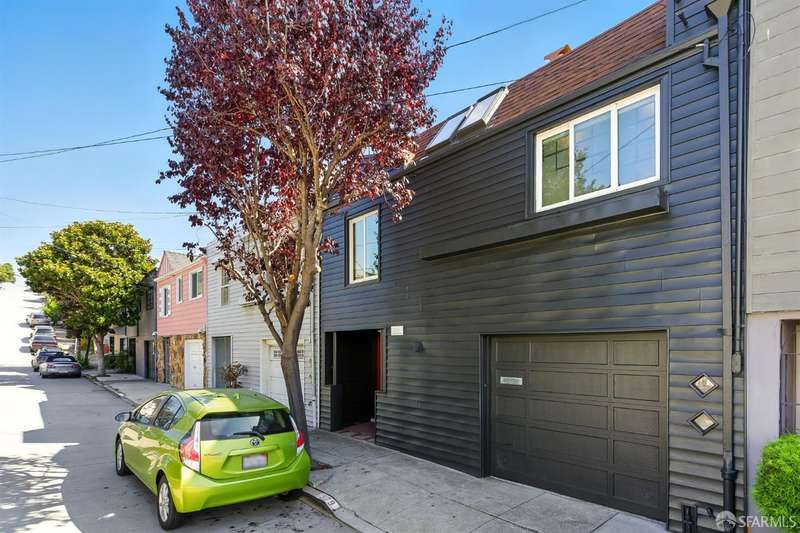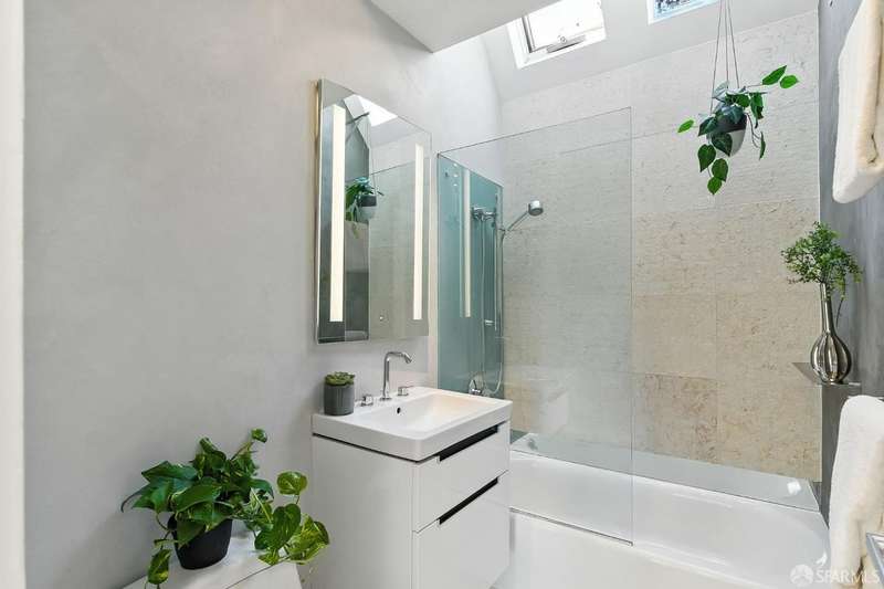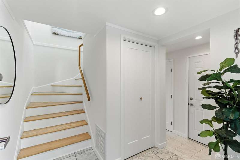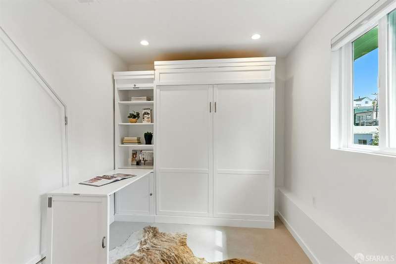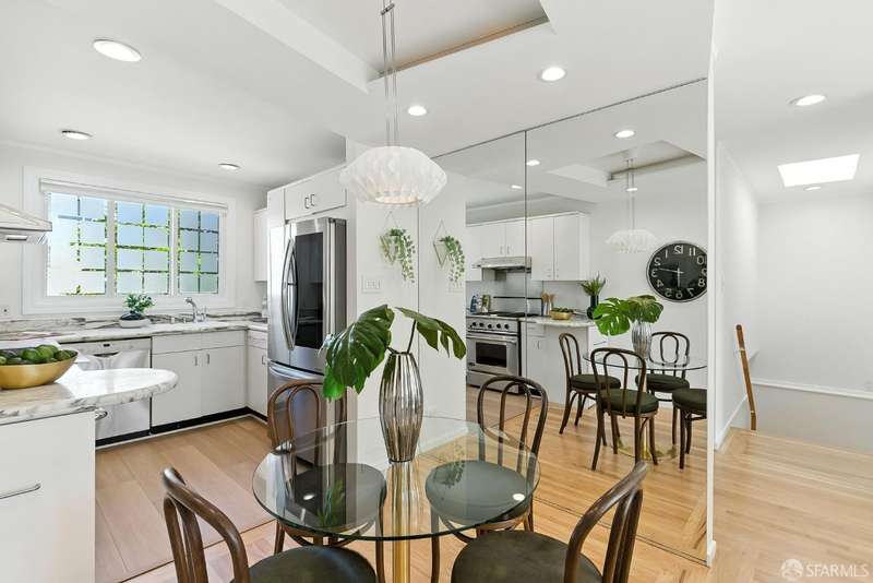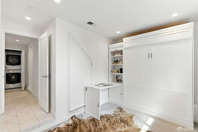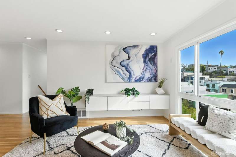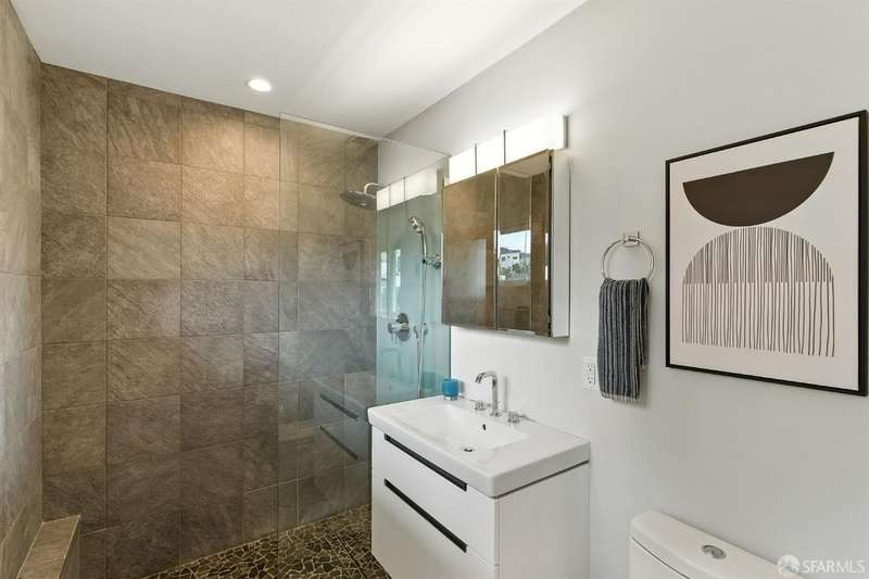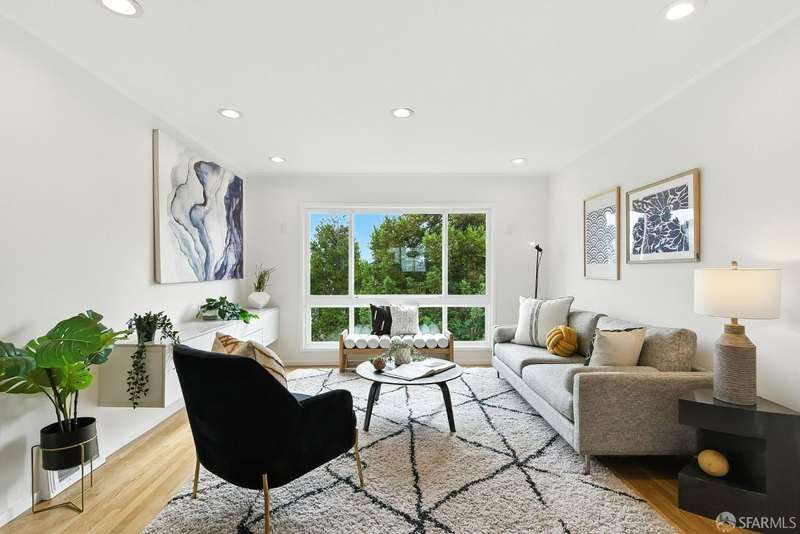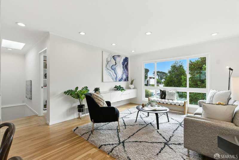 Just two blocks from the vibrant Cortland shopping district, 379 Nevada Street is a beautifully updated mid-century home designed for both comfort and style. Sunlight floods the main level through oversized east-facing windows, where an open-concept kitchen, dining, and living area connects seamlessly for everyday living and entertaining. Marble countertops, stainless steel appliances, abundant cabinetry and custom built-ins make the space both practical and beautifully appointed. Two bedrooms on this level share a bright, sunny, bathroom complete with decorative plaster walls and operable skylight. The lower level offers remarkable flexibility, featuring a third bedroom with a private en-suite bath, ideal for hosting guests or serving as a home office with a folding Murphy bed and built-in desk. Additional highlights include three storage closets, stacked laundry machines, and a spacious one-car garage with plenty of room for bikes or a workshop. Step outside to a lush private backyard with a sunlit deck, perfect for morning coffee or weekend gatherings. With easy access to both 101 and 280, this home balances commuter convenience with the walkability of one of Bernal Heights' most beloved neighborhoods.
