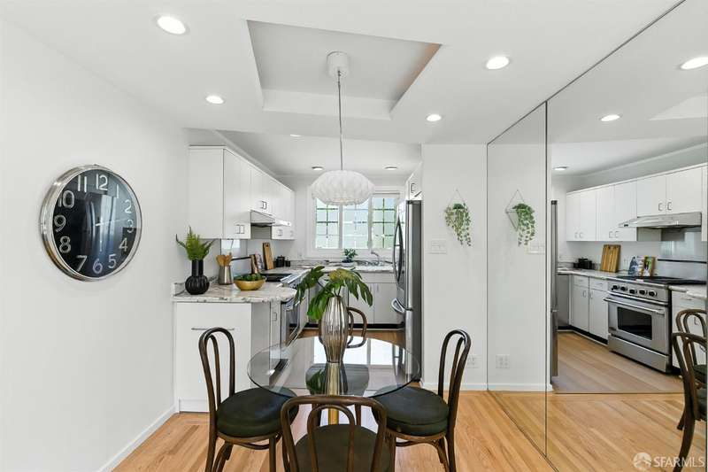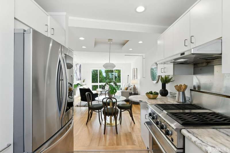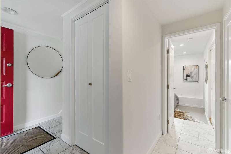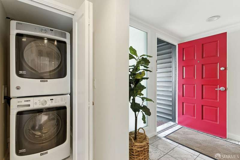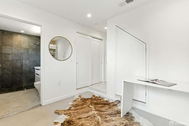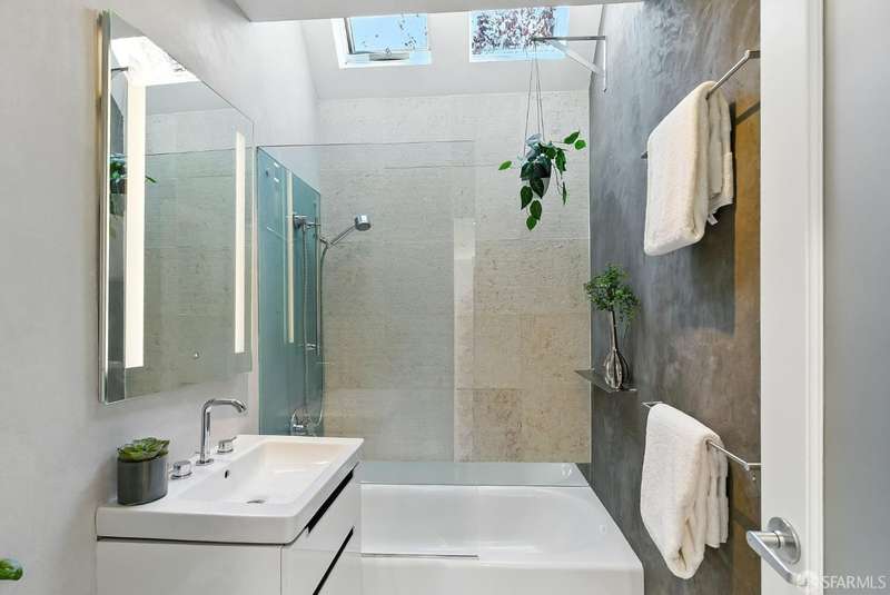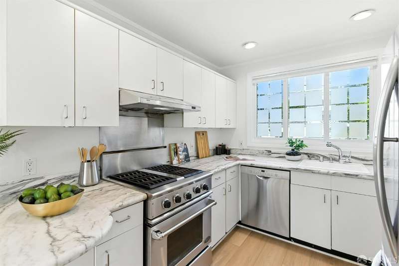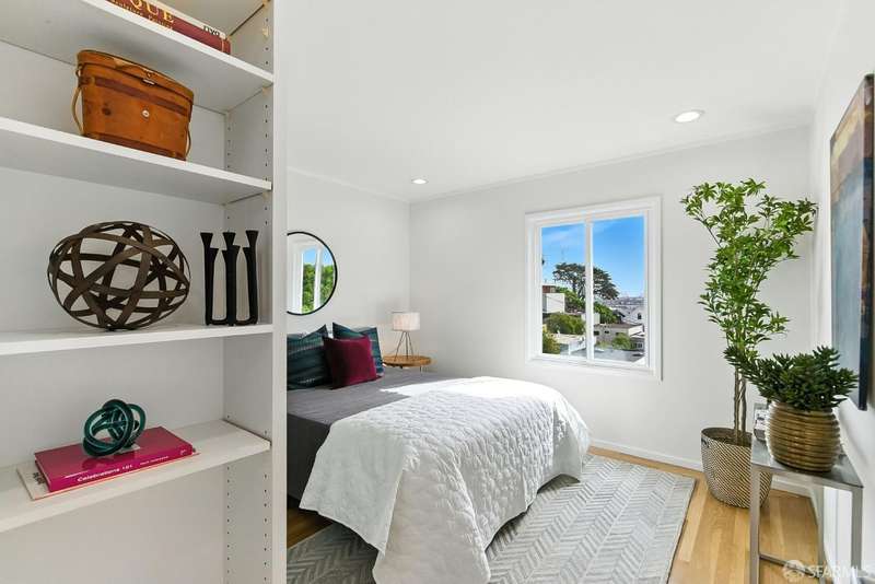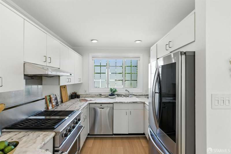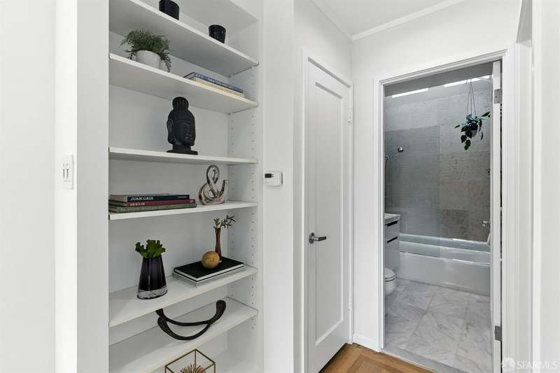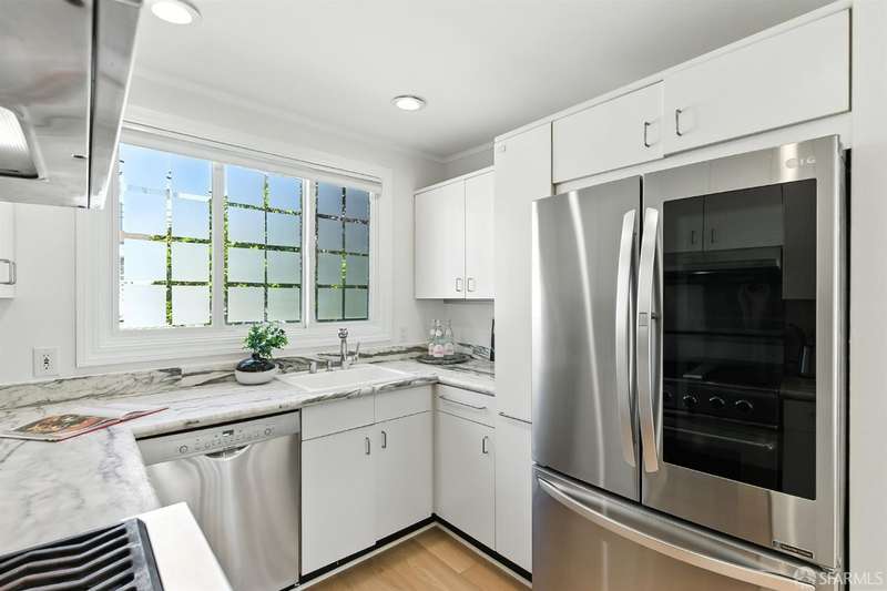 Just two blocks from the vibrant Cortland shopping district, 379 Nevada Street is a beautifully updated mid-century home designed for both comfort and style. Sunlight floods the main level through oversized east-facing windows, where an open-concept kitchen, dining, and living area connects seamlessly for everyday living and entertaining. Marble countertops, stainless steel appliances, abundant cabinetry and custom built-ins make the space both practical and beautifully appointed. Two bedrooms on this level share a bright, sunny, bathroom complete with decorative plaster walls and operable skylight. The lower level offers remarkable flexibility, featuring a third bedroom with a private en-suite bath, ideal for hosting guests or serving as a home office with a folding Murphy bed and built-in desk. Additional highlights include three storage closets, stacked laundry machines, and a spacious one-car garage with plenty of room for bikes or a workshop. Step outside to a lush private backyard with a sunlit deck, perfect for morning coffee or weekend gatherings. With easy access to both 101 and 280, this home balances commuter convenience with the walkability of one of Bernal Heights' most beloved neighborhoods.