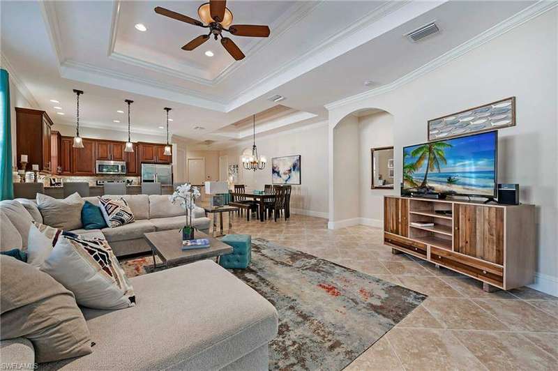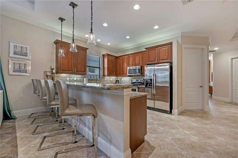 What are you waiting for? Significant price reduction and being offered turnkey furnished-this 3-bedroom plus den, 3-bath home with a two-car garage and screened pool is ready for you. Located in the sought-after 500 block of Naples Park, this move-in ready property combines quality finishes with a prime location just a short walk or bike ride to the beach to enjoy the beautiful sunsets. Inside, you'll find high ceilings, porcelain tile throughout (no carpet), and a gourmet kitchen with stainless steel appliances, granite countertops, and an oversized breakfast bar. The expansive great room is perfect for gathering, while solid wood doors, impact glass windows and doors, and a brand-new AC (2022) add comfort and peace of mind. The primary suite and guest rooms are spacious, with well-appointed baths. Step outside to a pavered, screened pool deck surrounded by lush landscaping and a fully fenced backyard-offering privacy and a perfect retreat. No HOA fees, Flood Zone X (no flood insurance required), and surrounded by newer homes with great curb appeal. This home is ideal for a full-time residence, seasonal escape, or investment property with proven rental history and future bookings already in place. Turnkey, upgraded, and in one of Naples' most desirable neighborhoods-schedule a showing today.