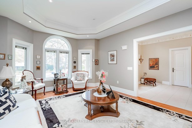 Rare, stunning custom-built bungalow nestled in one of Mississauga's most sought-after neighbourhoods. Set on an impressive 75' x 200' lot, this elegant home blends timeless craftsmanship with modern comfort. Step inside to discover soaring ceilings, crown moulding, coffered ceilings, wainscoting and decorative pillars that bring a touch of sophistication throughout. The sunken family room features a cozy gas fireplace and multiple bay windows flood the space with natural light. The spacious kitchen offers a walkout to a large composite deck - perfect for entertaining or relaxing in the private backyard oasis complete with an interlocked patio and outdoor jacuzzi. The primary suite boasts a luxurious ensuite with a jacuzzi tub and beautiful finishes. Enjoy a separate entrance to the tall, open-concept basement offering endless potential for extended family or future customization. A three-car garage, interlocked driveway, and two gas fireplaces complete this exceptional property. The home features a large Nanny's quarter. Custom-built with pride of ownership evident. Many extras included. Close to schools, transportation and all amenities. Just show and sell!