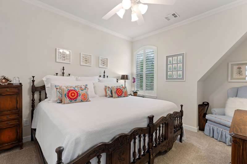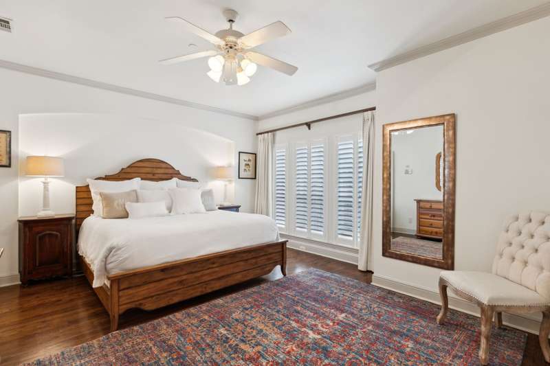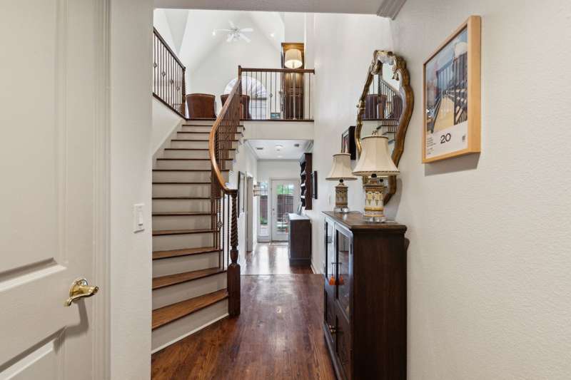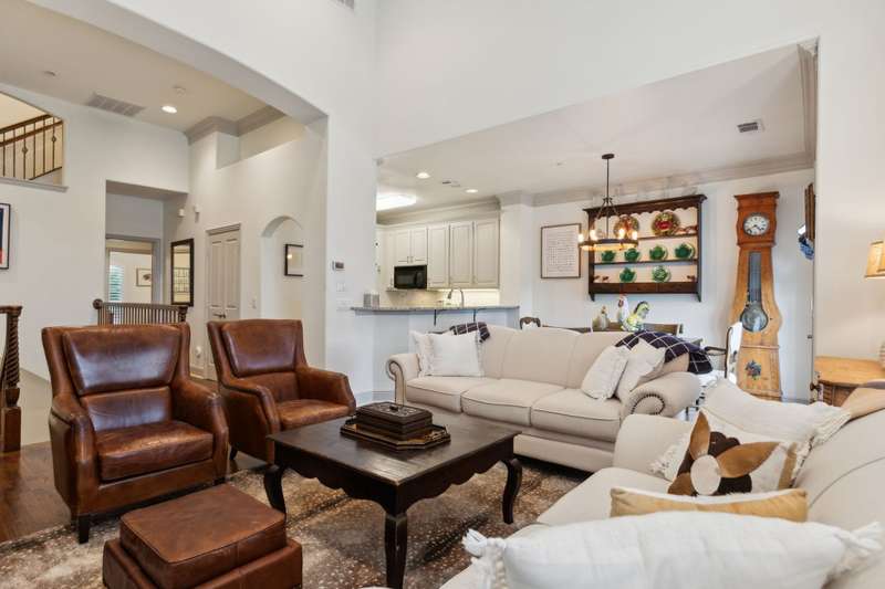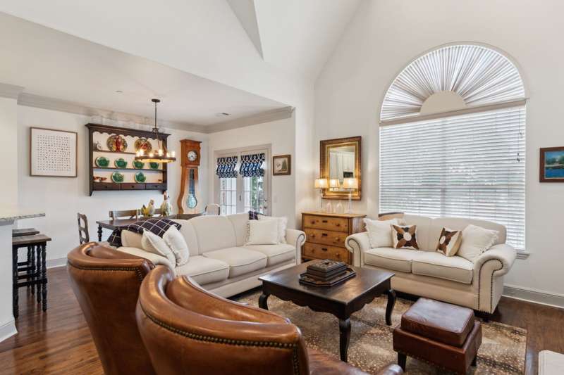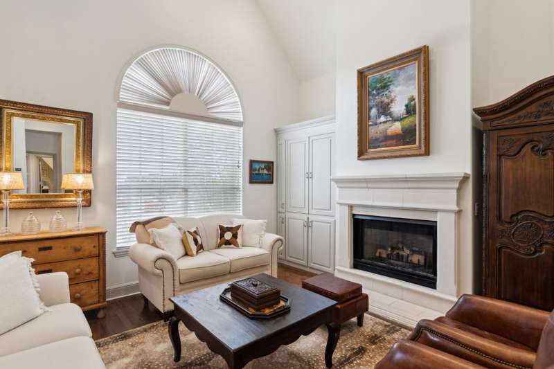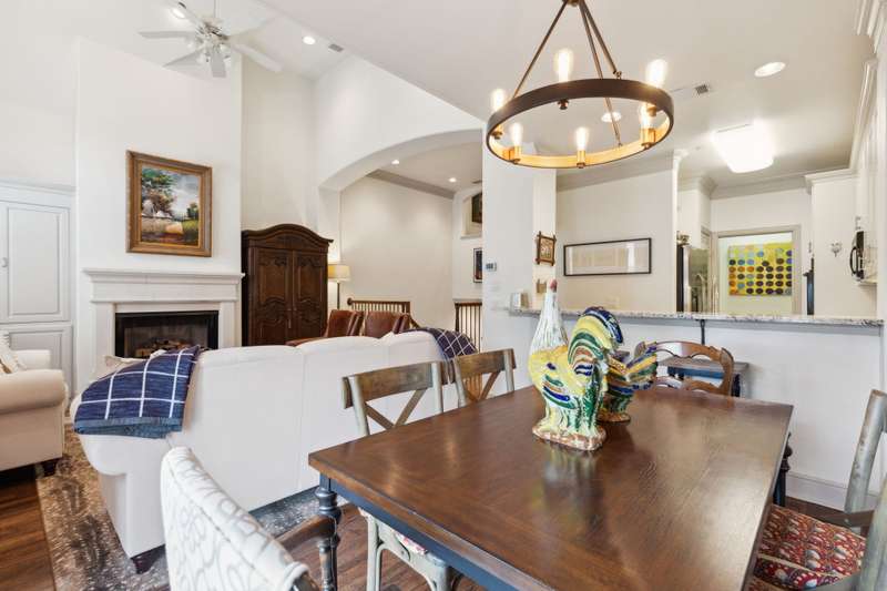 Stylish Townhome in Gorgeous Towne Lake community! Bright and inviting, this townhouse features vaulted ceilings, plantation shutters and rich hardwood floors. The light-colored kitchen includes granite counters, marble-like backsplash, gas cooktop and a breakfast bar - perfect for everyday living and entertaining. Relax in the spacious first-floor primary suite complete with spa-like bath & separate shower. Third floor bonus area is a private second master ideal for guests or flexible living. Handy built-ins, ample storage and great use of space throughout the unit. Enjoy a lovely, private patio with HOA set to install new fencing soon! Community and adjacent City park feature walking trails, ponds, dog park access and plenty of guest parking just steps away from the front door.