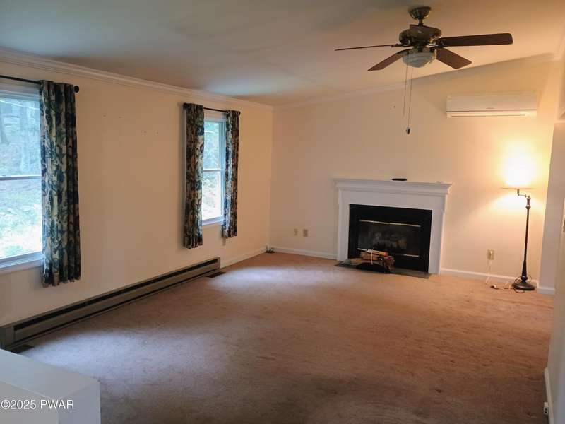 This well-maintained home lies at the end of a long winding paved driveway, nestled on 1.78 private acres. Offering 3 bedrooms and 2 full baths, this property combines comfort and convenience with a touch of modern practicality. The bright kitchen opens to an enclosed sun room, perfect for enjoying morning coffee or relaxing with a view of the peaceful surroundings.High ceilings, crown molding and a cozy fireplace enhance the spacious living area, while split-unit air conditioning keeps the home comfortable year-round. The primary suite features a double sink vanity and ample space for unwinding. Additional thoughtful features include a stair lift, metal roof, and a one-car attached garage.Outside, you'll find a paved driveway, carport, and a shed with ramp access for easy storage of lawn equipment or tools. Whether you're looking for a full-time residence or a weekend retreat, this property offers privacy, convenience, and natural outdoor beauty.