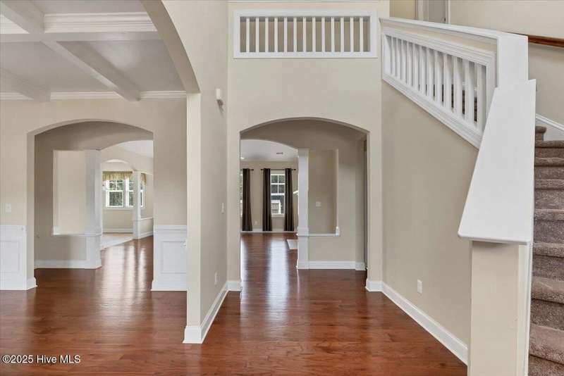 Nestled in the highly sought-after Meadows at Farmlife, this stunning 4-bedroom, 3.5-bath home offers comfort, space, and style on a generous 0.74-acre lot. Easy 30 minute commute to Ft. Bragg, 15 minutes to downtown Pinehurst & Southern Pines. With over 3.300 sq ft, this is the best value in Moore County! Enter through a welcoming two-story foyer that opens to a striking staircase and a formal dining room with elegant coffered ceilings. The living room features vaulted ceilings and large windows that overlook the backyard, creating a bright and open space connected seamlessly to the kitchen and breakfast area. The kitchen is a large gathering space complete with granite countertops, stainless steel appliances, ample cabinet space and a walk-in pantry.Featuring the master bedroom on the main level with a bathroom that includes separate vanities, a walk-in shower, garden tub, and a generous walk-in closet. Upstairs, you'll find three additional bedrooms?one with its own ensuite bath?plus a large bonus room, a full hall bath, and a walk-in attic offering convenient storage space.Outside, enjoy peaceful views of the large backyard that backs up to a small pond, along with a 28' x 12' workshop?ideal for hobbies, storage, or a home project space. Major updates include a brand new HVAC in 2024 and a new water heater in 2025.Don't miss your chance to call this beautiful home yours!