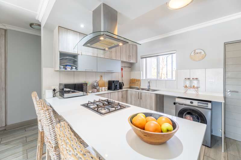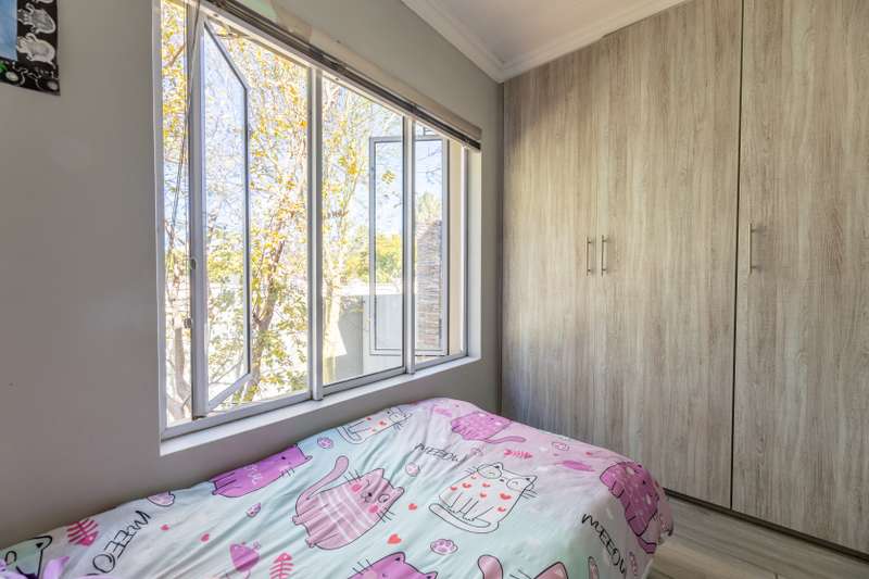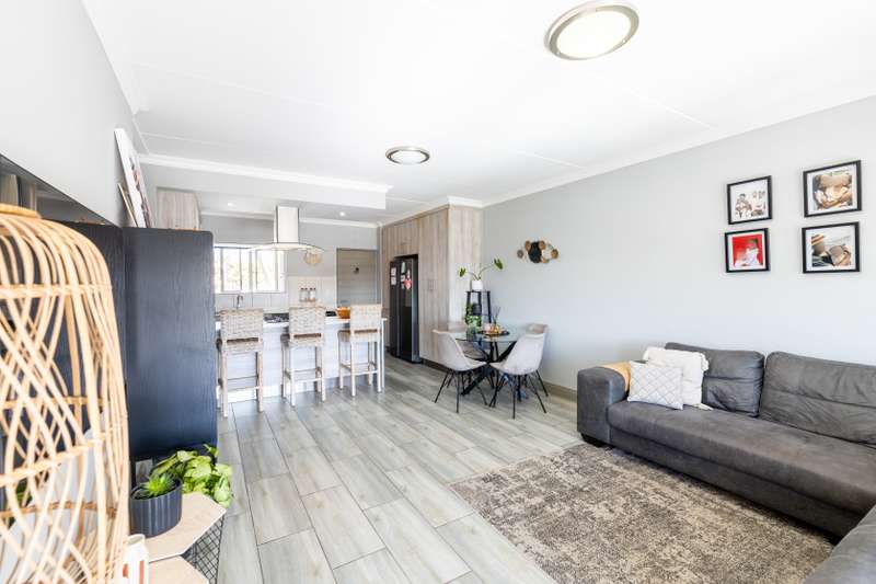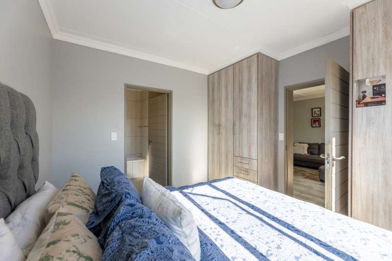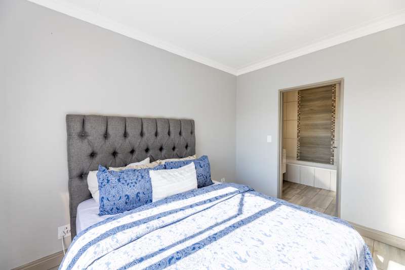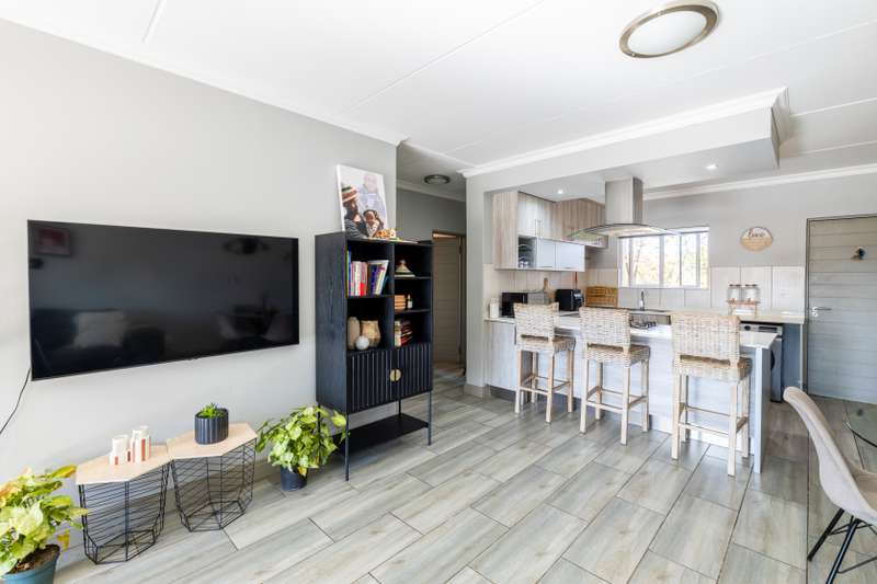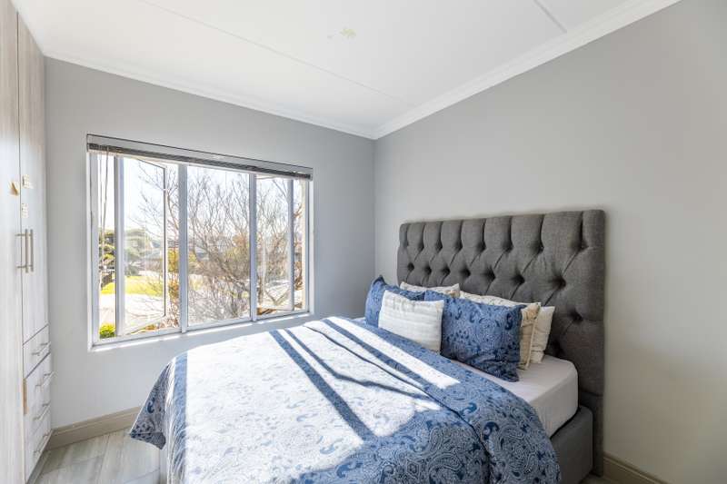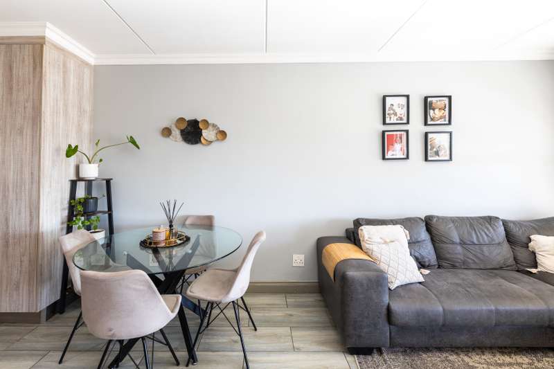 VIEW BY APPOINTMENT This elegant two-bedroom, two-bathroom apartment is a rare blend of comfort, security, and understated sophistication. Inside, a thoughtfully designed open-plan layout connects the heart of the home, the modern kitchen with Caesarstone countertops, gas hob, and ample cabinetry, flows seamlessly into a light-filled living and dining area—ideal for entertaining or a quiet night in. Slide open the patio doors and breathe in the calm that comes from having space and greenery just beyond your threshold. The main bedroom is a serene sanctuary, offering generous cupboard space and a full en suite bathroom. The second bedroom—bright and versatile—is perfect for guests, a study, or a little one's room, with a dedicated second bathroom just across the passage. Residents here enjoy more than just beautiful living spaces. The complex offers 24-hour security, access-controlled entry, a communal swimming pool, a children’s play area, and peaceful walking paths lined with indigenous trees. It’s a neighborhood where people wave, where kids ride their bikes safely, and where a cup of coffee at the Broadacres Centre is only minutes away