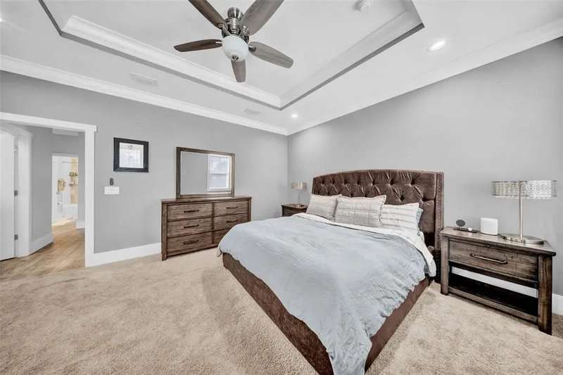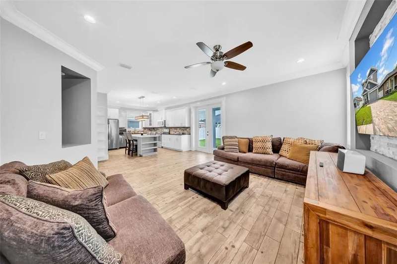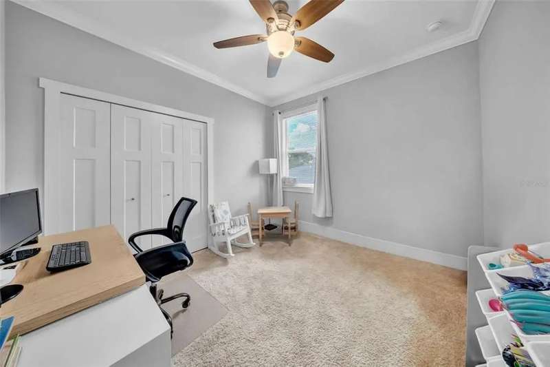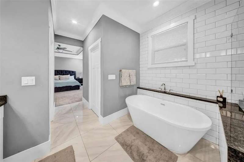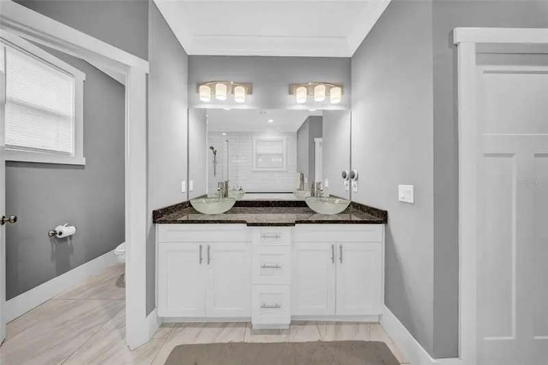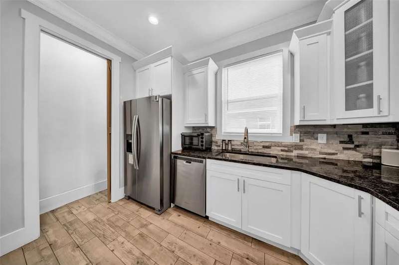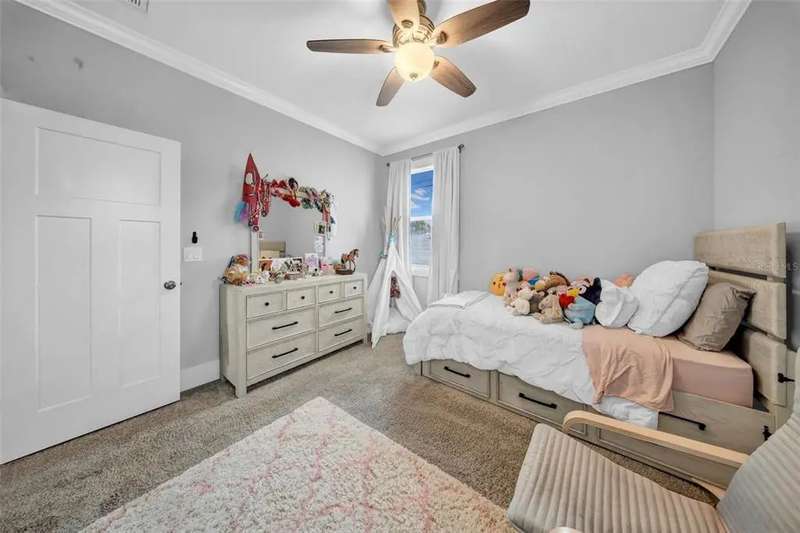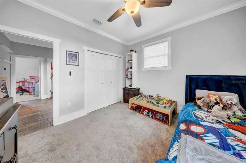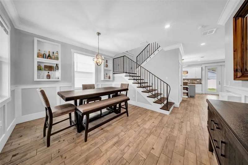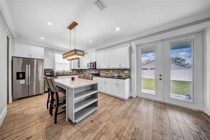Discover this beautifully upgraded two-story home featuring 4 spacious bedrooms and 2.5 bathrooms. From the moment you step inside, youâ??ll notice the attention to detail and high-end finishes throughout. The main living areas showcase elegant porcelain wood-look tile, 9'4" ceilings, crown molding, and oversized 8" baseboards, creating a refined and cohesive atmosphere. The gourmet kitchen is a true centerpiece, complete with soft-close white wood cabinetry, granite countertops, a barn door pantry, and a large quartz island perfect for entertaining. The adjacent living room features a custom media niche with built-in HDMI, while the striking wrought iron staircase adds a sophisticated touch. Upstairs, the luxurious primary suite offers a tray ceiling, dual walk-in closets, and a spa-inspired en-suite bath with an expansive stand-up shower featuring dual showerheads, a freestanding soaking tub, dual vessel sinks with granite countertops, and timeless subway tile walls. Built with efficiency in mind, this home includes energy-saving LED lighting, a tankless water heater, and an insulated garage door with a WiFi-enabled LED opener. Exterior highlights include a brick paver driveway, a covered back patio ideal for outdoor gatherings, and white vinyl fencing surrounding the private backyard. Ideally located just 15 minutes from Downtown Tampa, 10 minutes from Tampa International Airport, and only an hour from Floridaâ??s world-renowned Gulf Coast beaches, this home offers both luxury and convenience.