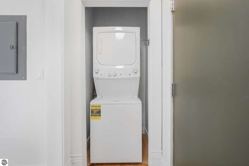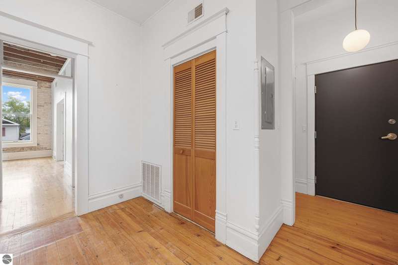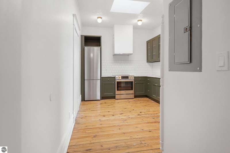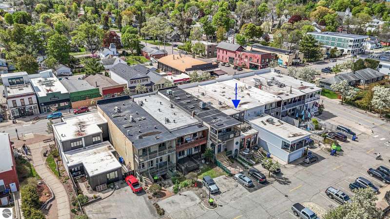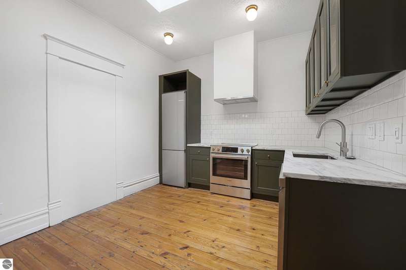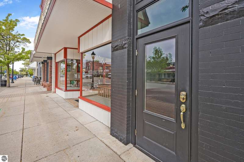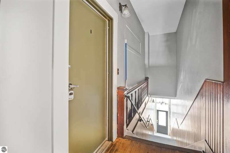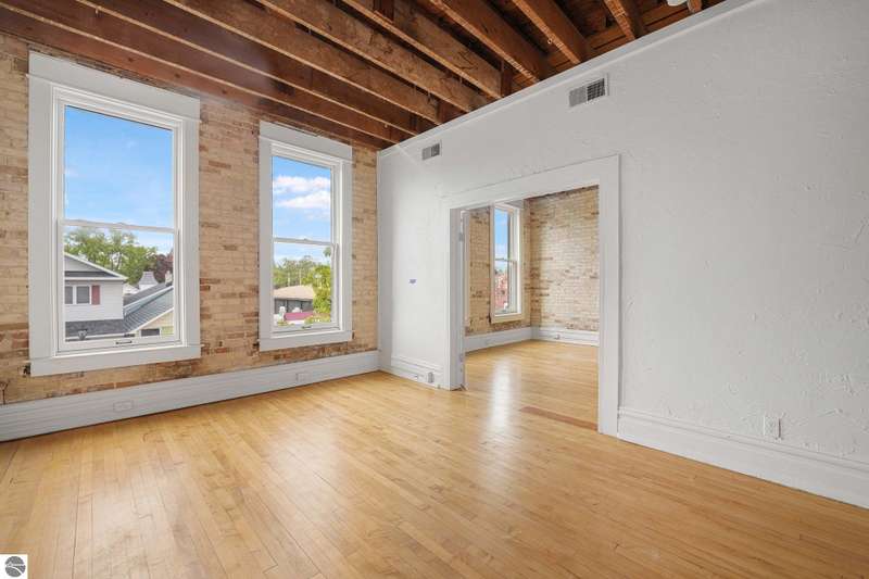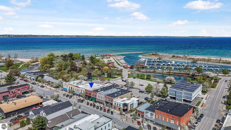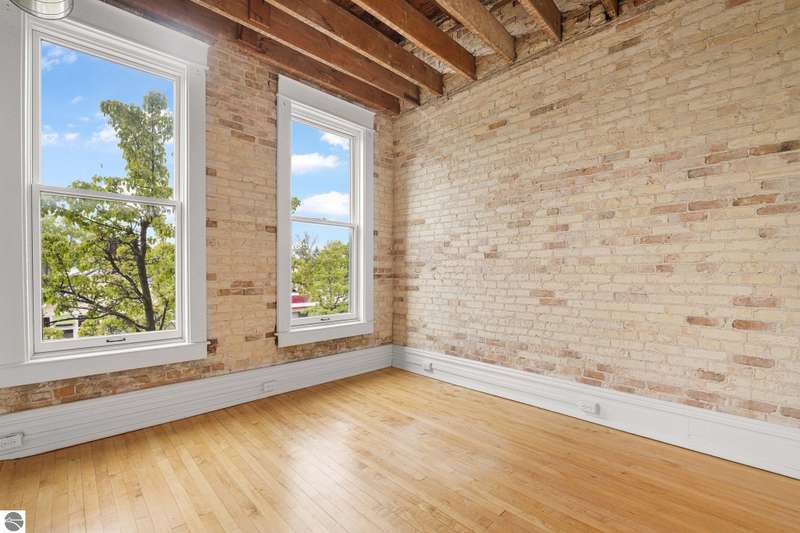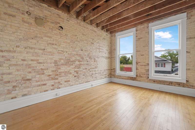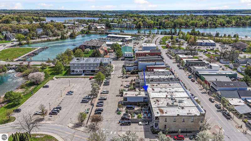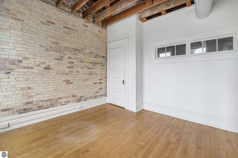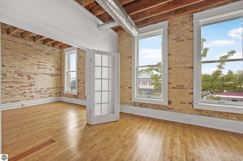 Nestled in the heart of downtown Elk Rapids, this beautiful lofted condo is a thoughtfully designed one-bedroom, one-bath residence that has a brand new kitchen and also includes a private office--perfect for remote work or creative pursuits. The property is zoned B2, allowing for short-term rentals, which makes it a unique opportunity as either a personal residence or an income-producing investment. Set within a historic building, this stylish unit features original wood ceilings, exposed brick walls, loads of natural light and warm hardwood floors that lend charm and character throughout. The open-concept kitchen and living area provide a welcoming space to relax or entertain, while large windows fill the interior with natural light. Modern conveniences include in-unit laundry, a brand new kitchen and appliances, an owners storage unit in the lower level and more. Just steps from local shops, restaurants, marina, and the beach, this home offers an ideal combination of village life and comfort in one of Northern Michigan's most vibrant lakefront communities.