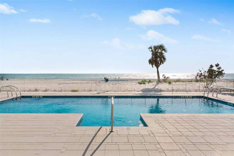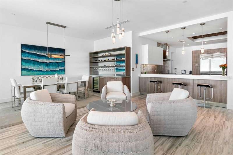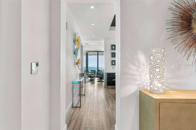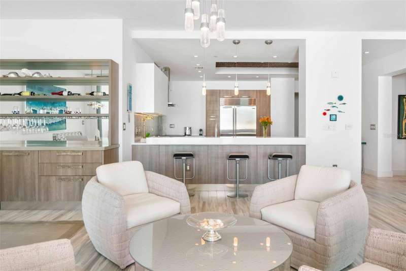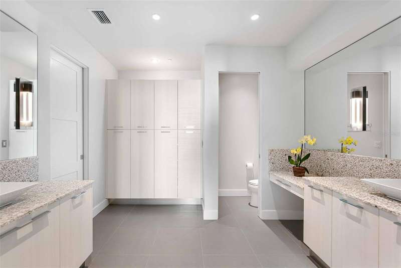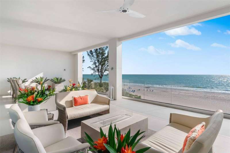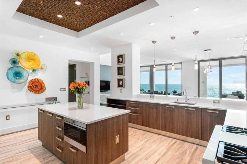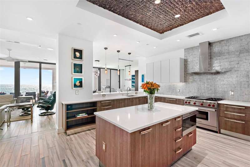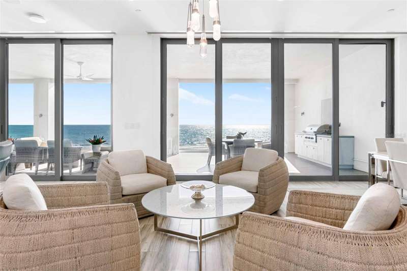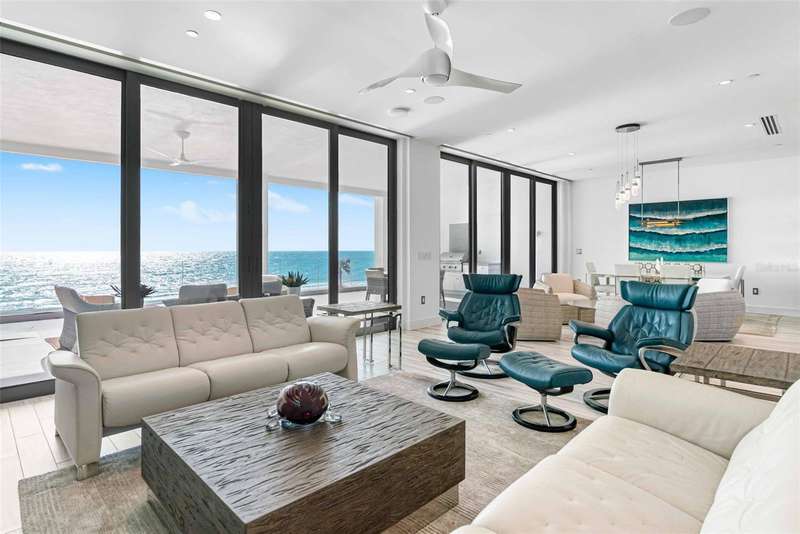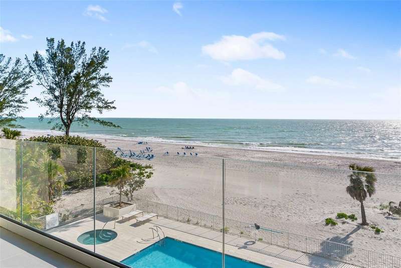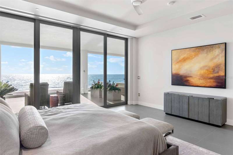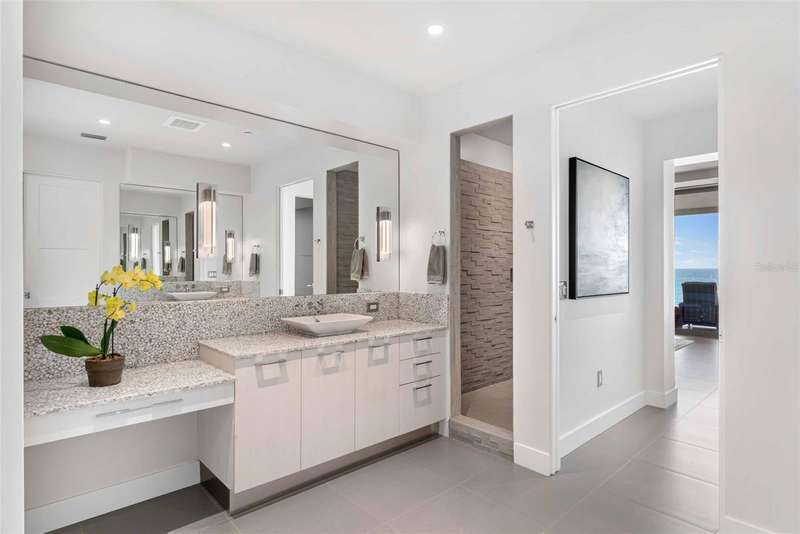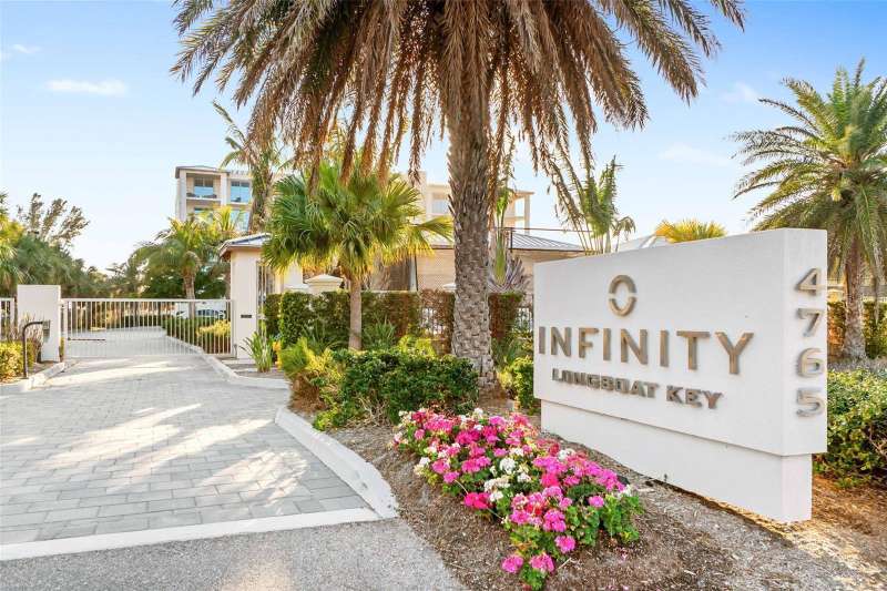 Embrace unparalleled modern elegance and coastal serenity at Infinity on Longboat Key, where refined architecture meets the timeless beauty of the Gulf of Mexico. This exclusive boutique condominium boasts only 11 meticulously designed residences, offering a private and luxurious retreat for those seeking a sophisticated island lifestyle. From your private elevator, enter a spacious foyer that flows into an expansive living area, where floor-to-ceiling glass sliders frame breathtaking Gulf views. Beyond, a large covered balcony with an outdoor kitchen and multiple seating areas beckons, perfect for alfresco dining amid endless ocean vistas. The open-concept kitchen exudes sophistication through its thoughtful design. Custom cabinetry in warm wood tones pairs beautifully with pristine stone countertops and Italian Britannium backsplash. Premium stainless steel appliances, including a gas cooktop and sleek hood, anchor the space. A central island provides both functionality and visual interest, while elegant pendant lighting and expansive Gulf views elevate the aesthetic, creating an inviting culinary environment that seamlessly blends style and practicality. The exquisite primary suite is a haven of calm, with sliders opening to a private balcony where you’ll awaken to the sound of waves and views of turquoise waters lapping sugar-white sands. The spa-inspired primary bath offers a tranquil escape, featuring dual vanities, a water closet, and a spacious walk-in shower. Thoughtfully designed guest suites ensure privacy and comfort. A versatile flex room provides endless possibilities, whether used as a home office, media room, or den. Additional conveniences include a well-equipped laundry room with ample counter space and storage. This condo comes with two private garages that can fit four cars. Resort-style amenities elevate the living experience with a beachfront heated pool, private spa overlooking the beach, large sun deck, beach access, an outdoor entertainment area, clubhouse with catering kitchen, fitness center, and pickleball/tennis courts. Infinity’s prime location on Longboat Key provides effortless access to St. Armands Circle’s world-class shopping and dining, as well as the vibrant cultural offerings of downtown Sarasota. Golf enthusiasts can enjoy nearby championship courses, while boating enthusiasts have easy access to marinas and coastal waterways.