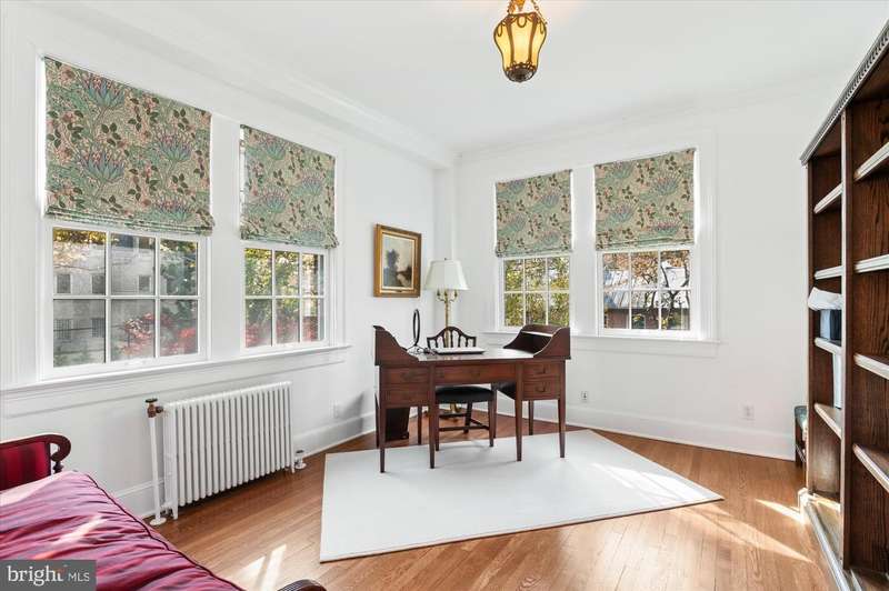 Park Avenue elegance thrives in the heart of Kalorama! Welcome to 2540 Massachusetts Avenue NW, one of Washington's most distinguished cooperative apartment communities. Designed by Architect Harry L. Edwards and opened in 1926 as the ""Army and Navy"" cooperative (owing to the large number of military officers who were among the original unit owners), the building is featured in James M. Goode's ""Best Addresses"" under its original name. Since the ""Army and Navy"" moniker caused some confusion due to its similarity to the Army-Navy Club, the building's street address eventually became the coop's official name. Over the decades, 2540 has been home to senior-level government officials, writers, university presidents, business leaders and accomplished professionals in a wide range of disciplines. The timeless elegance of the building and its prestigious location on Embassy Row continue to attract discerning homeowners who value the coop's aesthetic charm and its convenience to galleries, museums, and fine stores. restaurants and other urban delights. Apartment 105, exquisitely renovated by the current owner, is one of the largest units in the building and features an impressive entryway into a large center gallery; four bedrooms (all with ensuite bathrooms); a gorgeous kitchen with an island, marble countertops and high-end appliances; a large, elegant dining room; a copious living room that is perfect for elegant entertaining; and two sitting rooms, one of which is currently used as an in-home gym. One of the bedroom/bathroom suites is located at the opposite end of the apartment from the Primary Suite, providing extra privacy for visiting guests or for a live-in companion/caregiver. The apartment is on the ""quiet"" side of the building with views of Rock Creek Park. Pets are allowed, and garage parking is available for rent (please note, there is a short waitlist for this). The lobby features a front desk that is staffed seven days a week to receive packages and guests. The monthly coop fee includes water, common area maintenance, professional management, trash and snow removal, and property taxes. There is no underlying mortgage.