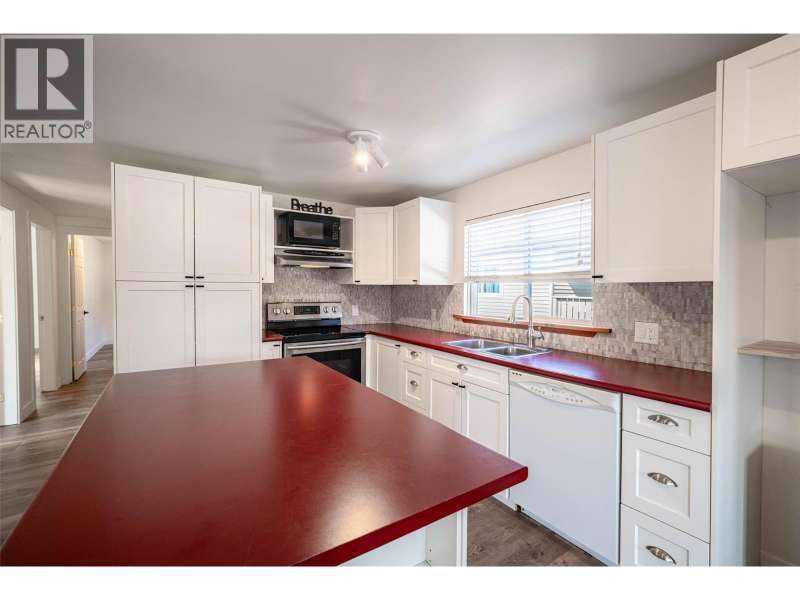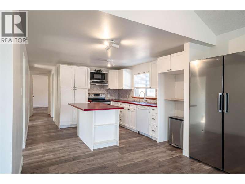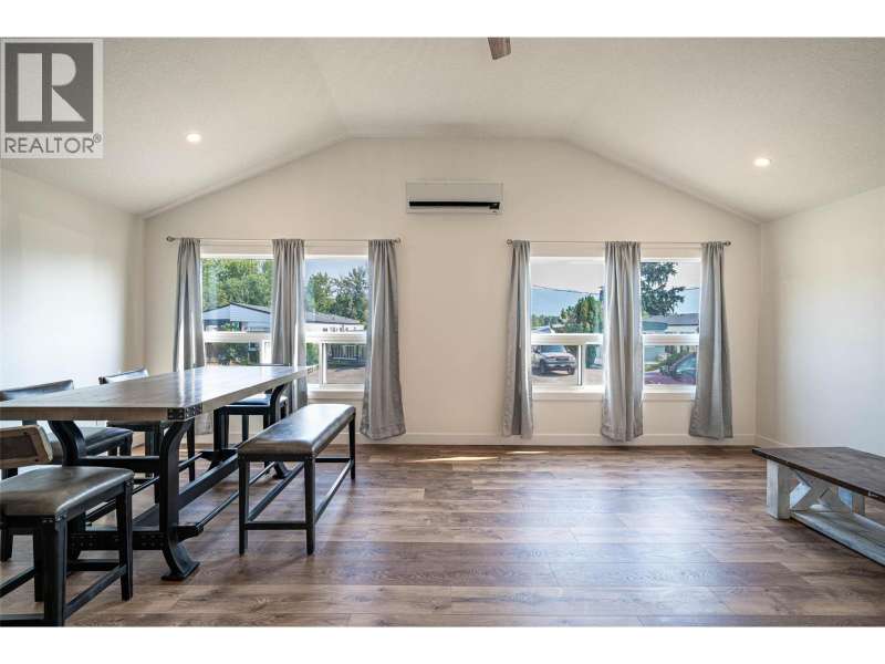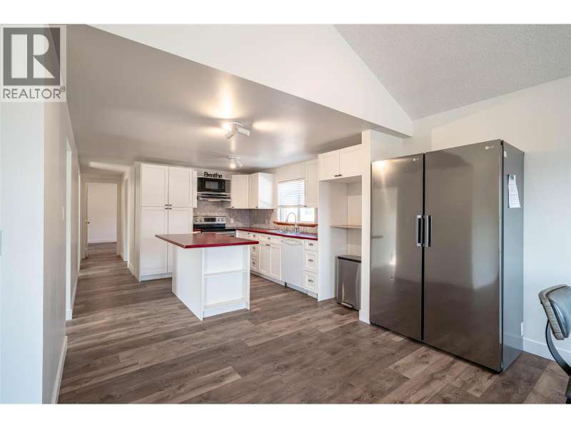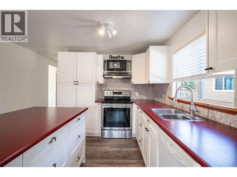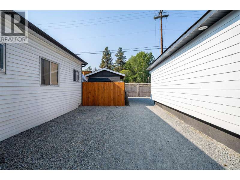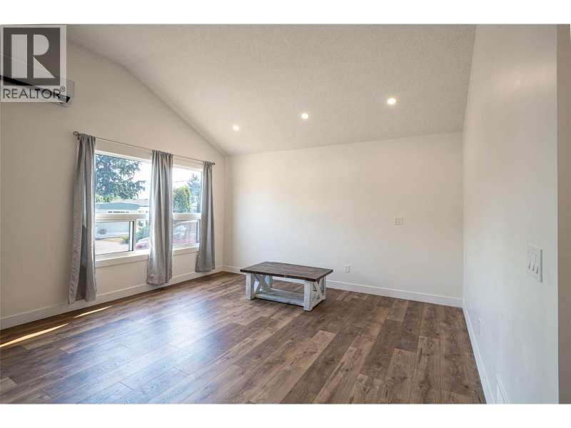 Welcome to Westgate Mobile Home Park! Fully renovated in 2024/2025, this 3 bed + den home is a welcoming space you must experience! Converted from single to double wide, featuring vaulted ceilings throughout, new windows, fully updated electrical Silver Label, vinyl plank flooring, Hardie board siding and new roof. Tons of storage, with a clean space under the full length of the unit. Top of the line Samsung, high efficiency heat pumps. Stainless steel appliances including XL Fridge/Freezer. Spacious master bedroom including a walk in closet, with space for a seating area. French doors open onto your brand new deck. Large, fully powered workshop (insulated), low-maintenance yard, wheelchair accessible. Family-friendly, well-managed park, steps from the lake, fantastic golf courses and wineries. Close to transit, and all amenities! *potential for a second bathroom. (id:7434)