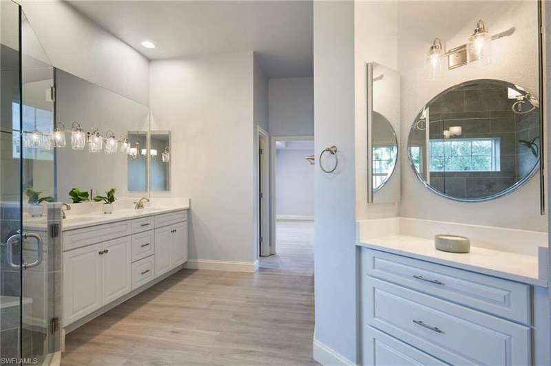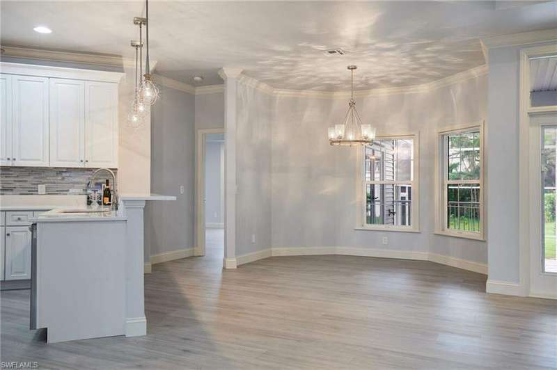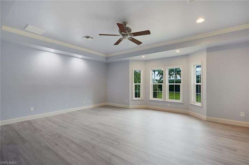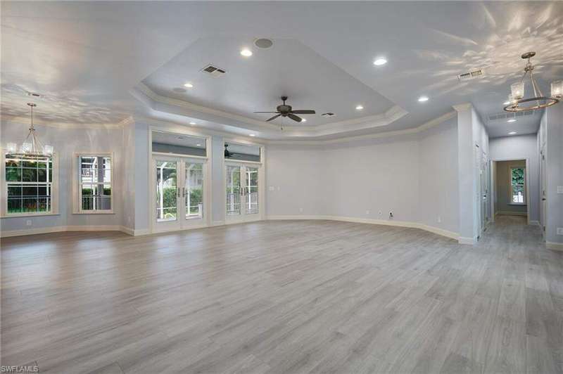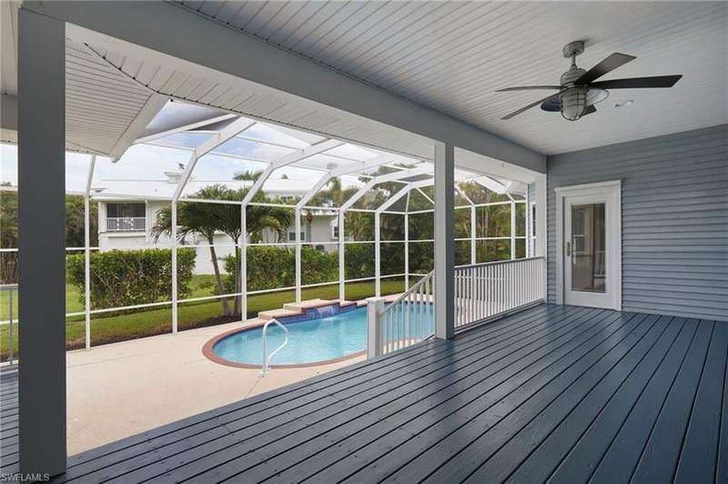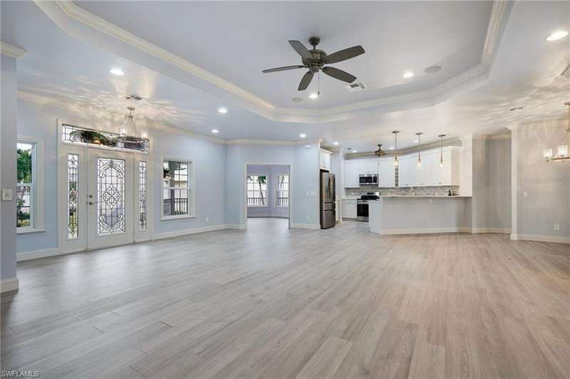 Step into coastal elegance at 18210 Chesapeake Court, a beautifully remodeled home nestled within the exclusive, gated community of Tidewater Island in Fort Myers. This spacious 3-bedroom plus den, 2.5-bath residence sits on an oversized lot and has been thoughtfully updated to blend charm, comfort, and modern convenience. From the welcoming front porch to the soaring volume tray ceilings and crown molding inside, this home offers a warm, inviting atmosphere that feels instantly like home. French doors lead out to a stunning two-tier screened lanai with a private pool, raised spa, and dedicated pool bath, creating the perfect outdoor retreat for entertaining or unwinding in peace. Inside, the kitchen has been completely renovated with stainless steel appliances, a walk-in pantry, and generous counter space ideal for everyday living and gathering with loved ones. The open floor plan flows effortlessly into a bright and airy living room, freshly painted in soft, neutral tones and filled with natural light. The primary suite is a true retreat, complete with a large walk-in closet and a beautifully updated en-suite bathroom featuring modern finishes and a walk-in shower. Two additional bedrooms plus a flexible den space offer endless possibilities for guests, a home office, or playroom. The home has been remodeled throughout in 2024, including a new water heater, new stainless appliances, updated bathrooms, new laminate flooring, and interior paint. A new A/C system was installed in 2022, and a reverse osmosis system adds extra peace of mind. The oversized garage provides ample storage, and the expansive rear yard includes a wood deck and plenty of room to enjoy the outdoors. Located on a quiet cul-de-sac street in a tranquil, non-cookie-cutter neighborhood, this property offers privacy and a sense of place, all just minutes from the beaches, shopping, dining, and the airport. Low HOA fees, no CDD. Homes in Tidewater Island rarely come available, and this one is truly special, offering refined upgrades, thoughtful design, and that rare feeling of "HOME" the moment you walk through the door.