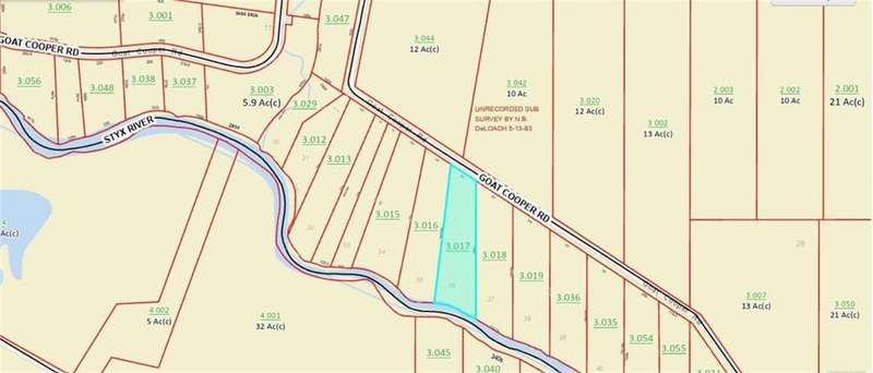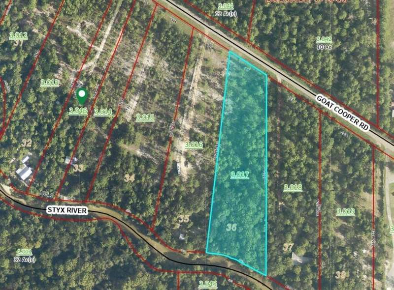 Come create your very own riverfront oasis! 3-acre property located on one of the local favorites, Styx River boasts 224 feet of water frontage and 150 feet of road frontage on Goat Cooper Road, a quiet dead-end road offering peace, privacy, and minimal traffic. Whether you are planning to build your forever home, create a weekend getaway, or seeking a prime investment opportunity, with some work this property fits the bill. With no deed restrictions, no HOA, and county approval permitting mobile homes, custom builds, and more, the options here are wide open. Shaded by a lot of Cypress and Juniper trees allows for an even more incredible view. Enjoy the balanced combination of seclusion and convenience, just minutes from Grand River Motor Sports, Styx River Canoe and Tubing, I-10 and the Baldwin Beach Express, making for easy fun and commutes a breeze. Buyer to verify all information during due diligence.