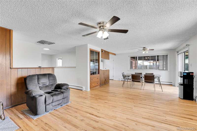 Welcome home to this brick ranch home full of opportunity. It offers a retro vibe with timeless appeal that's ready for your personal touch. Sitting on a large lot (over a quarter-acre), this property offers room to grow both inside and out. Step inside to find refinished hardwood floors and fresh interior paint on the main level, creating the perfect canvas for your own personal touch. The home features two bedrooms with two bathrooms on the main floor, a classic layout, and a living room/dining room area perfect for gathering. Downstairs, the finished basement is brimming with vintage charm including a built-in bar tucked into the wall. You'll also love the oversized pantry/storage room, offering practical space for supplies. Major systems have been updated, including a new electrical panel (2024), boiler (2023), evaporative cooler (2023), water heater (2023), and new carpet in the basement (2023). Located in unincorporated Adams County, this home has endless potential and offers exciting possibilities. It is a must see!