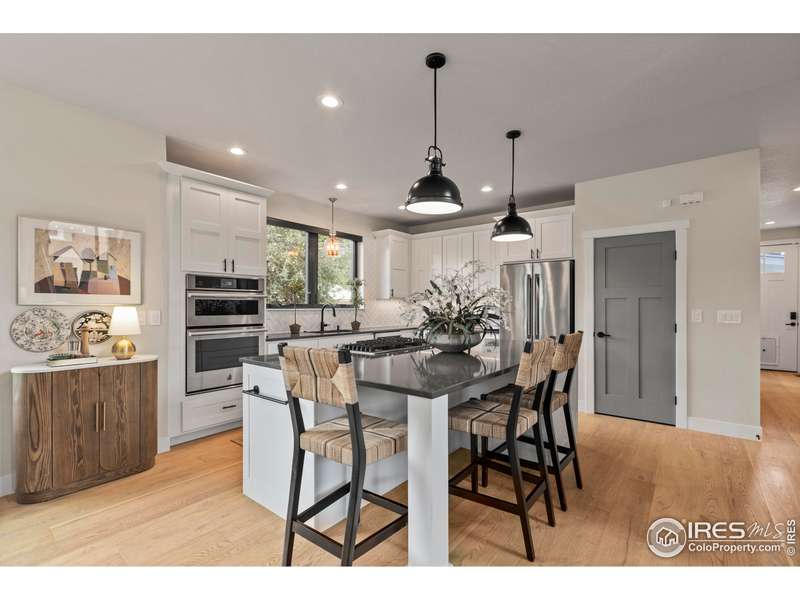Welcome to 4306 Dixon Street in the heart of charming Old Town Timnath! No metro-tax or HOA, including main floor primary bedroom & entertainers backyard! This beautifully crafted Mountain Standard-built modern farmhouse offers 5 bedrooms, 4 bathrooms & an alley-load 2-car garage-an tranquil oasis. The curb appeal is inviting with a small picket fence & front porch swing. Step inside to an open, thoughtfully designed floor plan where every detail has been carefully considered. At 3,280 square feet, the home feels coz y but there's plenty of room to entertain & make each space your own. Upon entering, you will find the heart of the home- a welcoming entry with wood plank floorings, beautiful bright kitchen, dining nook, bar area and living room. The kitchen features an oversized Pental quartz island, and curated designer finishes, a pantry and gas range. Beyond the kitchen you will find the 1/2 bath, separate laundry room & the primary bedroom, with an ensuite bath, walk-in closet and windows overlooking the recently finished backyard. Next step out onto the back deck with a large entertaining space, complete with outdoor kitchen, dining area, sauna, living room & more & recently featured in Houzz, professionally designed and installed by Lindgren Landscaping. Two additional bedrooms with generous closets, a cozy loft space and a full bathroom. Downstairs, the basement has been finished with a rec space and wet bar, 2 add'l bedrooms (one currently being used as a gym), plus hallway bathroom and plenty of storage. Old Town Timnath offers small-town charm with easy access to local dining, shopping & the popular Timnath Beerwerks. Just minutes from the Timnath Reservoir for boating, paddleboarding, or swimming-and connected to the scenic Poudre Trail System right from your doorstep. Located in the highly regarded Poudre School District & equipped with a passive radon mitigation system- this home is the perfect blend of modern living and timeless community charm.