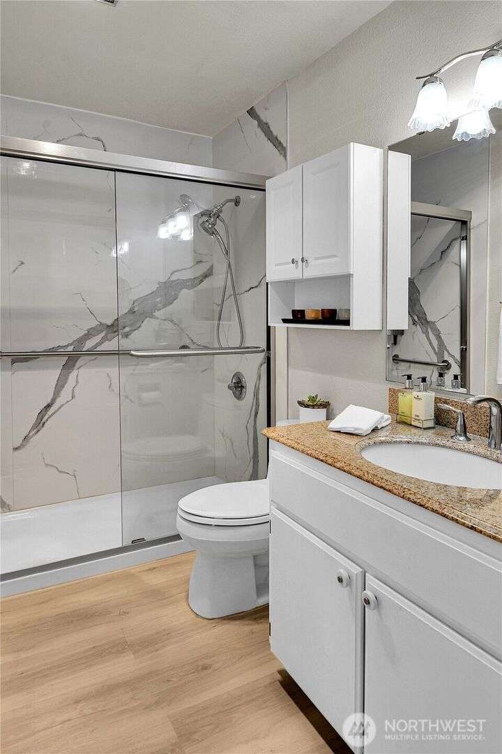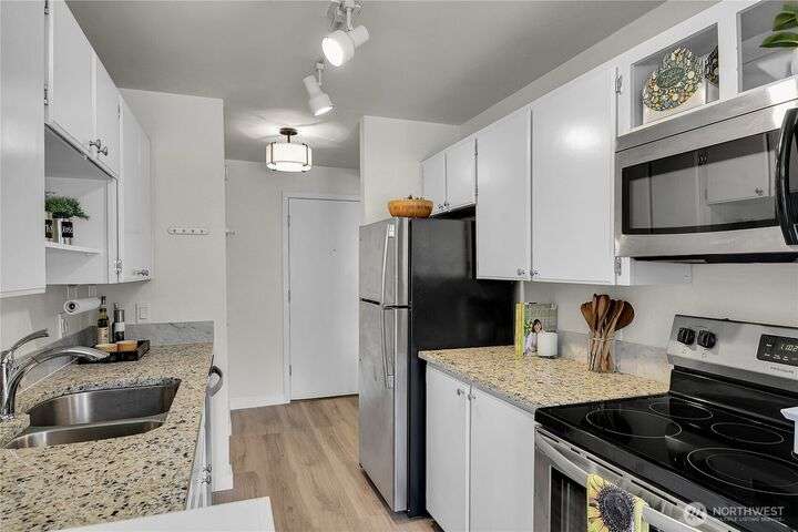 Spacious & Stylish 1-Bedroom with Scenic Views and Prime Location in the coveted community of Hidden Creek. This beautifully updated 1-bedroom home offers the perfect mix of comfort, style, and convenience. Enjoy a bright, open layout with fresh paint, new luxury vinyl plank flooring, and modern stainless-steel appliances. The walk-in shower adds a touch of spa-like luxury, while the private deck provides peaceful views of Goff Creek green space—ideal for relaxing or entertaining. Located just minutes from Downtown Bellevue, with easy access to freeways and the light rail, this home is a commuter’s dream. Whether you're working from home or heading into the city, you'll love the balance of nature and accessibility. 3 EV Chargers available!