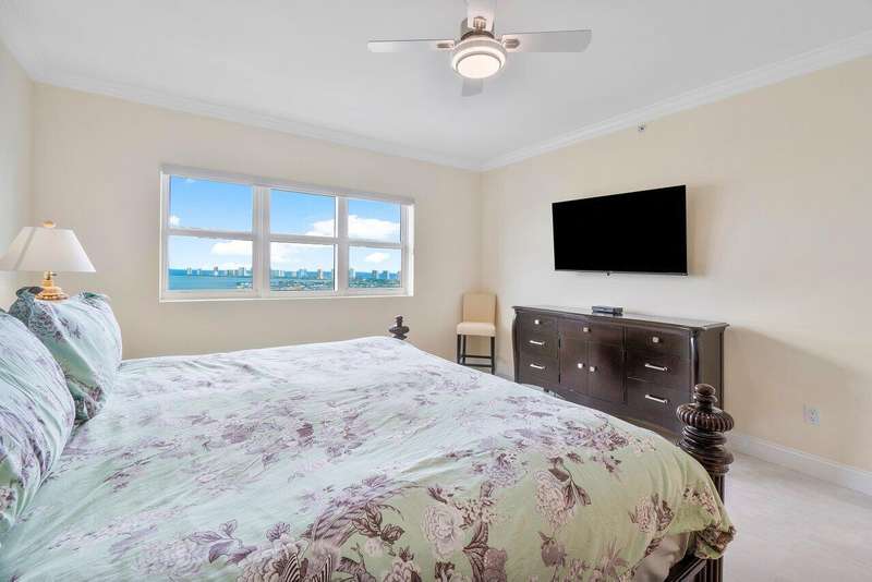 Panoramic 22nd floor Intracoastal & ocean views! Immaculate 2BR/2.5BA condo w/impact glass, Open concept w/spacious great room, dining/den, granite kitchen w/stainless appliance, split floor plan, & semi-private elevator access. Spacious owner suite w/his & her walk-in closets. Marble owner bath w/double vanity, jetted whirlpool bathtub & water closet. Freshly painted and new porcelain flooring throughout. Assigned parking in covered parking garage. 24/7 manned gate, valet, tennis, pickleball, walking path w/gazebo, covered rooftop oasis w/pool, spa, BBQ areas, clubhouse, billiard room & fitness center. Marina w/dry docks available. Jump on your boat effortlessly & be on the ocean in minutes; no fixed bridges! Minutes to nationally ranked snorkeling/diving at Blue Heron Bridge