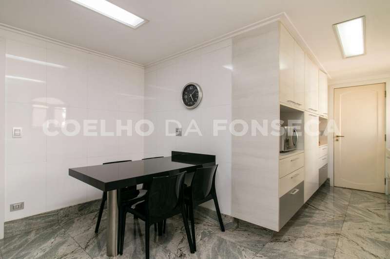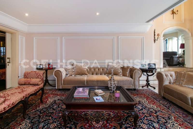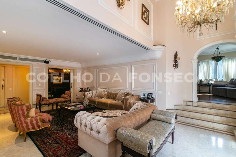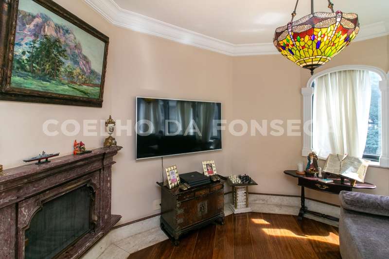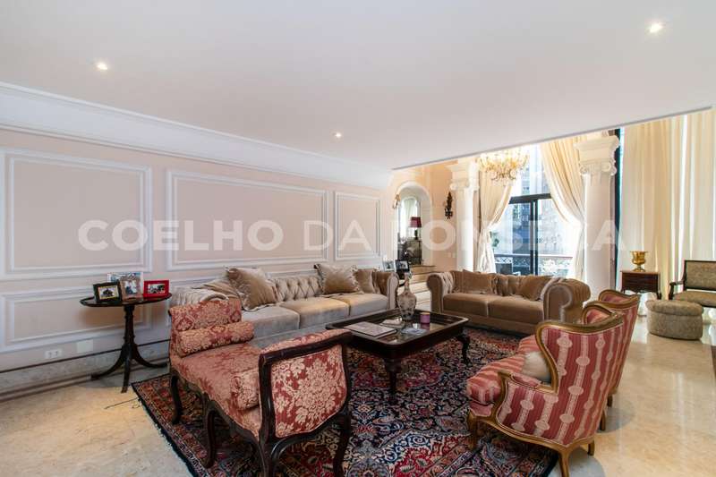 O living com pé direito duplo traz ao ambiente um ar de sofisticação e bem estar. Piso trabalhado em mármore e muita luz natural. Uma segunda sala com lareira e um lavabo. A sala de jantar é reservada e possui ótima iluminação natural. Escritório amplo com piso em madeira. A cozinha tem janela e passagem para a área íntima. Suíte master com dois banheiros e walking closet. Dois elevadores sociais servem o andar. Depósito no subsolo. Edifício com gerador em localização prática e elegante.