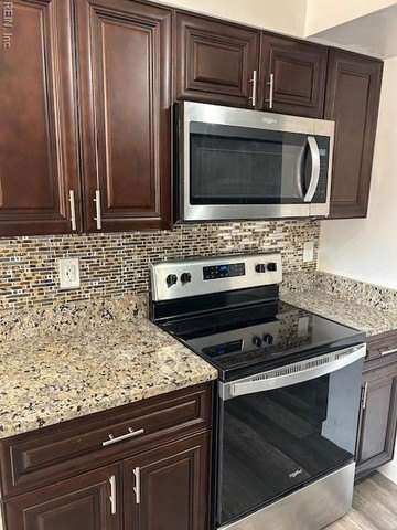 Great 4 bedroom 2.5 bath townhouse renovated 2023 with 2 car garage. Elegantly, upgraded baths, kitchen with SS appliances, LVP flooring, ceiling fans, lights and new paint throughout. Stainless steel appliances in the kitchen. W/D hookup only & new roof 2025. Enjoy relaxing in the fenced patio. Rent includes grass cutting. Conveniently located near military bases, shopping, parks and restaurants. No smoking/vaping in property. No pets. Applicants must have a credit score above 600.