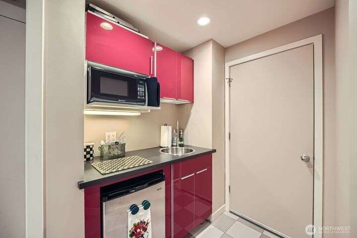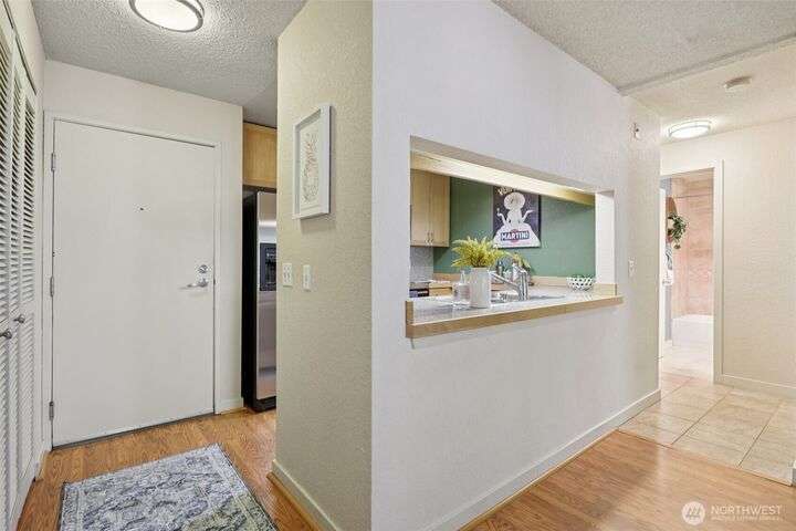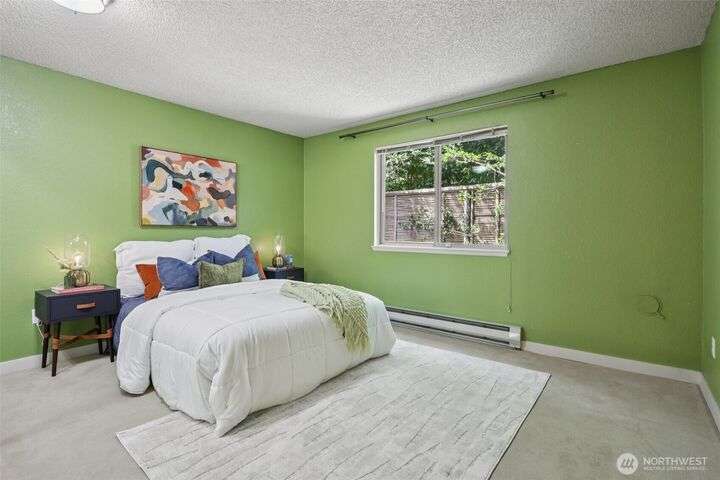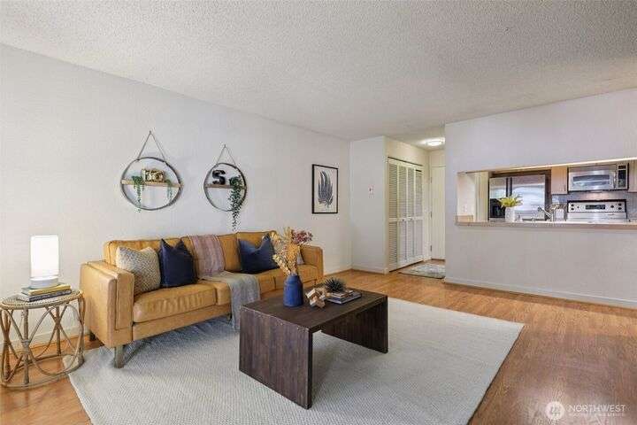 Tucked into a lush courtyard in the heart of Queen Anne, this 1bd/1ba condo is your peaceful retreat in the city. Start your mornings with coffee on the private covered patio, unwind in the evening with a book in the garden courtyard, or stroll to nearby parks, theaters, & cafés. Inside, enjoy in-unit laundry (new W/D!), a generously sized bedroom & SS appliances. The pet-friendly building offers secure garage parking, EV charging, gym, media lounge, BBQ area, bike storage & extra storage. Well maintained building and professionally managed HOA. Just blocks to Kinnear Park, Seattle Center, dining & transit—urban living with a tranquil twist, a perfect base for exploring the city while preserving a serene haven at home.