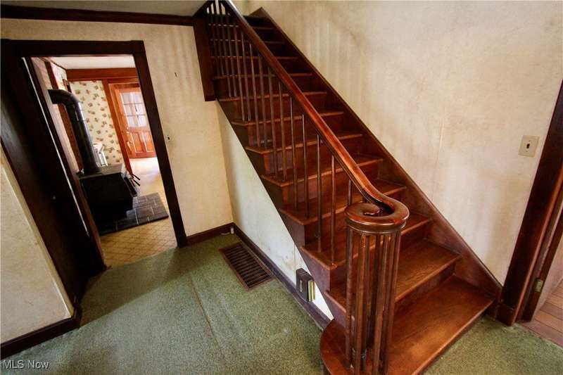 Welcome to 3949 Remsen Road, a peaceful retreat nestled just 10 minutes from Medina Square in beautiful Medina County. This charming 3-bedroom, 1-bathroom home sits on nearly 3.5 acres of lush land, offering plenty of space and potential for your dream property. As you arrive, you'll notice a lovely setting all around that will bring peace to your heart. Step inside to a spacious living area featuring built-in bookshelves and a cozy fireplace, perfect for relaxing evenings. The welcoming hallway leads to a charming kitchen equipped with a classic wood-burning stove, while the large dining room, surrounded by windows, fills with natural light-ideal for family meals and gatherings. Beautiful woodwork throughout the home adds warmth and character, including an all-wood staircase that ascends to two additional bedrooms and a generous storage space upstairs. The property's garage sits just in front of a tranquil stream, framed by mature walnut trees, creating a picturesque setting. Beyond the home, explore the neighboring parcel of land, which includes a serene pond and a buildable lot ready for your vision. Together, these properties total just over 5 acres and back up to hole #8 on Pleasant Valley Country Club-offering unbeatable privacy and proximity to local amenities, shops, and restaurants. This is a rare opportunity to invest in one or both adjoining lots, perfect for those seeking space, privacy, and potential. Don't miss your chance to own this exceptional property in a fantastic location!