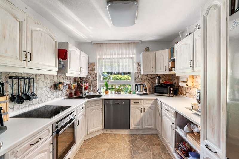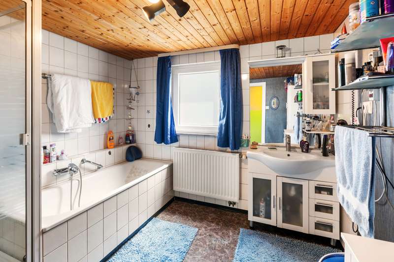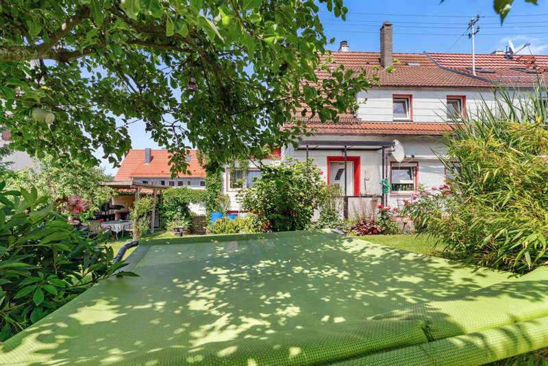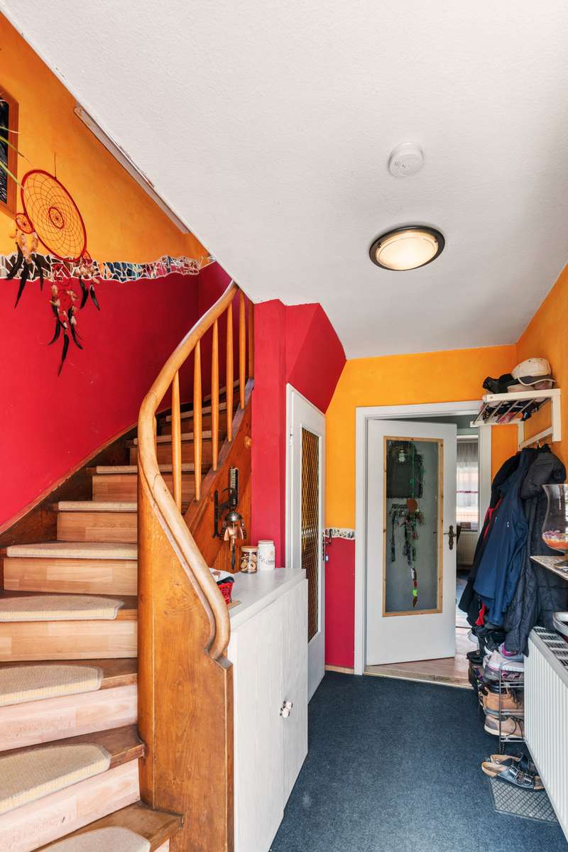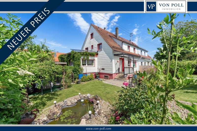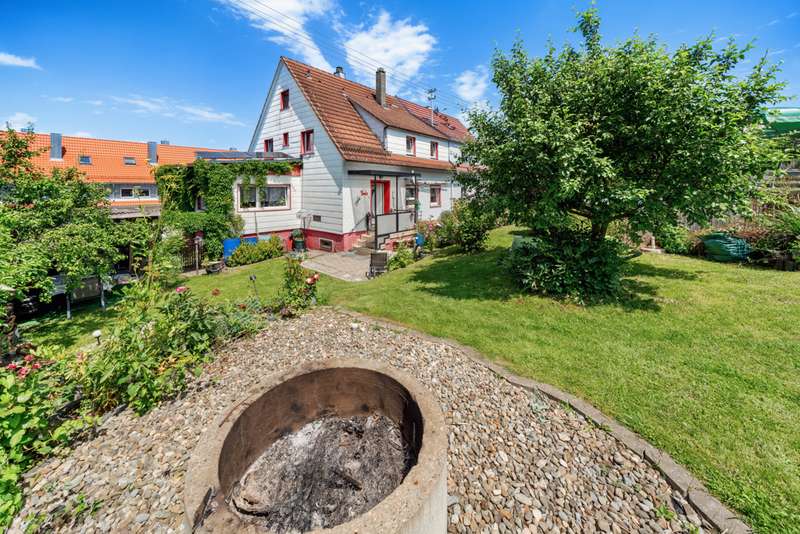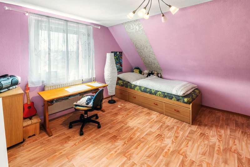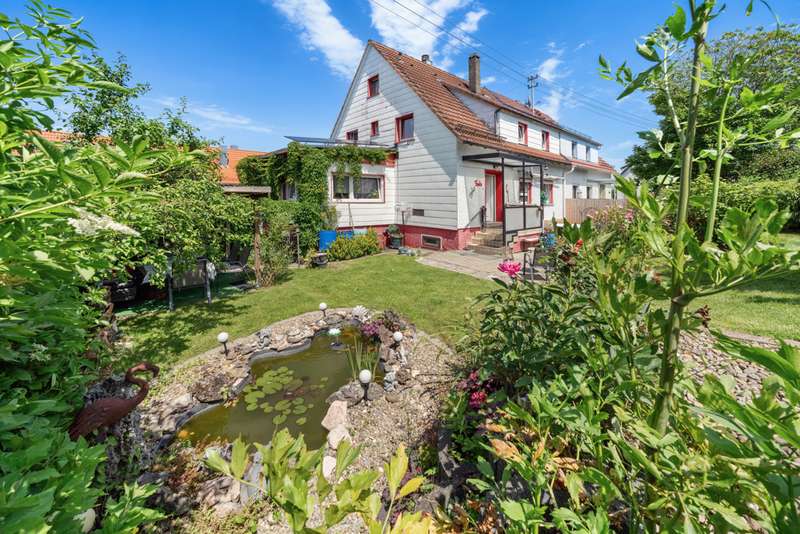Welcome to a family and animal paradise. The property on offer is a quietly located semi-detached house with a spacious garden. The house was built in 1952 in solid construction and is in a reasonable condition in need of renovation, but was last partially modernized in 2019. The living space is approximately 131 square meters, while the fenced plot covers around 562 square meters. The building has a total of six rooms, five of which can be used as bedrooms, guest rooms or offices as required, as well as a spacious living/dining room. These are complemented by a cozy kitchen, a bathroom and two separate guest WCs. On the ground floor are the living/dining room, the kitchen, the master bedroom, an office and one of the guest WCs, which are connected via a shared hallway. On the ground floor, the hallway leads to two children's rooms, an office, the bathroom and another guest WC. The attic, which offers additional storage space, can be accessed from the hallway via a hatch in the ceiling. The basement of the building can be reached via a staircase in the hallway on the first floor and offers further generous storage space or room to pursue hobbies. The garage can also be accessed from here. In addition to the garage parking space, the property offers a further parking space in front of the garage and a parking space at the edge of the property. The house is equipped with gas central heating and also has a wood-burning stove in the living/dining room, which provides cozy hours and a pleasant, special warmth not only in winter. The electrics were replaced in 2002 and the windows (double-glazed) and exterior doors were replaced in 2019. The garden is generously laid out and offers space for families with children and pets. An above-ground pool in the garden provides cooling and fun on warm days, while the small pond, which can be seen from the terrace, radiates a certain serenity and tranquillity. Thanks to the spacious garden, the semi-detached house is particularly suitable for young families and animal lovers who long for their own place of peace and quiet and would like to implement their own ideas and renovation work. The quiet location means that children can play undisturbed and pets also have plenty of space to run around. In addition, the proximity to kindergarten, primary and secondary school further underlines the attractiveness for families. Overall, this property offers great potential to be renovated and designed according to your own ideas. The surrounding area is characterized by greenery and tranquillity, which is particularly important in today's world. We cordially invite you to come and see the special features of this property for yourself and look forward to hearing from you regarding a viewing.