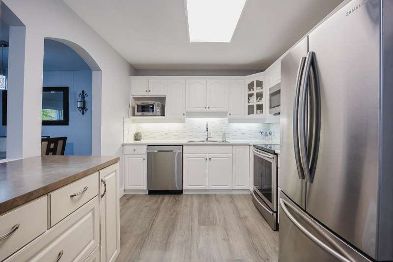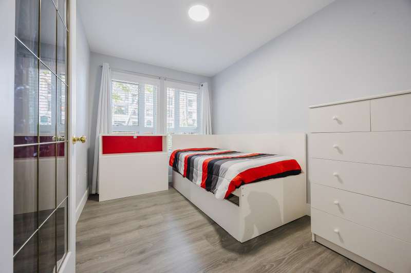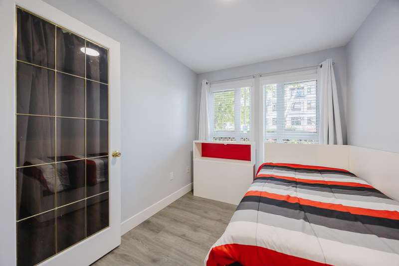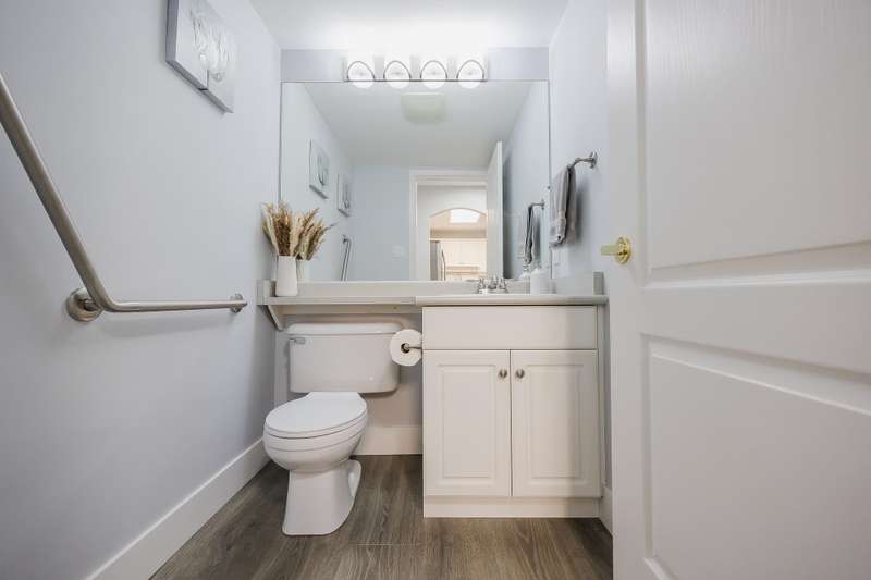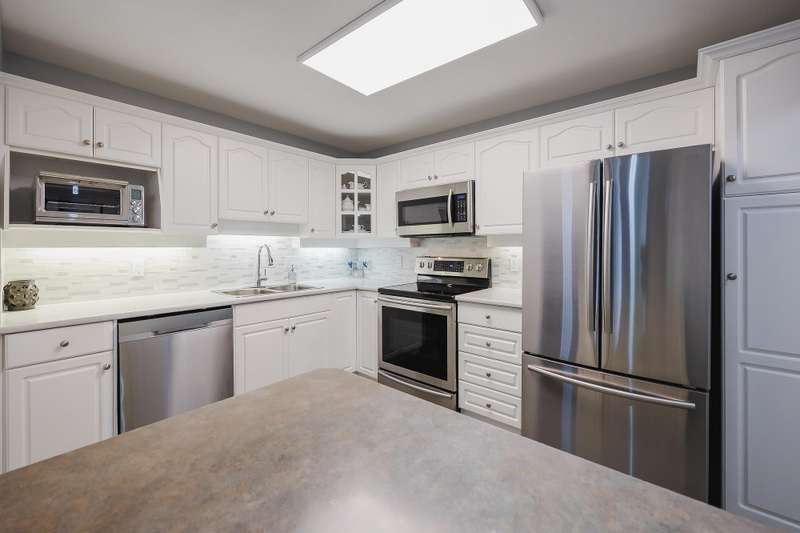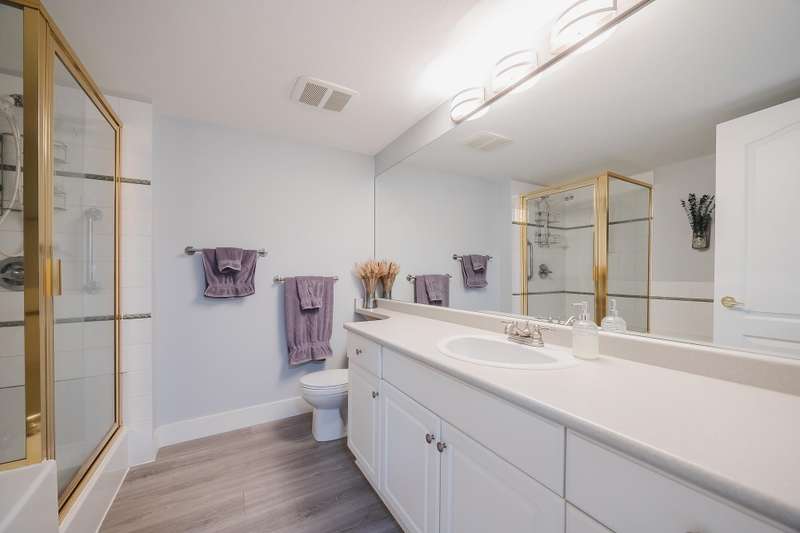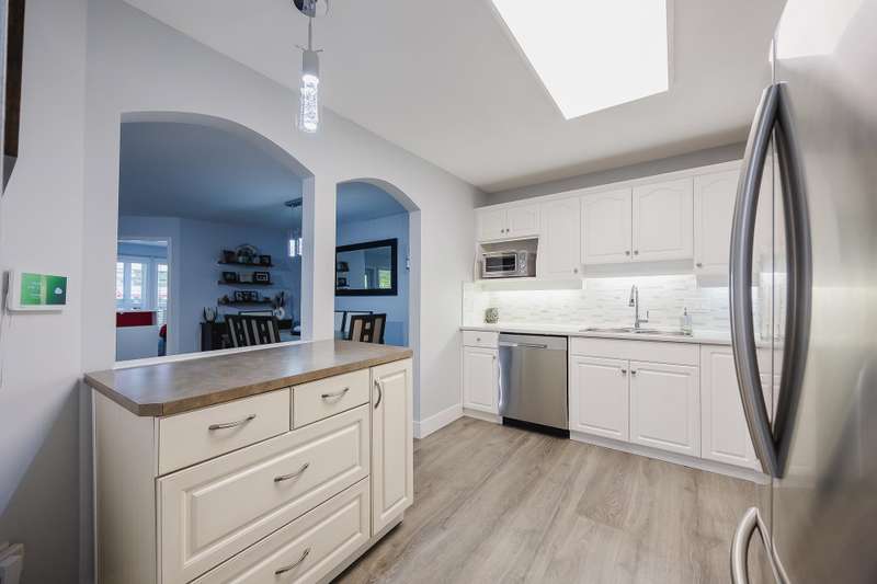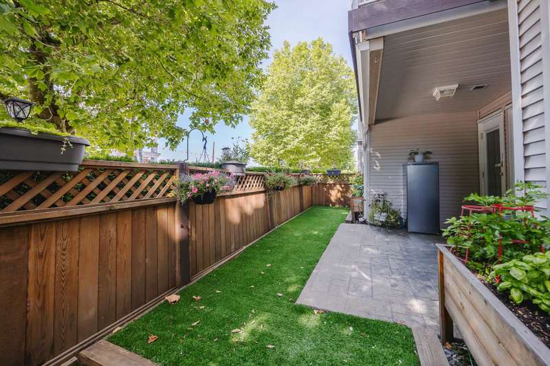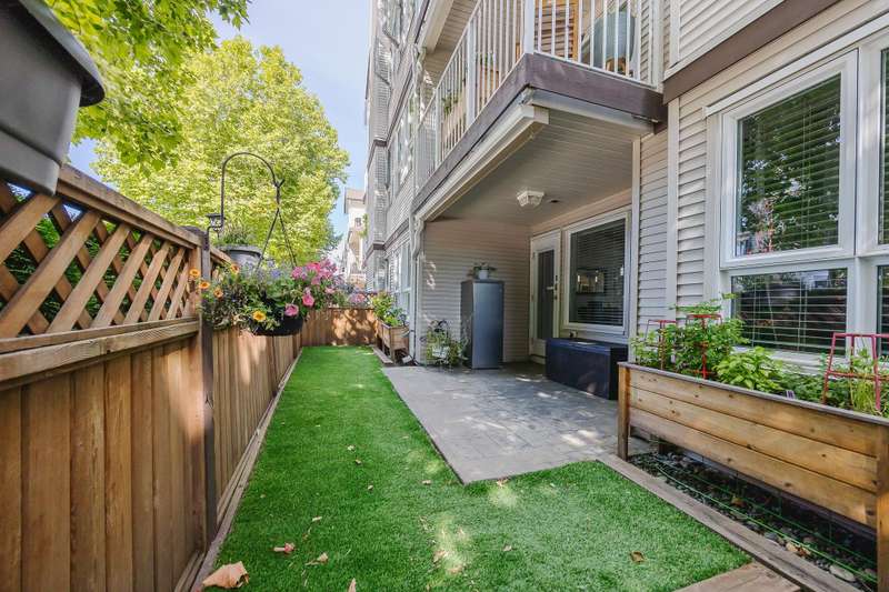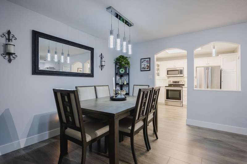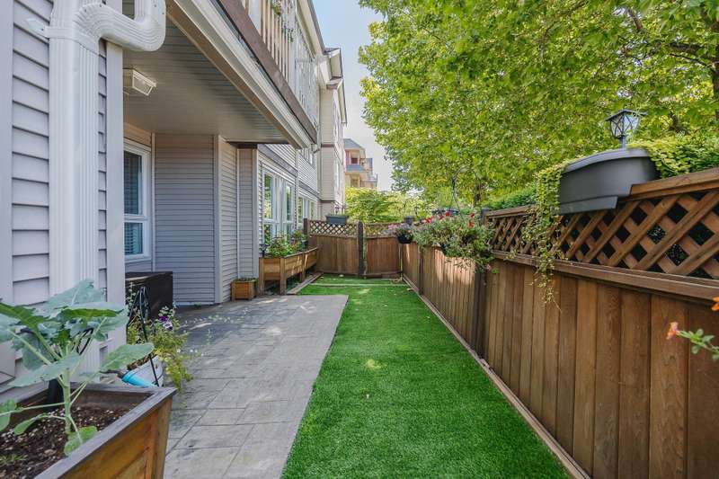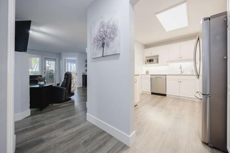 Welcome to Derby Downs! South-facing 2-bed, 1.5-bath offers 986 sq ft of stylish living. Updates include SS appliances, flooring, lighting, paint, and blinds. A spacious primary bedroom fits a full king set. In-suite laundry. Fully fenced private yard with gate offers walk-in access. Strata fee includes in-floor radiant heat, hot water, and gas. Amenities: guest suite, amenity room, gym, workshop, EV stations. Walk to shops, dining, schools, and the future Cloverdale Hospital. Owner-loved for 19 years! Wonderful ammenities room with a full kitchen, pool table and outdoor patio, parking is right next to elevator and a large storage locker!
