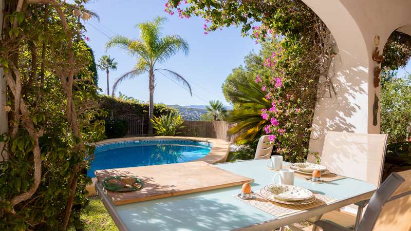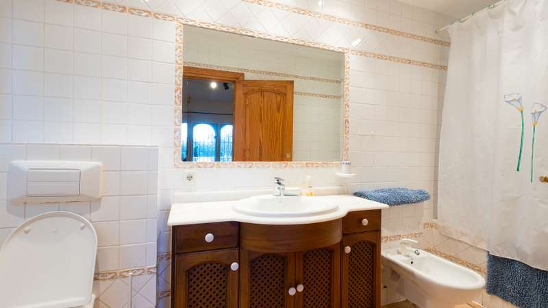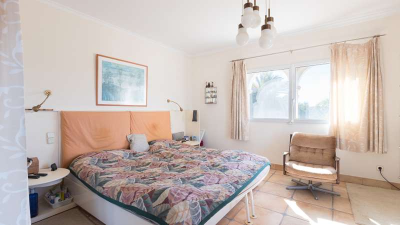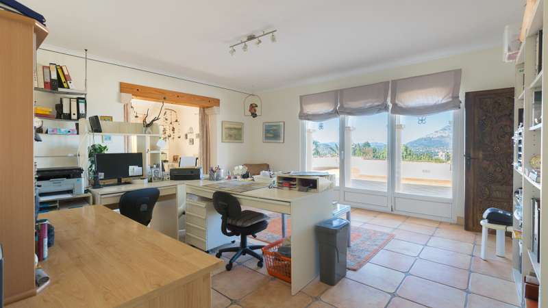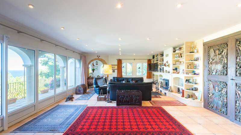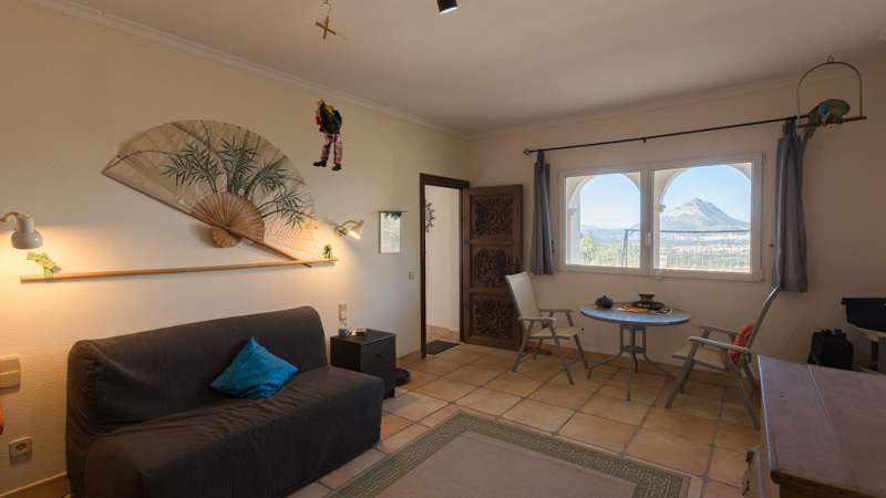 Mediterranean-style villa in a very private enclave in the Portichol area of Jávea, with stunning views of Jávea Bay. A traditional villa with lots of charm, large rooms, very comfortable and functional. The main house comprises a spacious entrance hall that leads to the living/dining area through handcrafted doors by a renowned Mexican artist. The spacious living room has a fireplace, dining area and a small, cosy tower-shaped sitting room. Adjacent to the living room is the spacious open-plan kitchen with a central island and electric hob, which is fully equipped and also has a pantry and utility room. This floor is completed by a double bedroom with fitted wardrobes and an en-suite bathroom, as well as a guest toilet. The upper floor is accessed via a staircase with an elegant wrought iron banister. On this floor, there is a double bedroom with a wardrobe and an en-suite bathroom, which connects to the bedroom on the first floor, ideal for a family, and the master bedroom with an office area, dressing room and spacious bathroom with a bathtub. On this floor, there is a spacious terrace with fantastic views of the sea, Cabo de San Antonio, Montgó and the valley. On the lower floor there is a garage for 2 cars, a lounge, a bedroom with en-suite bathroom and a wine cellar. Next to the pool is the barbecue area, next to the covered pergola and a toilet that serves the pool area. There are also several storage rooms. The property stands out for its well-maintained garden and privacy in a very pleasant setting close to amenities.