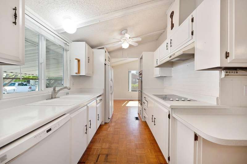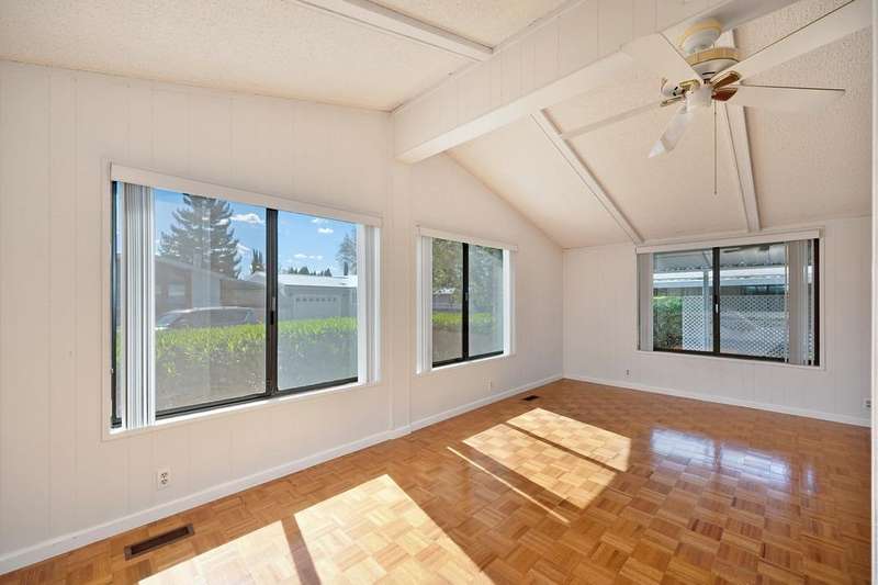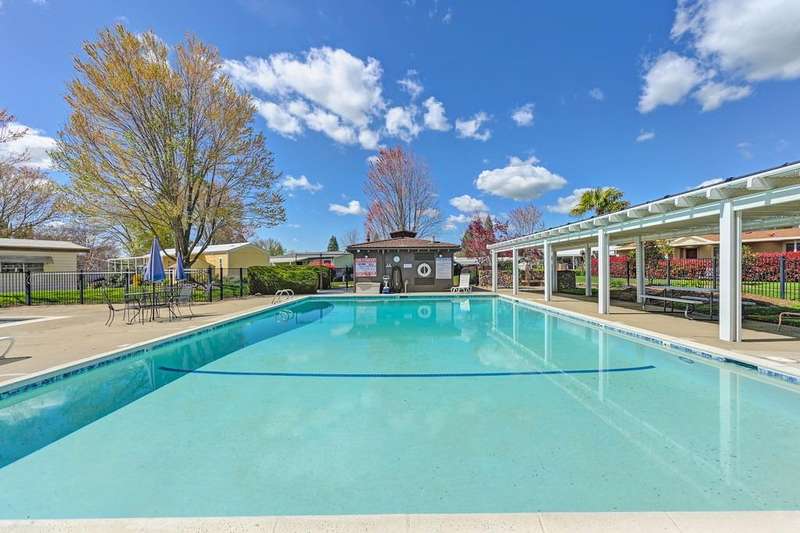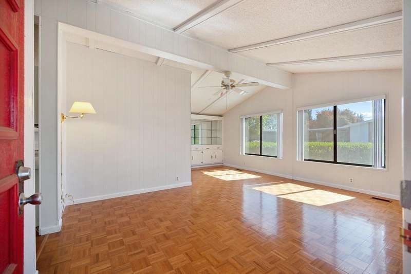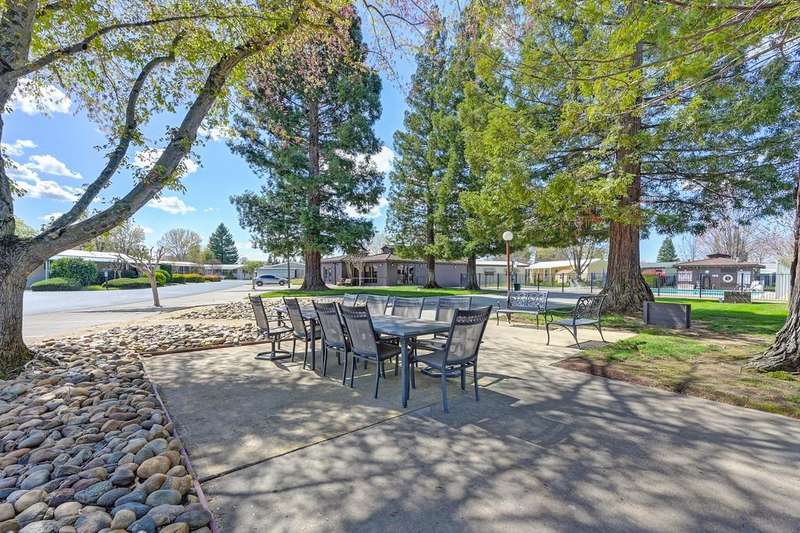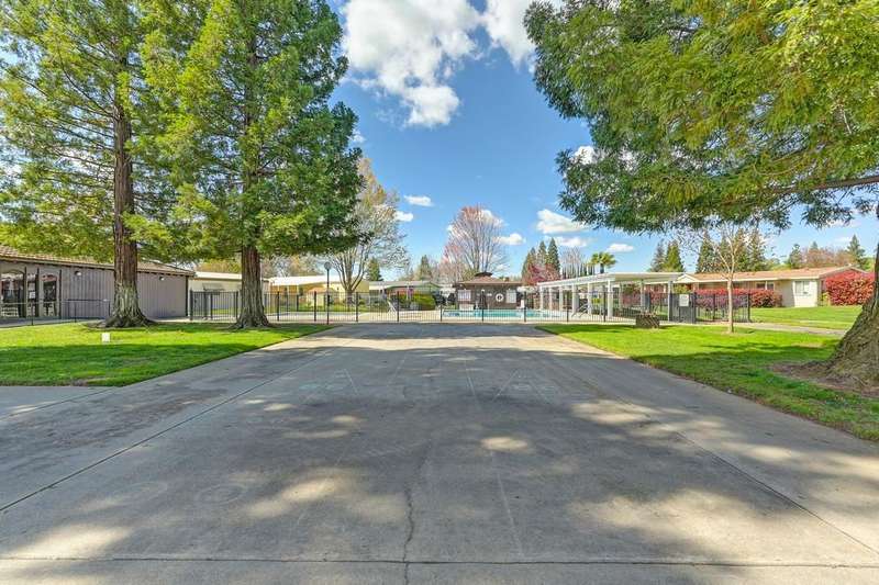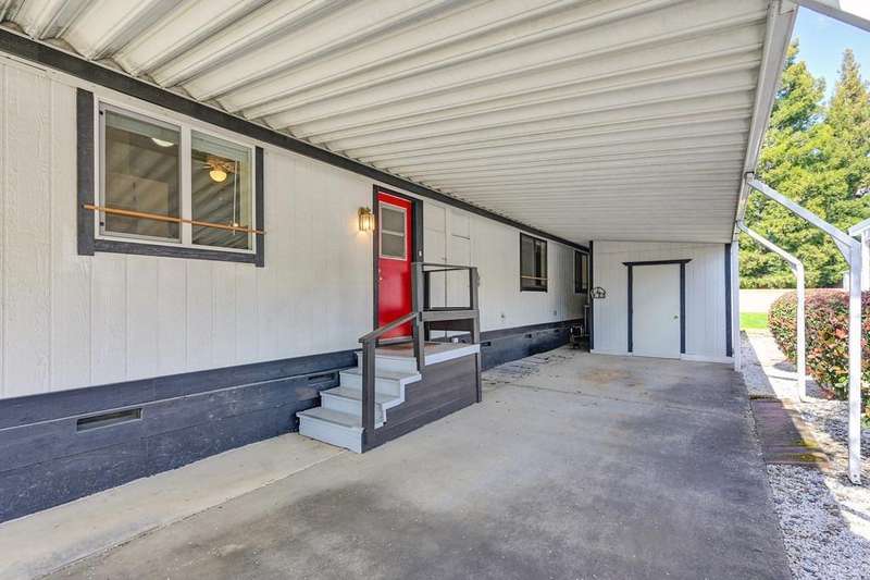 Welcome to this beautifully maintained manufactured home in the highly desirable Rancho Murieta Village 55+ Community! Situated on a permanent foundation with no space rent, this home offers both comfort and convenience. Inside, you'll find a spacious, open floor plan with vaulted ceilings throughout. The bright and airy living room flows seamlessly into the dining area, which features a built-in cabinet spanning the length of the room for ample storage. Adjacent to the galley-style kitchen is an additional dining or living space, perfect for your needs. The primary bedroom has vaulted ceilings and a large mirrored closet, making it feel spacious. The ensuite bathroom includes a double sink vanity, a separate shower, and a relaxing tub. An additional bedroom and full bath complete this charming home. Outside, enjoy the covered front patio, perfect for relaxing as well as a covered carport and a convenient storage shed for extra space. This community boasts plenty of options for social events, clubs, and activities with a beautiful clubhouse and pool for all to enjoy.