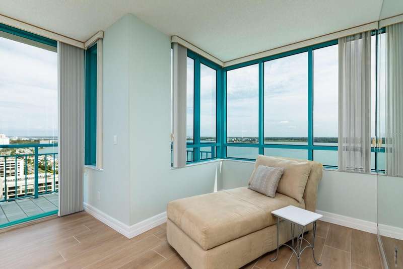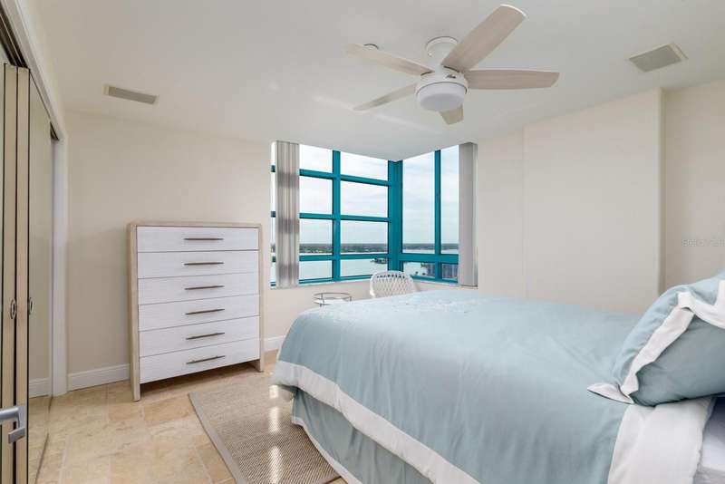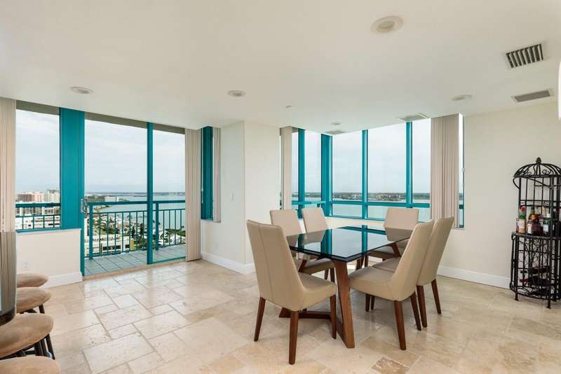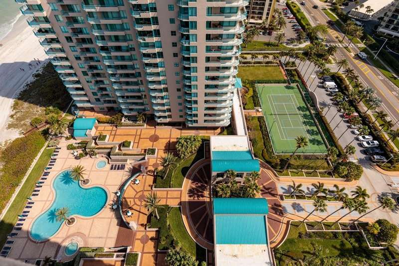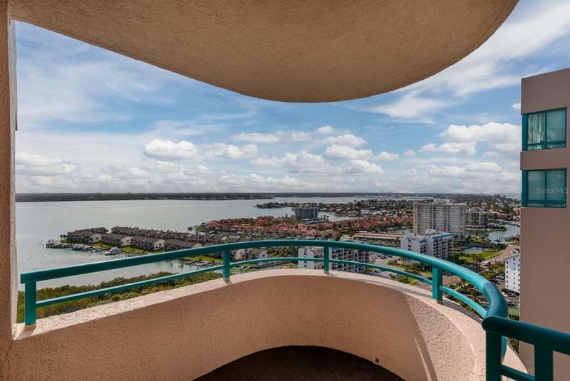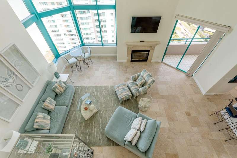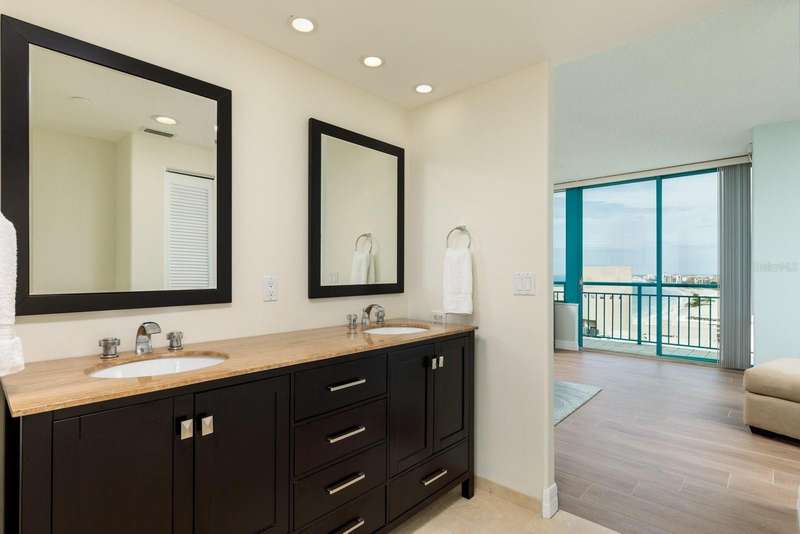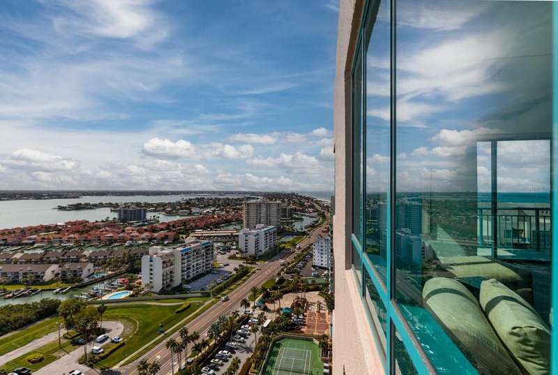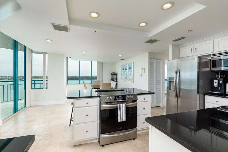 RARELY AVAILABLE 2 STORY PENTHOUSE, CORNER UNIT WITH COVETED 4 CAR PRIVATE GARAGE #14, WITHIN THE PARKING GARAGE. Located on desirable Sand Key this condo has soaring 18 ft ceilings in the living room with window wall overlooking the Gulf of Mexico. Wood burning fireplace creates beautiful ambiance for those occasional cool nights. Wrap around balconies afford 270 degree views of the Azure Gulf of Mexico and the nighttime lights of the Intracoastal. Luxurious 3 bedrooms & 3.5 baths recently updated in Chic Coastal Style by Decker Ross Interiors . Also has a den/office on the main level. European Travertine floors on the main level with wood look tile on the stairs & 2nd level. Open kitchen has black granite tops, white cabinets, cooking island & stainless steel appliances. Kitchen opens to dining area Fantastic water views from every room. See all the way north to Honeymoon Island & south to the Sunshine Skyway Bridge. Relax on any of your balconies, while having a cool drink, feeling the tropical breezes. Birds eye view of the fireworks for the holidays up & down the beach & all the way to Dunedin, Tampa, St Pete & beyond. Dual water heaters, dual A/C units. Large laundry room with laundry tub along with front loading washer & dryer. The World Class community of Ultimar on Sand Key offers true resort style living with 3 geo-thermal heated pools & spas (one is a lap pool). 3 tennis courts, pickle ball, basketball court, putting green, grill area, fire pit area, shuffleboard, corn hole, club room, median room, billiards room, social room, steam & sauna, 24hr guard gated. Walk to great restaurants & shops or catch the beach trolley right !out in front of the building. A short drive to Tampa & the airport plus all the sports venues of our championship teams. See virtual tour! Call for your private showing! Start Living the Florida Beach Lifestyle Today! Ultimar 2 has been through Milestone & SIRS Inspections. No issues. They are fully funded & their fees did not go up for 2025 despite the insurance increase.