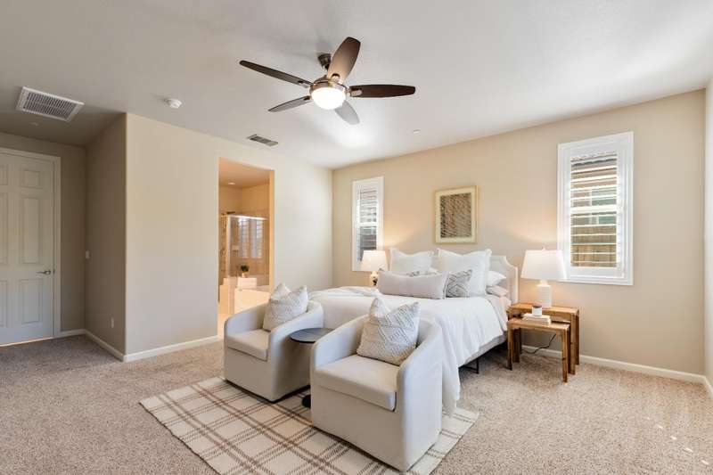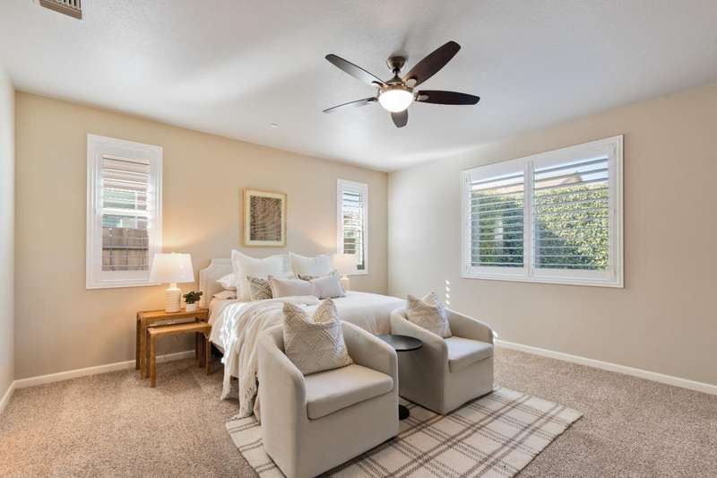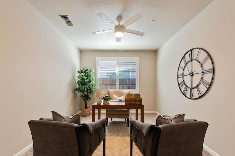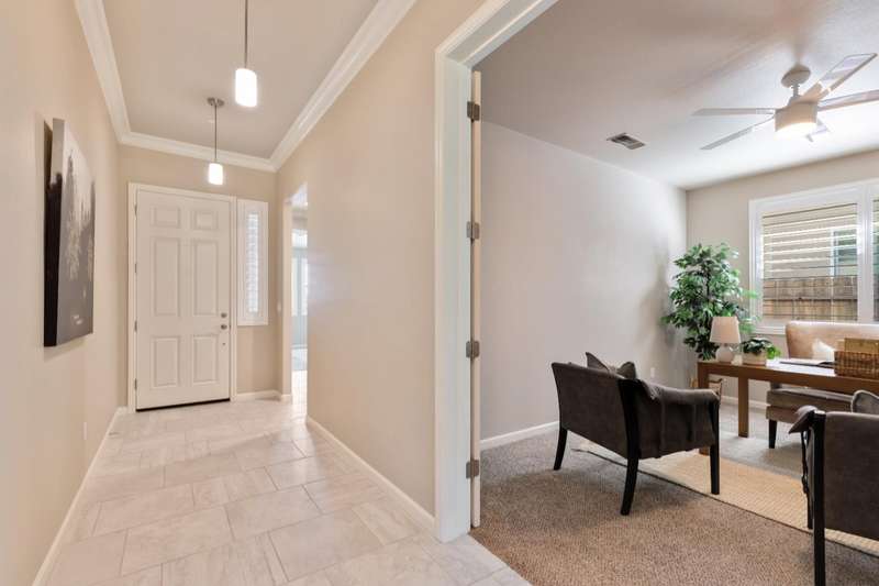 Discover beauty, comfort, style, and energy-efficiency in this immaculate 2016 Wilson Chadwick II Pennington model nestled in Clovis and tied to top-notch schools near shopping centers and grocery stores. This move-in ready single-story gem has 3 Bedrooms (with an Isolated Owner's Suite), a bonus room, 2 full baths plus a powder room, spans 2,277 sf on a generous 6,300+ sf lot with a 3-car garage, and offers the perfect blend of space and simplicity. Neutral colors throughout and stunning tile flooring in the main living areas, bathrooms and laundry room. Custom window shutters throughout and crown molding in the main living area, kitchen, breakfast nook, and entry hallway. Tile roof w/2-Year Roof Cert.Energy Efficiency & TechnologyEnergy-efficient solar, tankless water heater, Daikin smart thermostats, and a newer Daikin high-efficiency variable-speed heat pump from the Daikin Fit series. Video doorbell included.Bonus RoomA versatile bonus room w/double-doors ideal as a 4th bedroom, home office, workout room, or media/game room giving you the flexibility to adapt to your needs.Bright & Open LayoutThe great room features a cozy fireplace, built-in cabinetry, and plenty of sunshine flowing through multiple windows. It opens gracefully into a connected kitchen and breakfast nook. Perfect for casual mornings or relaxed evenings w/loved ones.Chef's HavenYou'll love the kitchen with cotton white granite countertops, subway tile backsplash, stainless steel appliances, premium 5-burner gas cooktop, large center island, breakfast nook, and a sizable walk-in pantry.Entertaining Made EasyWhether you are entertaining indoors or outdoors, this home offers the best of both worlds. The breakfast nook features a sliding-glass door leading to the backyard and covered patio, perfect for al fresco dining. The backyard offers a private setting with a manicured yard and natural privacy wall along the fenceline.Serene Owner's SuiteTucked away for privacy, the owner's suite offers a roomy walk-in closet and a spa-like en-suite with dual vanities and a separate tub and shower.Low-Maintenance LandscapingBoth front and back yards feature durable synthetic turf, so your lawn stays photogenic without the fuss. You will love the covered patio and extended concrete, perfect for entertaining or enjoying a cup of coffee in the morning.