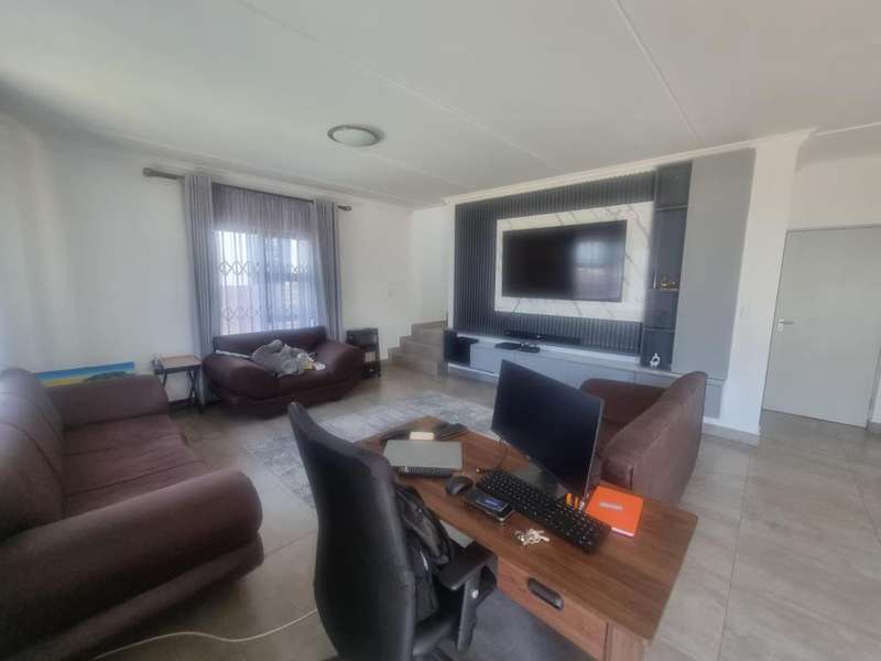 This exquisite property features modern tiles throughout and offers a perfect blend of comfort and style. Downstairs: ?Çó Open Plan Living Area: Includes a spacious lounge and dining room, perfect for entertaining. ?Çó Modern Kitchen: Equipped with granite countertops, space for a double fridge freezer, two under-counter appliances, and a breakfast nook. ?Çó Guest Convenience: A guest toilet is located downstairs. Upstairs: ?Çó Three Spacious Bedrooms: All with built-in cupboards. ?Çó Two Full Bathrooms: One of which is an en-suite. Additional Features: ?Çó Double Garage: With automated doors. ?Çó 24-Hour Security: Located within a secure estate. ?Çó Connectivity: Fiber optic internet installed. ?Çó Energy Efficient: 9 solar Panels, Includes a 5kW inverter and battery. ?Çó Solar geyser Don't miss out on this delightful modern property?Çöschedule your viewing today! ~~~~~-----~~~~~ Thatchfield/Rua Vista Thatchfield/Rua Vista is situated close to all main arteries, especially the N14(Krugersdorp/Lanseria Airport) and the R55(Kyalami-Pretoria West). Also close to Uitsig Primary and High School and the brand new Forest Hill Shopping Centre is just around the corner from the Estate. Vicinity: Shopping Centres near Thatchfield/Rua Vista:- The new Forest Hill City, Mall@Reds, Panorama Center, Rooihuiskraal Center, Centurion Mall, Marylone Mall, Lifestyle Center and the San Ridge Mall. Schools Schools close to Thatchfield/Rua Vista:- Thatchfield has its own Curro Private School with-in walking distance. Nursery Schools:- Regio Pre-School, Philena Primary School, Little Heffalumps and Kidz World Nursery School(Centurion). Primary Schools:- Walter Sisulu Primary School, Rooihuiskraal Primary School and Uitsig Primary. Secondary Schools:- Sutherland High School, Centurion Christian School and Uitsig Secondary School.