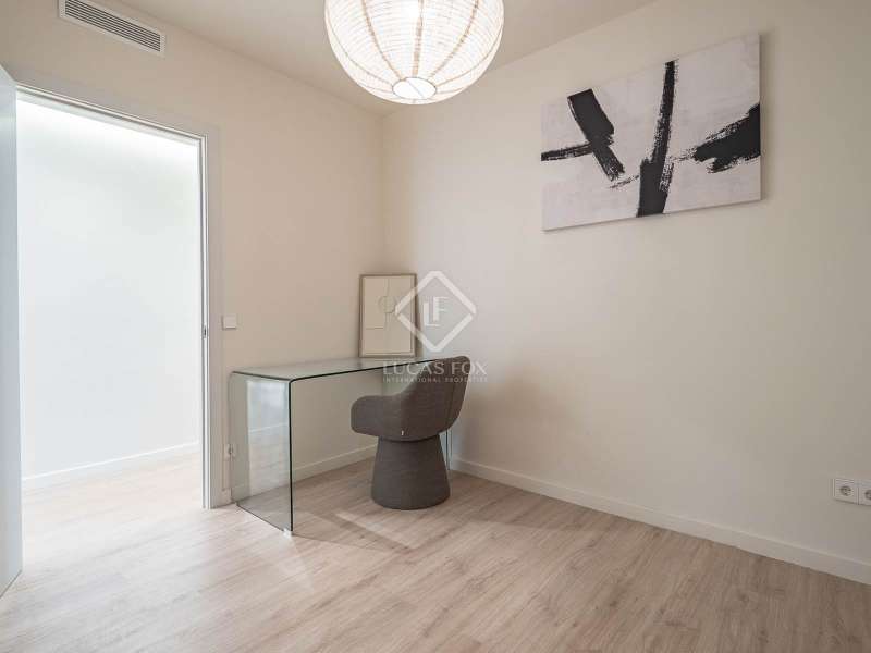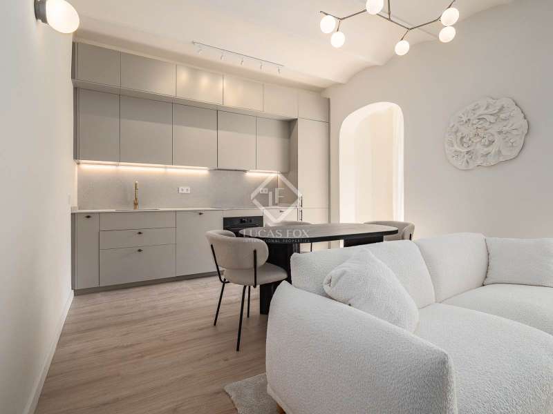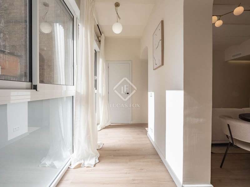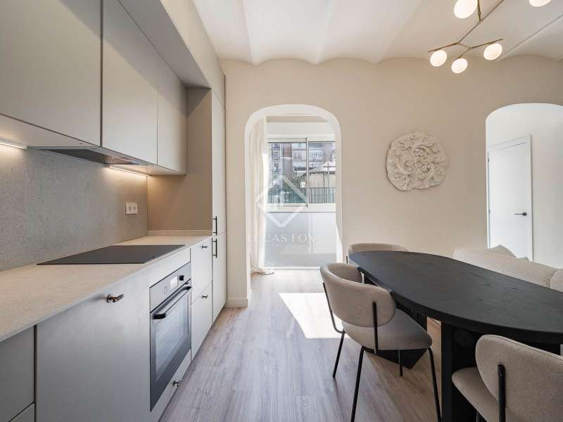 This newly renovated apartment, located in the highly desirable Eixample Esquerra neighborhood, is a prime opportunity to experience Barcelona’s most sought-after areas. Nestled at the intersection of Muntaner and Calle Córcega, just steps from Avenida Diagonal and the coveted Calle Enric Granados, this property offers the perfect blend of historic charm and modern living. Set in a classic "finca regia" building with an elevator, the 108m² apartment has been fully renovated with a timeless, contemporary design that combines high-quality natural materials with the iconic architecture of Eixample. Beautiful wood floors run throughout the apartment, creating a warm and inviting atmosphere. The apartment features three bedrooms, two full bathrooms, and one guest toilet, all with modern finishes. The master bedroom, facing the street, stands out with its large sliding doors that let in plenty of natural light and open up the room to the city. Its generous size offers the flexibility to add a walk-in closet or workspace. The second double bedroom and a smaller single bedroom overlook a tranquil inner courtyard, providing quiet, peaceful spaces. The smaller bedroom could also serve as a study or be converted into a dressing room to complement the master suite. The bright, open-plan living and dining area serves as the heart of the home, with natural light streaming in from the gallery. The modern kitchen, equipped with state-of-the-art appliances, connects seamlessly to the living space, and includes a private laundry and pantry area for added convenience. The apartment also features two balconies: the front-facing one offers views of the vibrant neighborhood, perfect for enjoying a morning coffee, while the rear balcony provides a quiet space overlooking the inner courtyard, ideal for al fresco dining or relaxing. Additional highlights include ducted air conditioning and separate heating systems, ensuring year-round comfort. Surrounded by upscale restaurants, trendy cafés, boutique shops, and artisanal bakeries, the area is well-connected, with several metro stations, bus lines, and the airport shuttle just a 5-minute walk away. Whether you are looking for a stylish home ready to move into or an investment in one of Barcelona’s most prestigious and vibrant areas, this apartment is an excellent opportunity. Please contact us for further information or to arrange a viewing.