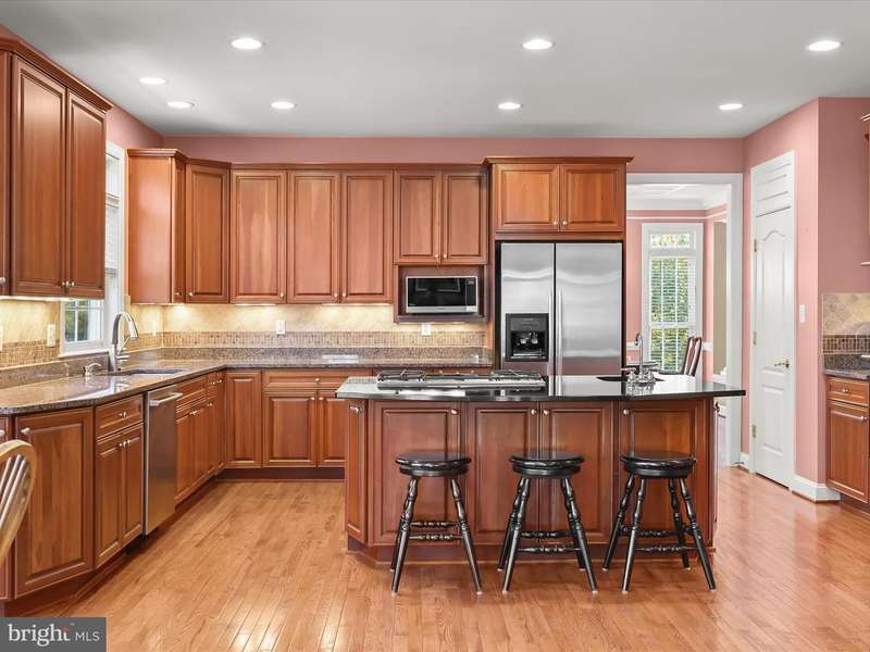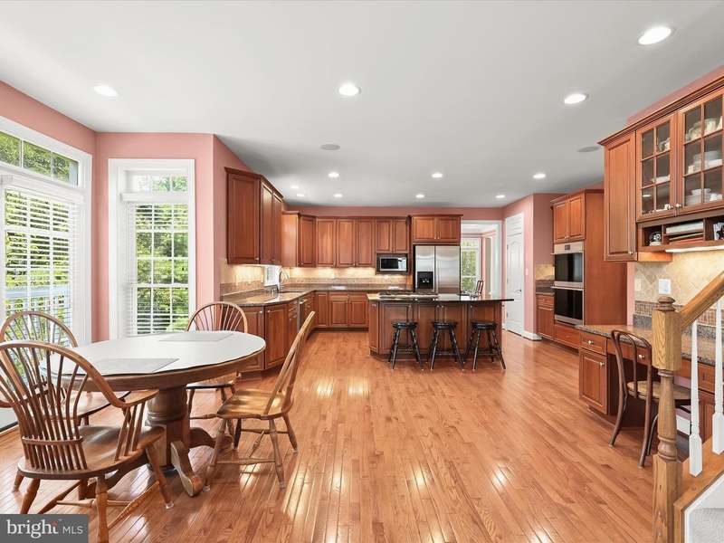 Introducing this remarkable five bedroom, four and a half bathroom home, perfectly situated on a 0.32-acre corner lot in the sought-after Montjoy neighborhood of Ellicott City. Nestled on a quiet cul-de-sac, it backs to woods with expansive rear and side yards for added privacy and space. Inside, a two-story foyer with curved staircase, hardwood floors, and abundant natural light set the tone, highlighting ornate trim and thoughtful details that continue throughout. The front living room offers a quiet retreat, while the formal dining room is generously sized for hosting gatherings. At the heart of the home, the expansive kitchen features granite countertops, tile backsplash, 42""Â? cabinets with under-cabinet lighting, pantry, and a large center island with seating. Stainless steel appliances include recently upgraded double cafe Wi-Fi wall ovens and a Bosch dishwasher, alongside a five-burner gas cooktop. A breakfast nook with desk station and second staircase is ideal for casual meals and opens to the two-story family room with a soaring cathedral ceiling and a gas fireplace. A half bathroom, laundry room with access to the two-car garage, and a private office enclosed by French doors round out the main level. Upstairs, the luxurious primary bedroom suite includes a tray ceiling, sitting area, and dual walk-in closets. The ensuite bathroom boasts a jetted soaking tub, walk-in shower, dual vanities, and private water closet. Down the hall, a second bedroom suite with its own private bathroom offers flexibility, while the third and fourth bedrooms share a connecting bathroom. Downstairs, the fully-finished walk-out lower level extends the living space, featuring a massive recreation room with a wet bar and space for everyone's activities. This level also includes a fifth bedroom and an additional full bathroom, making it ideal for overnight guests or extended stays. An expansive storage room adds further convenience to the lower level. Outdoors, enjoy the peaceful yard that backs to preserved woods for a tranquil setting. Recent updates include a new roof, two HVAC systems with smart thermostats, water heater, upgraded wall ovens, dishwasher, and more.