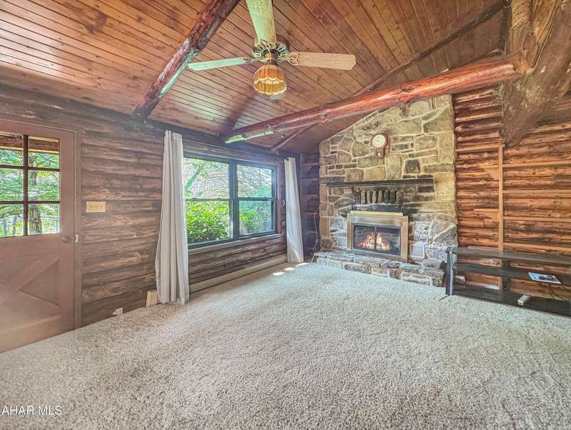 Welcome to 730 Friend Lea Road, nestled in the Central Cambria School District. This stunning, one-of-a-kind log home exudes character both inside & out. As you step onto the main floor, you are greeted by a cozy living room that boasts a custom stone fireplace & an impressive cathedral ceiling. Adjacent to the living room, you'll find a charming dining area, a spacious kitchen, & two generously sized bedrooms. The main floor also includes a full bathroom w/ laundry hookups & a convenient mudroom. Venture down to the basement, where you'll discover a versatile living area that simply needs flooring, alongside a finished bonus room that could serve as a potential third bedroom. It also features a full bathroom & ample storage space along w/ your mechanicals. Sitting on approximately 1.8 acres, the exterior of this property offers a private driveway, a vast & serene lot, a welcoming covered front porch, & a carport. Don't miss your chance to explore this exceptional property, call today for more information!