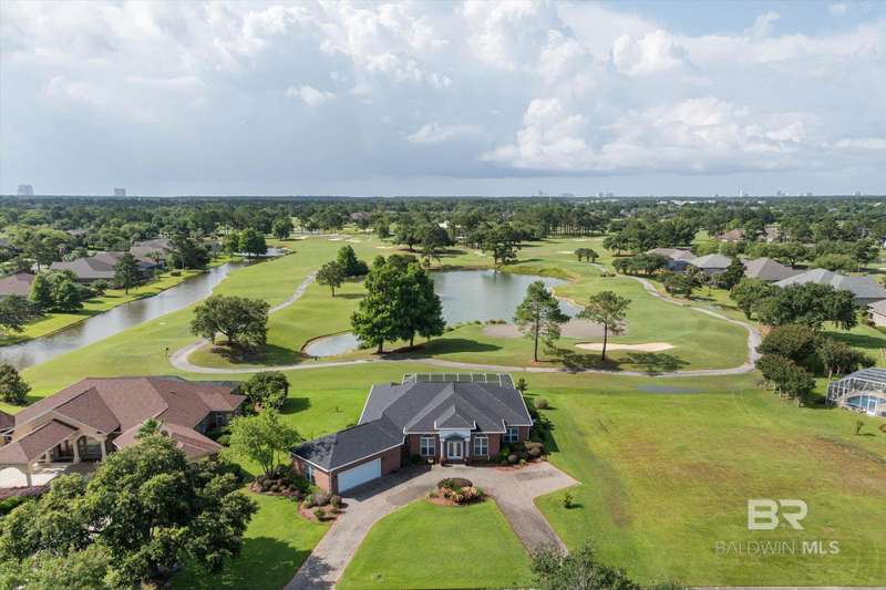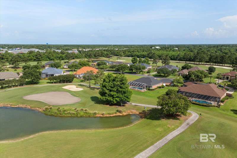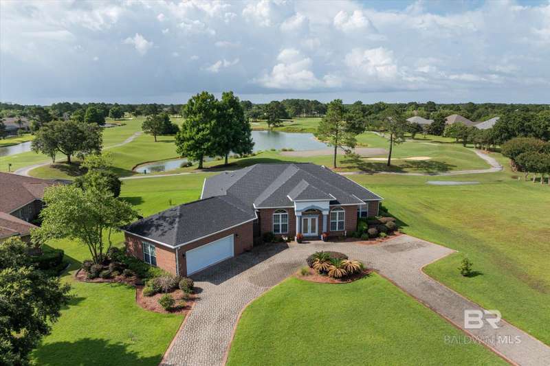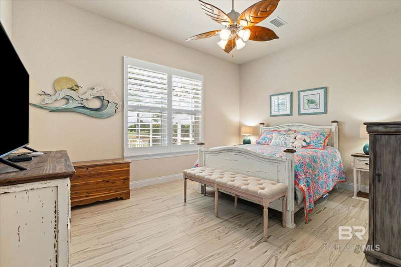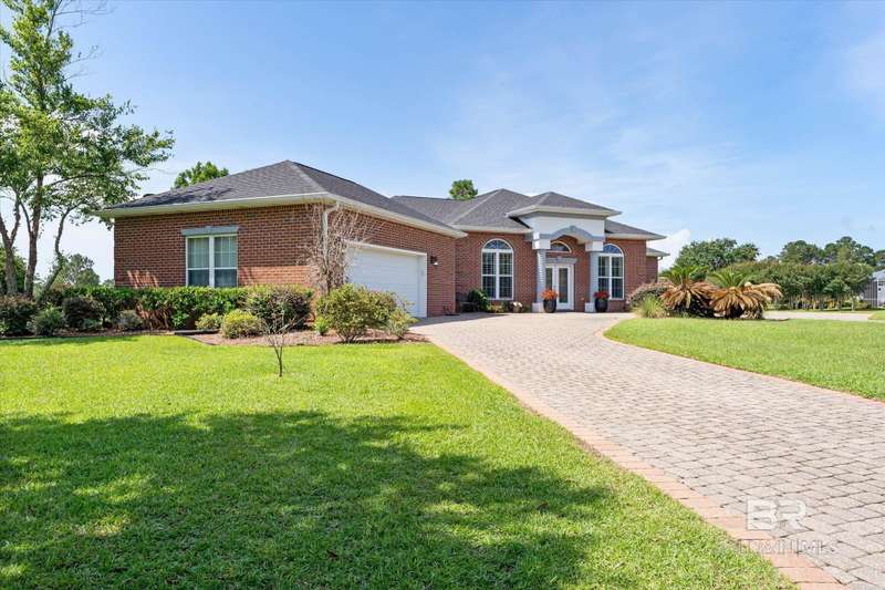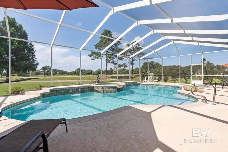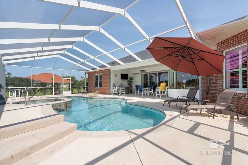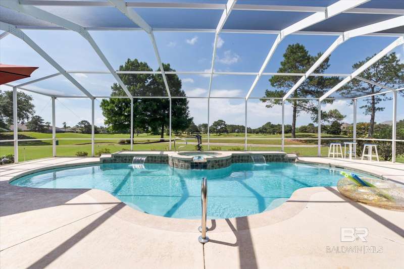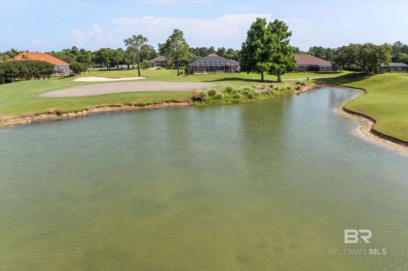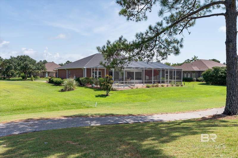 Understated elegance with a hint of modern accents is reflected in this home in the verdant golf community of Craft Farms in Gulf Shores, AL. Located in Cypress Bend Village off the 10th hole, the home showcases high ceilings, plantation shutters throughout, tile flooring, a separate formal dining room, and a large living room with a gas-burning fireplace. The kitchen offers newer quartz countertops and stainless-steel appliances that will make cooking and entertaining a dream. The primary bedroom and bath in the east wing of the house are both spacious and will easily accommodate all your needs; and the walk-in closets offer plenty of storage solutions. If work is what you require then retreat to the den/office through the beautiful French doors that also allow an easy view of the open living area. The additional bedrooms situated in the west wing of the home, will also provide additional space for you and your family. This home also includes a fully screened-in lanai, salt water pool and jacuzzi, and a water view that will please your senses. If you are an avid golfer then the garage was built with you in mind. Enjoy easy access to the top-rated golf courses with a separate golf cart entrance at the rear of the garage. The roof that was updated in 2020, and the AC's installed in 2019. The home is sold unfurnished and the mini fridge and ice maker will not convey. All measurements and dimensions are an approximation. Information deemed important to be verified by Buyer and Buyers Agentduring due diligence. Buyer to verify all information during due diligence Buyer to verify all information during due diligence.