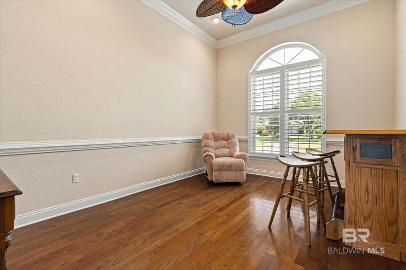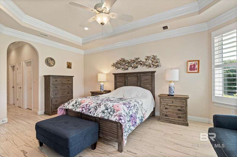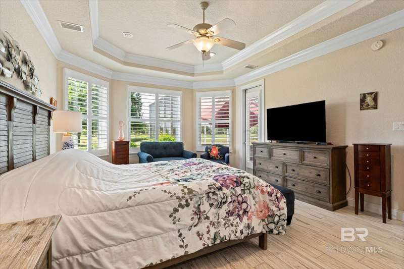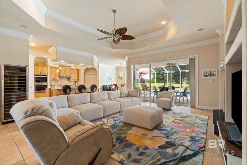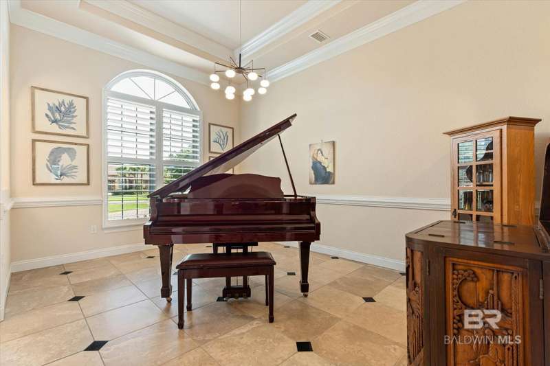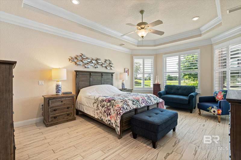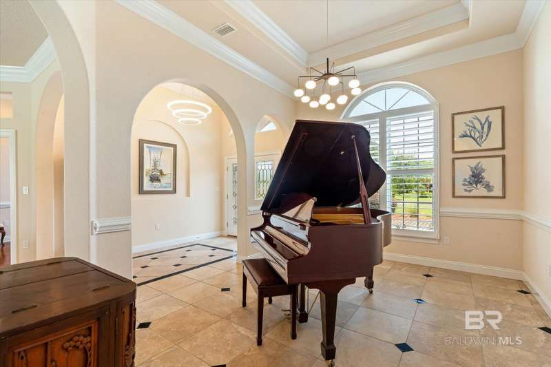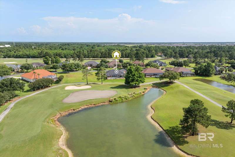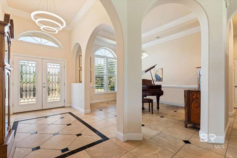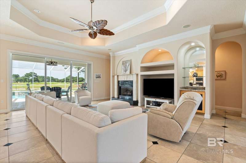 Understated elegance with a hint of modern accents is reflected in this home in the verdant golf community of Craft Farms in Gulf Shores, AL. Located in Cypress Bend Village off the 10th hole, the home showcases high ceilings, plantation shutters throughout, tile flooring, a separate formal dining room, and a large living room with a gas-burning fireplace. The kitchen offers newer quartz countertops and stainless-steel appliances that will make cooking and entertaining a dream. The primary bedroom and bath in the east wing of the house are both spacious and will easily accommodate all your needs; and the walk-in closets offer plenty of storage solutions. If work is what you require then retreat to the den/office through the beautiful French doors that also allow an easy view of the open living area. The additional bedrooms situated in the west wing of the home, will also provide additional space for you and your family. This home also includes a fully screened-in lanai, salt water pool and jacuzzi, and a water view that will please your senses. If you are an avid golfer then the garage was built with you in mind. Enjoy easy access to the top-rated golf courses with a separate golf cart entrance at the rear of the garage. The roof that was updated in 2020, and the AC's installed in 2019. The home is sold unfurnished and the mini fridge and ice maker will not convey. All measurements and dimensions are an approximation. Information deemed important to be verified by Buyer and Buyers Agentduring due diligence. Buyer to verify all information during due diligence Buyer to verify all information during due diligence.