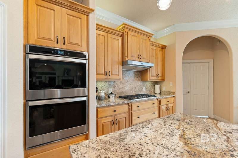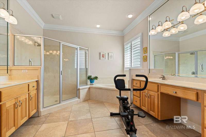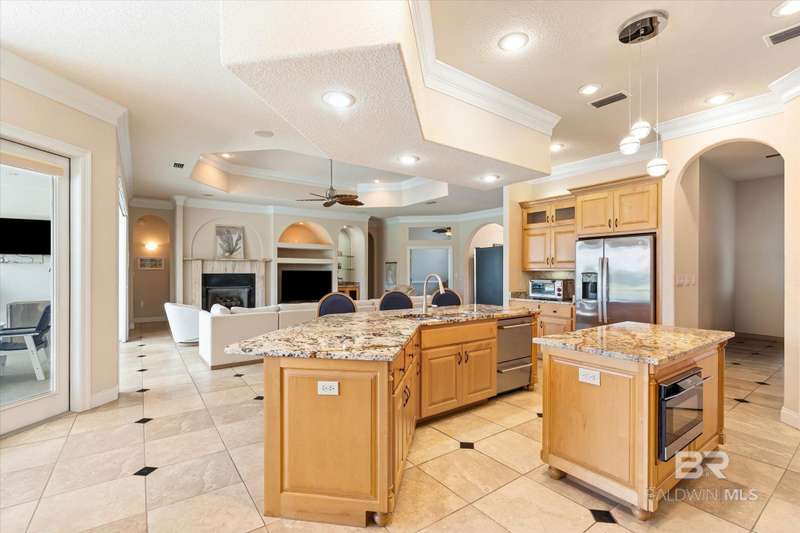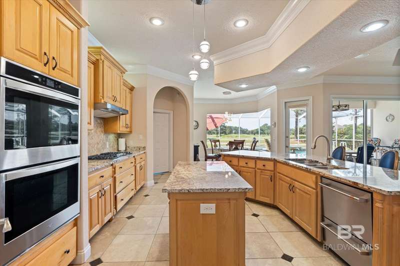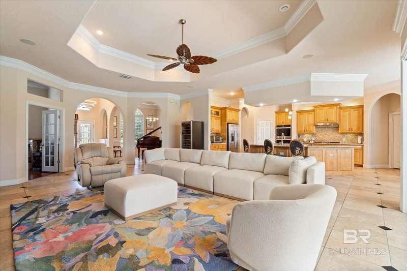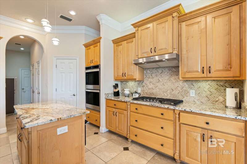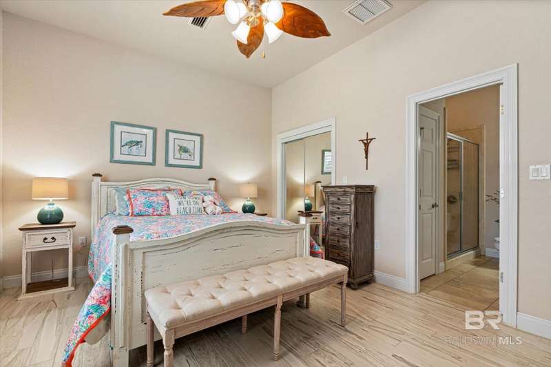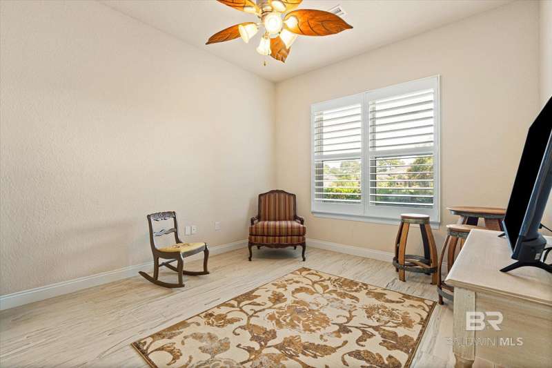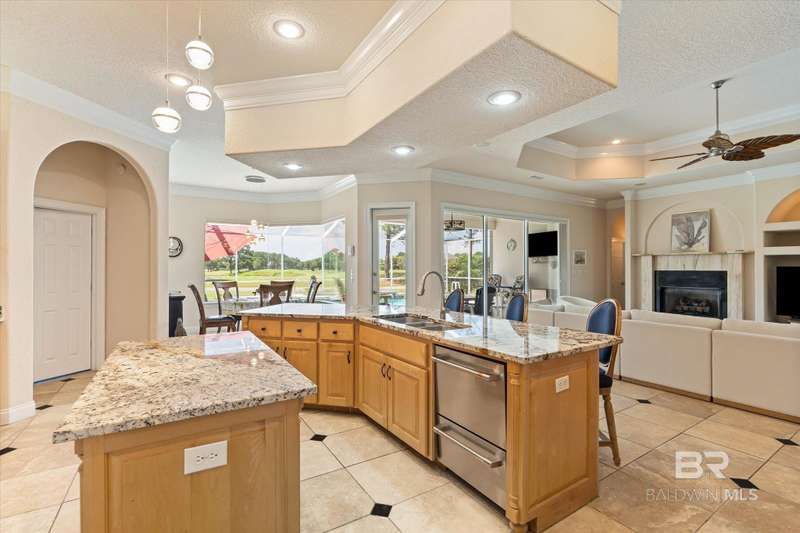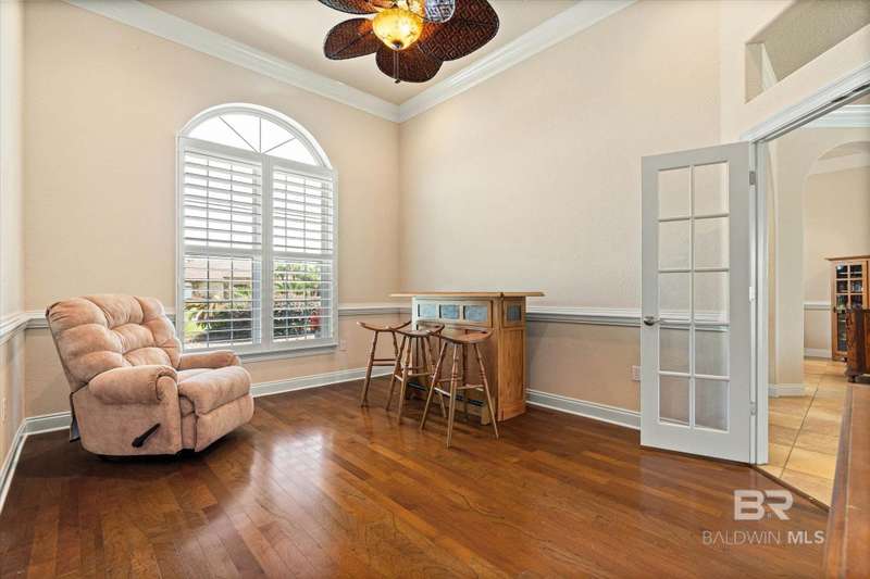 Understated elegance with a hint of modern accents is reflected in this home in the verdant golf community of Craft Farms in Gulf Shores, AL. Located in Cypress Bend Village off the 10th hole, the home showcases high ceilings, plantation shutters throughout, tile flooring, a separate formal dining room, and a large living room with a gas-burning fireplace. The kitchen offers newer quartz countertops and stainless-steel appliances that will make cooking and entertaining a dream. The primary bedroom and bath in the east wing of the house are both spacious and will easily accommodate all your needs; and the walk-in closets offer plenty of storage solutions. If work is what you require then retreat to the den/office through the beautiful French doors that also allow an easy view of the open living area. The additional bedrooms situated in the west wing of the home, will also provide additional space for you and your family. This home also includes a fully screened-in lanai, salt water pool and jacuzzi, and a water view that will please your senses. If you are an avid golfer then the garage was built with you in mind. Enjoy easy access to the top-rated golf courses with a separate golf cart entrance at the rear of the garage. The roof that was updated in 2020, and the AC's installed in 2019. The home is sold unfurnished and the mini fridge and ice maker will not convey. All measurements and dimensions are an approximation. Information deemed important to be verified by Buyer and Buyers Agentduring due diligence. Buyer to verify all information during due diligence Buyer to verify all information during due diligence.
