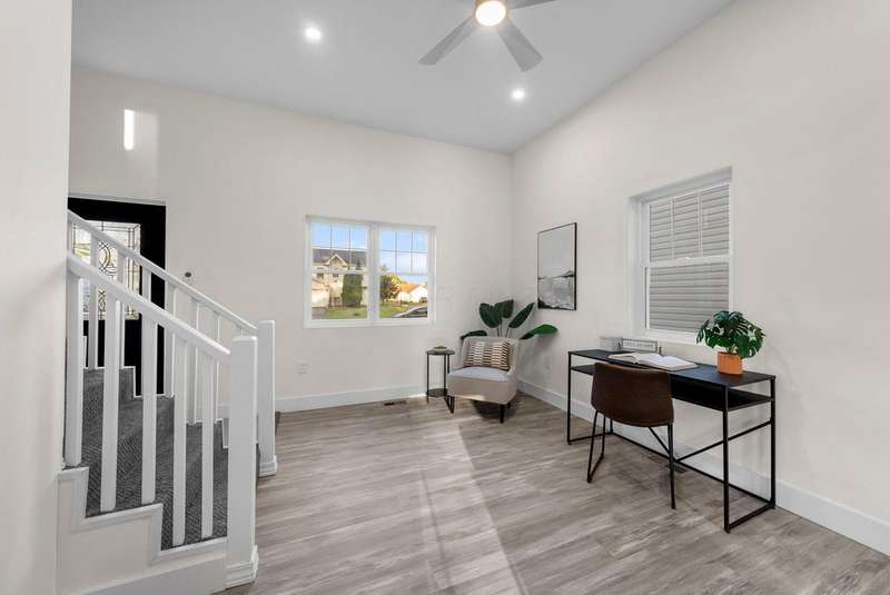 Welcome to 887 Harbinger Circle, a stunning brand-new build in Columbus offering a perfect blend of modern design, functionality, and peace of mind. With over 2,100 square feet of finished living space and an additional 736 sq ft walk-out basement ready to be finished, this home offers room to grow and enjoy for years to come.Step inside and immediately notice the soaring 11-foot ceilings and abundant natural light that fill the open-concept main level. The kitchen is a true centerpiece?equipped with stainless steel appliances, quartz countertops, a built-in bar area, and stylish gray shaker cabinets. It opens seamlessly to the dining and living areas, making it perfect for entertaining or relaxing at home.Durable LVT flooring runs throughout the home, offering both style and long-lasting performance. Upstairs, the spacious primary suite includes a private en suite bath, while three additional bedrooms offer plenty of space for family, guests, a home office, or a personal gym. Every detail has been thoughtfully designed to provide comfort and flexibility.The full walk-out basement offers exceptional potential?whether you envision a media room, home gym, or additional living space, it's ready for your finishing touch. Outside, enjoy a private backyard that provides the perfect setting for morning coffee, evening gatherings, or weekend barbecues.With new construction, you'll enjoy low maintenance, energy-efficient systems, and the confidence of moving into a never-before-lived-in home. Located in a growing area of Columbus, this home offers a rare combination of quality, space, and convenience. Don't miss your chance to make 887 Harbinger Circle your next chapter.Location is key, and 887 Harbinger Circle delivers.Situated in Whitehall, a vibrant suburb just east of downtown Columbus, this home offers easy access to major highways, including I-270 and U.S. Route 40, facilitating quick commutes and travel.