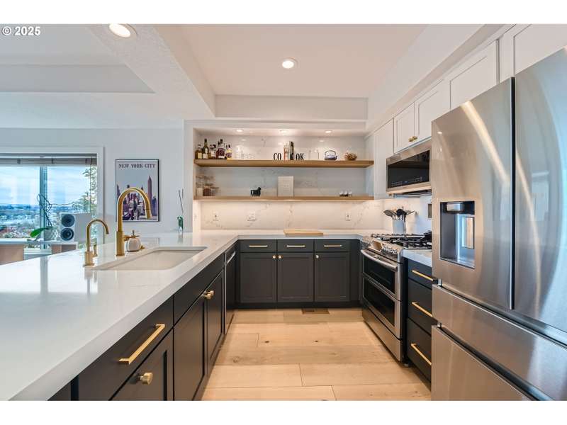 Looking for a turn-key / move-in ready home in John's Landing? This is it! Top notch finishes with a view of Mt Hood and the River! 3BD + 2.5BA + oversized 2-car garage + XXL storage space. Don't let the unassuming exterior fool you: this home lives big and offers incredible storage and parking (must see in person to truly appreciate all that it offers!). This end unit home has privacy and territorial views from the living space and bedrooms! No details left out: wide plank engineered floors, custom cabinetry and built-ins throughout, 2 gas fireplaces, 3cm quartz kitchen countertops, walk in pantry with organizers, steam showers, bathrooms with heated floors, central vac, A/C, air purifier... The outdoor deck is perfect to relax as you look out to the fantastic views of Mt Hood and the river. Extra deep and oversize 2-car tandem garage with EV charger and so much room for storage or toys (motorcycle, bikes...)! Additional extra deep and extra wide storage room under the house with tall ceilings and concrete floor. Ask your agent for the updates & upgrades details and schedule an in-person tour. Fridge, washer, dryer are included. Low HOA dues ($950 / year). Enjoy all that John's Landing offers: shops, restaurants (Elephant's Deli, St Honore etc...), Willamette Park (26 acres with boat docks and ramps, soccer field, tennis courts, picnic table, playground, trails, dog off-leash park...). It is also convenient to downtown, Lake Oswego, OHSU etc... Amazing home in an amazing neighborhood! [Home Energy Score = 7. HES Report at https://rpt.greenbuildingregistry.com/hes/OR10067247]