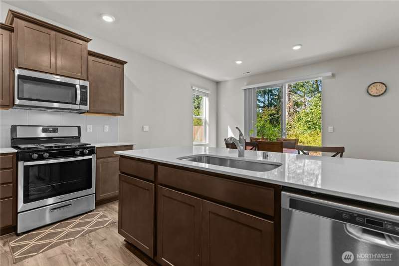Located in highly sought-after Timbers community in Lake Stevens. This nearly new, barely lived-in home offers peace & privacy—bordered by protected native growth veg. area on two sides, with neighbors on just one side of the 3,920 SF level lot. Inside you'll enjoy wide open living spaces, 2 full baths up + 1/2 bath on main level, gas cooking, on-demand hot water, smart home features, upstairs laundry & attached 2 car garage. All 4 beds are conveniently located up. Community perks inc. 3 parks w/athletic court, playground & scenic trails. A short walk to top-rated schools: Lake Stevens Sr. High & Highland Elem. Minutes from Lake Stevens recreation & amenities, Costco & major highways—perfect for easy commuting. Quiet, clean & move-in ready!