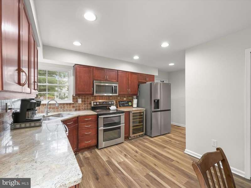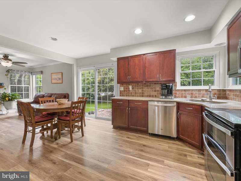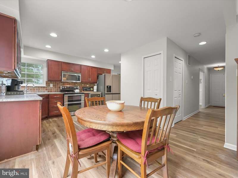 Spacious and beautifully updated colonial set on a premium corner lot offers comfort, style, and room to grow, all in an ideal location near major commuter routes and just minutes from shopping, dining, and entertainment. Recent updates include a new roof, AC, flooring, carpet, vanities, freshly painted basement, and more! Elegant living and dining rooms feature accent moldings and stylish new flooring, creating the perfect setting for gatherings. The chef's kitchen is equipped with wood cabinetry, stainless steel appliances, recessed lighting, and a decorative tile backsplash, plus a bright breakfast area with walkout access to the expansive stone patio. The inviting family room centers around a cozy wood-burning fireplace. Upstairs, the luxurious primary suite impresses with a spa-like bath featuring a jetted tub, dual vanity, and oversized glass-enclosed shower, with 2 additional bedrooms and an updated hall bathroom completing this level. The finished lower level adds a spacious recreation room and generous storage. Enjoy outdoor living on the level corner lot with plenty of space to relax or entertain. With its blend of modern updates, classic charm, and unbeatable location, this home is the total package.