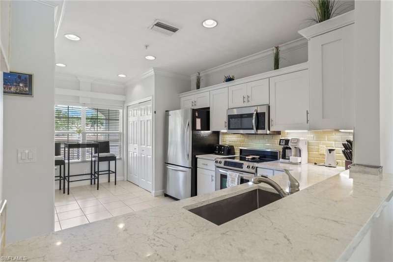 Second-Floor End Unit in Desirable Bridgewater Bay - Welcome to this beautifully maintained second-floor end unit located in the sought-after community of Bridgewater Bay. This spacious condo features tile flooring throughout, offering both style and ease of maintenance. The updated eat-in kitchen is equipped with stainless steel appliances and modern finishes, perfect for everyday living and entertaining. Step out onto the screened lanai and take in serene views of the pond an ideal setting for relaxing or hosting guests. Residents of Bridgewater Bay enjoy access to a variety of resort-style amenities, including a beautiful clubhouse with a billiard room, fully equipped fitness center, tennis courts, and a large community swimming pool - a favorite gathering spot. The community also offers a robust calendar of activities for both residents and tenants to enjoy. Conveniently located near upscale dining, Whole Foods, and other major grocery stores, Bridgewater Bay is just minutes f