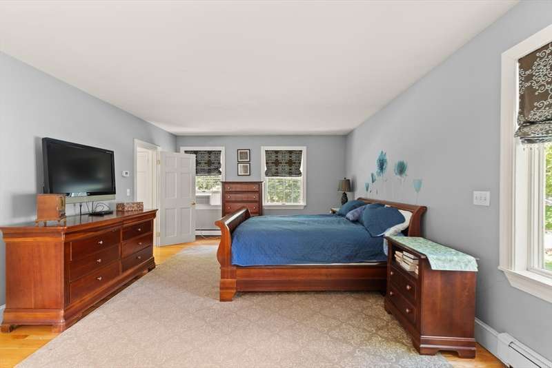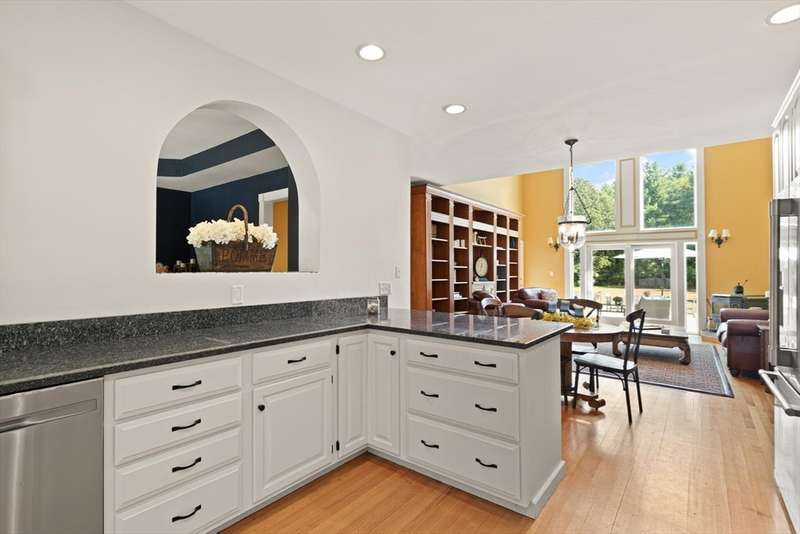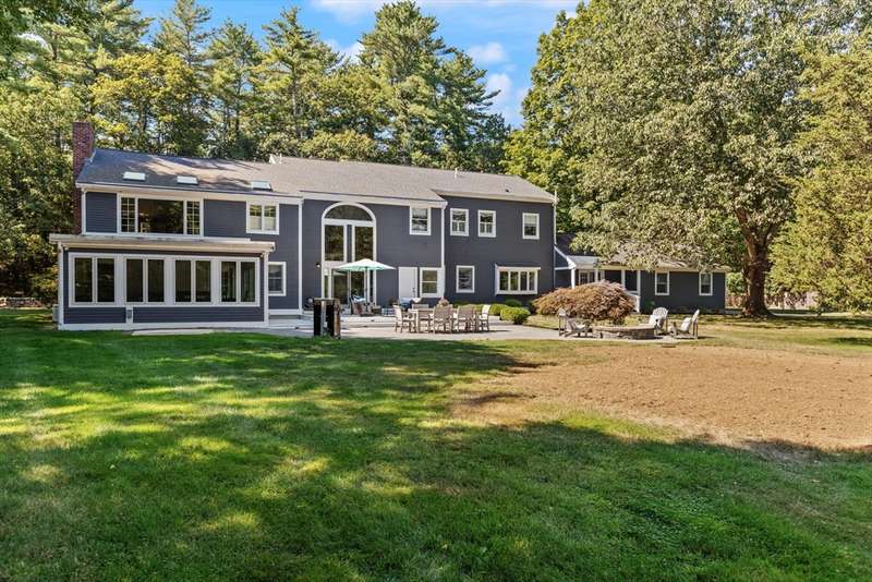 Highly desirable East Boxford beautiful 4-bed 3.5-bath Colonial with a 3 garage spaces in the Historic District surrounded by nature on a level lot with an expansive 1.6-acre yard. Majestic bright two-story entry foyer. First floor formal dining room. Open living/kitchen area the heart of this home loaded with natural light. Enormous windows. Half bath. Laundry. Direct access to 2-car garage. Heated year-round enclosed porch w/gas fireplace. Relax, entertain and watch nature on the beautiful deck/patio. Second floor Primary Suite w/walk in closet, renovated bath w/soaking tub. Two additional bedrooms, a home office with French doors. Full bath and an amazing bonus gathering area with fireplace, pool table (a gift from the seller) and bar area. First floor In-law suite w/fireplaced living area, kitchen, den, bedroom with a 3/4 bath. Direct access to private farmers porch overlooking the yard. Short distance to route 95,the Town Center, Senior Center, schools, Boxford Community Kitchen.