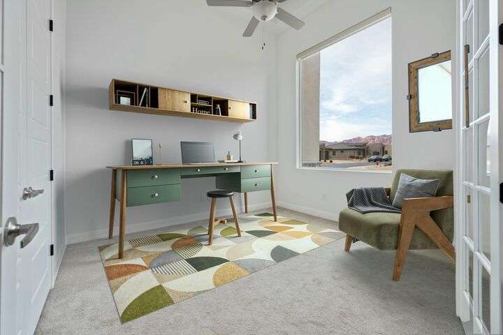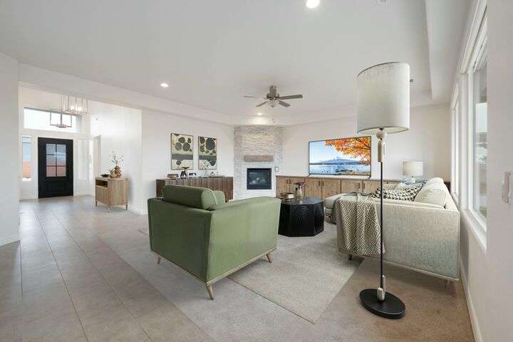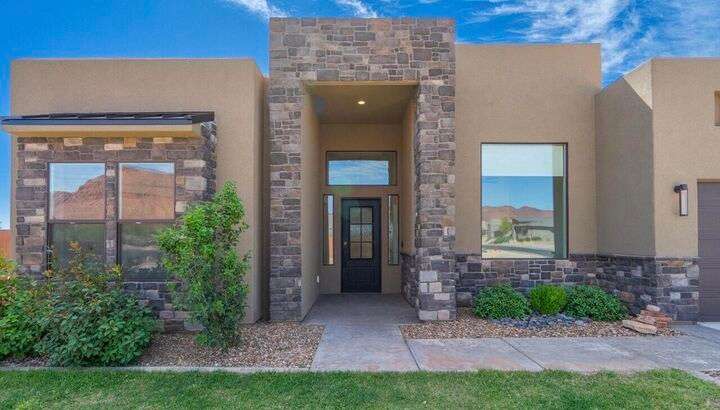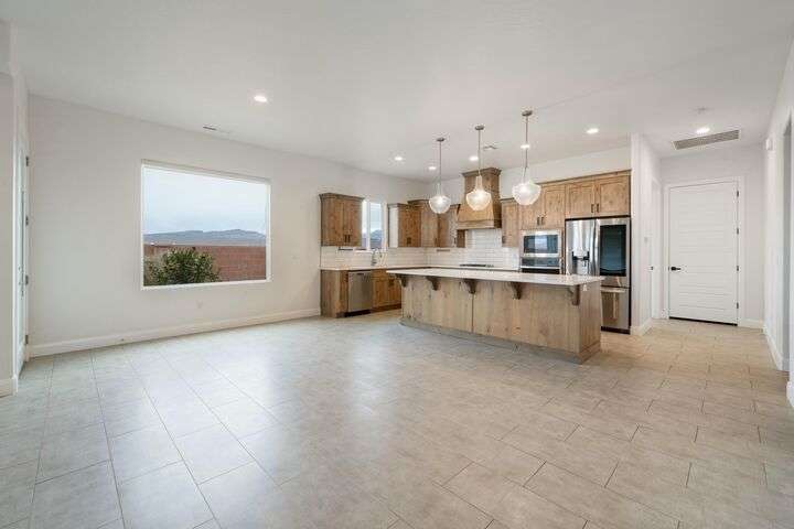 This premier property in Ivins offers everything. Located in the peaceful Anasazi Vista neighborhood under star-filled skies, this home features four spacious bedrooms, high ceilings, and an open-concept great room and kitchen. The fixed picture windows showcase stunning views of the red cliffs and sunsets over the Utah Hills. Well-maintained and move-in ready, this home is easy to show.