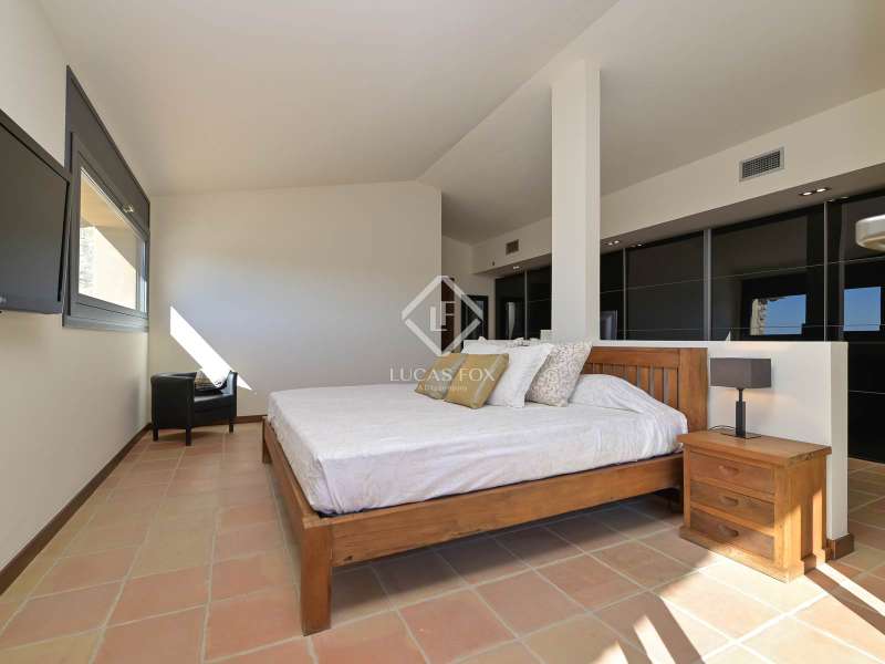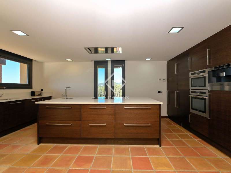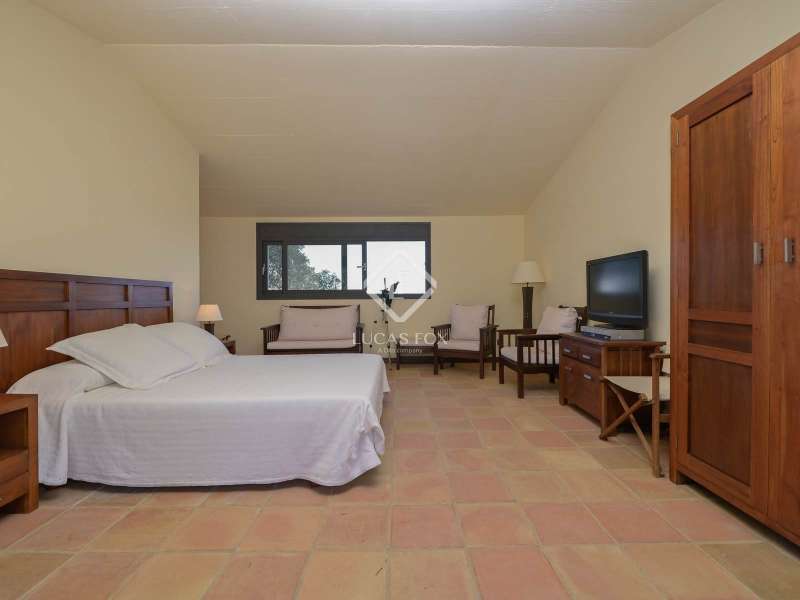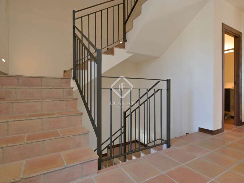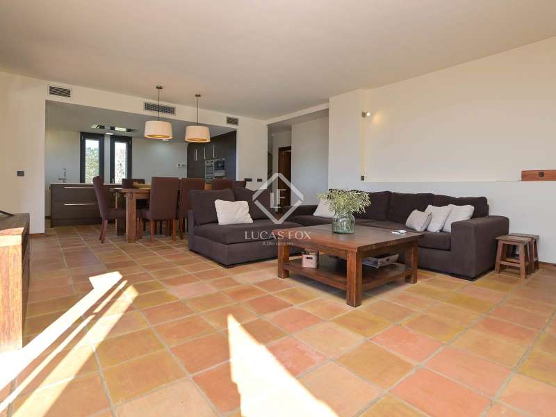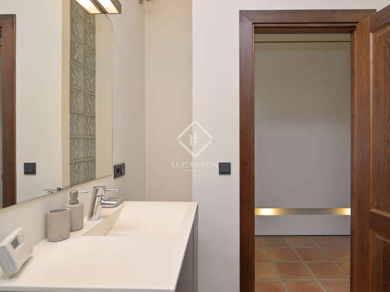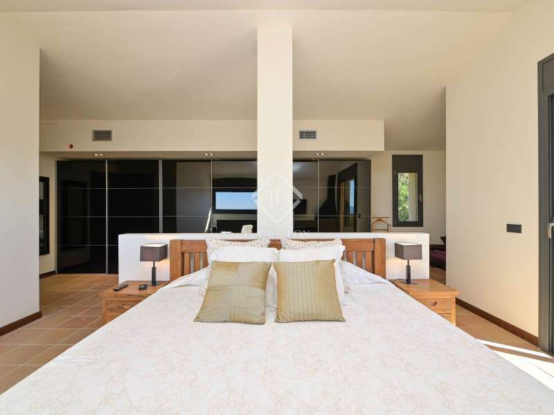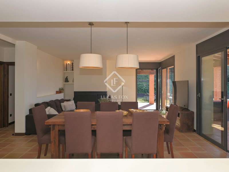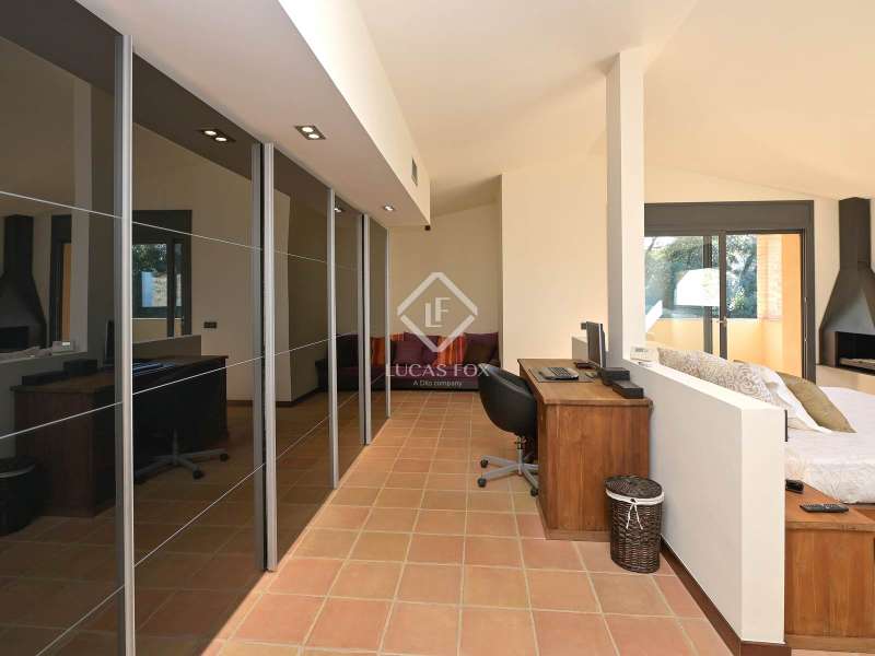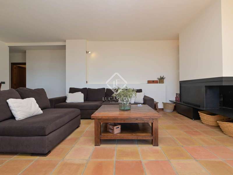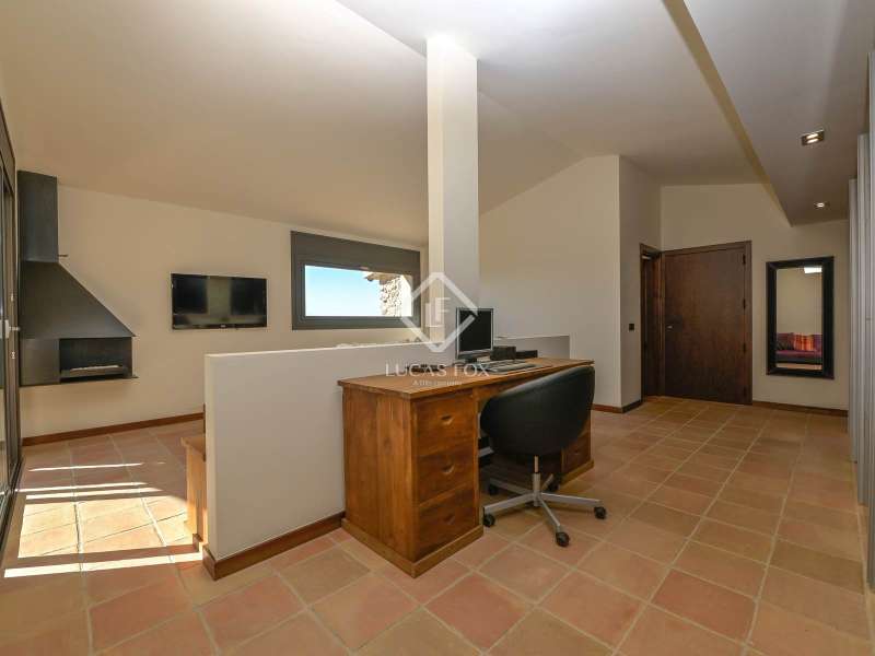 Lucas Fox is pleased to present this unique and characterful villa in Romanyà de la Selva, one of the most exclusive and peaceful areas of Santa Cristina d'Aro, on the Costa Brava. It is located in a protected natural setting, with unparalleled mountain views, just 15 minutes from the area's most idyllic beaches and coves. This 2008 property sits on a generous, sunny plot of 2,881 m². It consists of the main villa and a charming guest house, both designed in a meticulous and elegant rustic style. The Mediterranean garden extends over several levels and includes chill-out areas , fruit trees, and a spectacular saltwater pool. The main villa faces southwest, allowing for exceptional light throughout the day and unforgettable sunsets. The main floor offers a large open space with high wooden ceilings and warm finishes that houses the living room with a fireplace, the dining room , and a designer kitchen with a central island and high-end equipment. From here, there is direct access to a spacious porch with a summer dining room , a chill-out area , and a barbecue, ideal for celebrations or relaxing with the views. On this same level are two double bedrooms with built-in wardrobes, one of them with direct access to the garden, and a full bathroom . The upper floor is dedicated exclusively to the main bedroom suite, with a fireplace, dressing area, private study , and a balcony with panoramic mountain views. An elegant bathroom with a bathtub, shower, and floor-to-ceiling windows completes the bedroom. On the basement floor , the villa features a large garage for several vehicles, a gym with a Jacuzzi, a utility room , and a utility room. It also has a separate for staff apartment with a living room, kitchen, and full bathroom . This villa stands out for its noble materials, such as floors and porches of artisanal tuff and solid wood, as well as for its high-level equipment: underfloor heating, central air conditioning by heat pump, security shutters, water softener, preparation for installation of an elevator The guest house has a spacious double bedroom and full bathroom , with the possibility of expansion according to the buyer's needs. This villa offers an incomparable lifestyle in a setting of great natural beauty, with complete privacy and tranquility, just minutes from the Costa Brava's best beaches, golf courses, and city centre amenities . For more information or to arrange a private viewing, please do not hesitate to contact us.