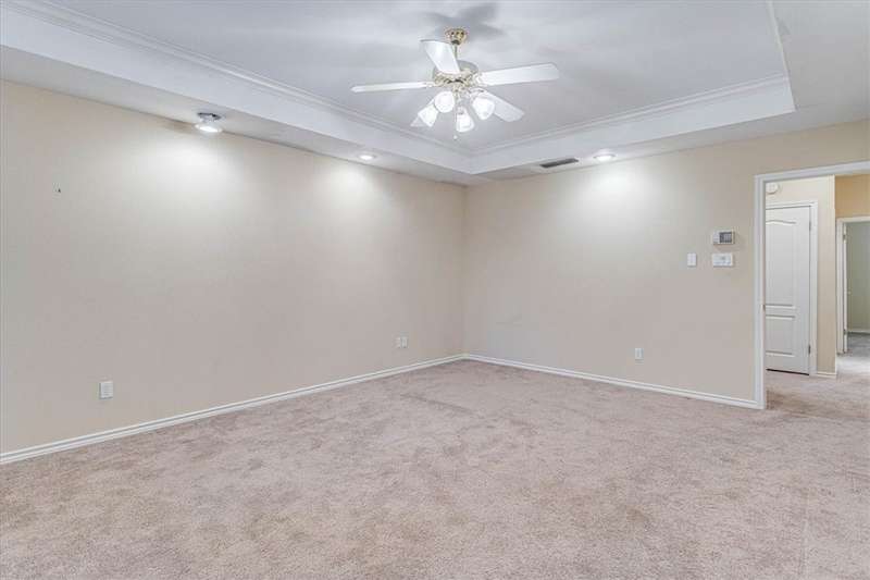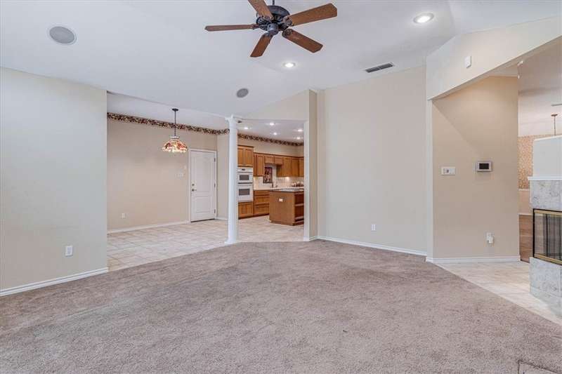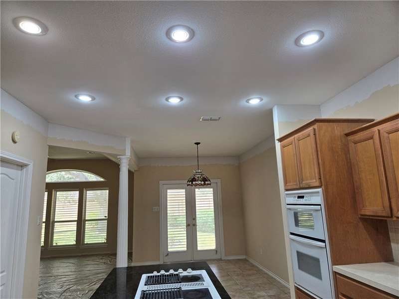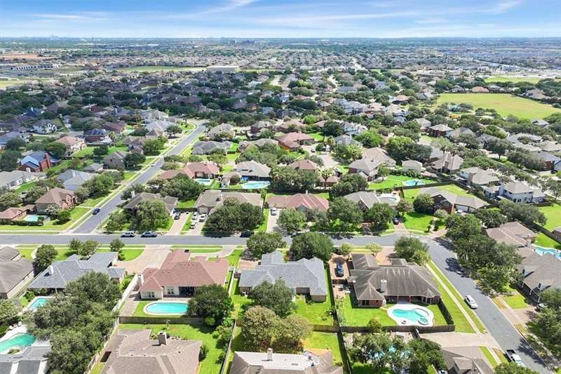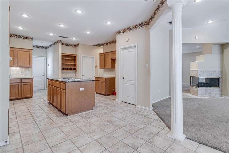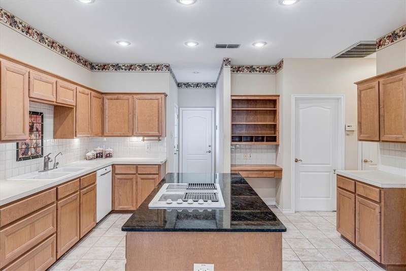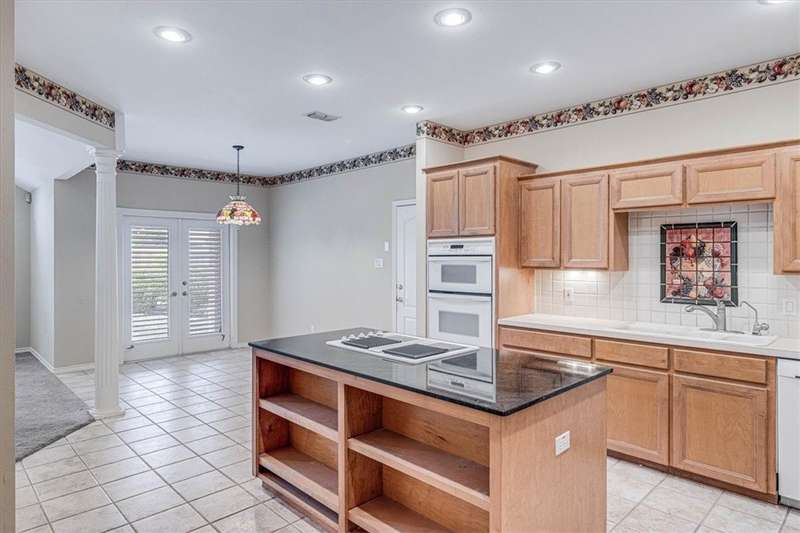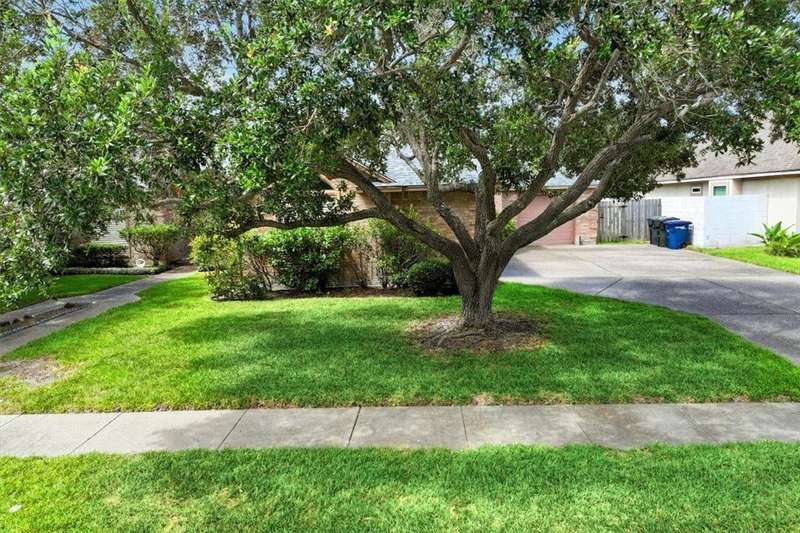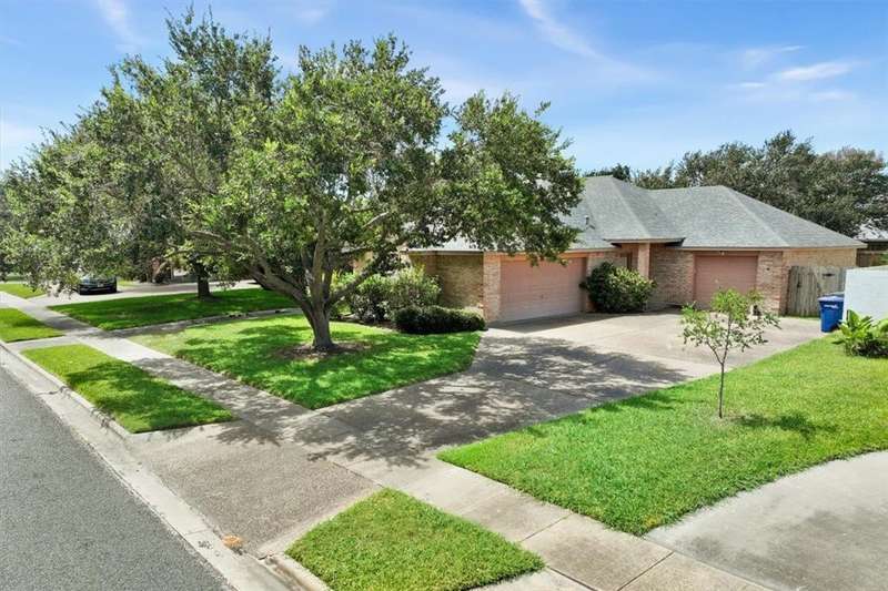 One of the most gracious, well-loved Kings Crossing one-story home that offers over 2,700 square feet with 4 bedrooms (one perfect for a home office). Tremendous 99x135 lot, the home invites outdoor living-imagine a pool, gardens, or entertaining space-French doors open to yard from living area and also to a second area from kitchen/breakfast. For those interested in split master bedroom, take a look at the floor plan attached which shows a builder's suggestion for an easy separation. There is a second living area that provides flexible options to suit your preferences... maybe a pool table... This is a home you can move right into and add your personal preferred updates. Property also features a spacious three-car garage (NCAD lists 880 sq. ft.) with a split 2/1 design for ideal separation and use. Additional highlights include two hot water heaters, a cedar closet, a utility room with cabinetry, and louvered hurricane shutters. The roof was replaced in 2018. HVAC 2020. The kitchen is a chef's delight with a large walk-in pantry, a granite-topped island with down-draft exhaust cooktop, abundant cabinetry, and under-counter shelving for all your cookbooks. Kitchen backs to the oversized single car garage and offers potential for additional living space. So many people need that separate, yet inclusive living space. Take a look today. Be in your new home for Christmas.