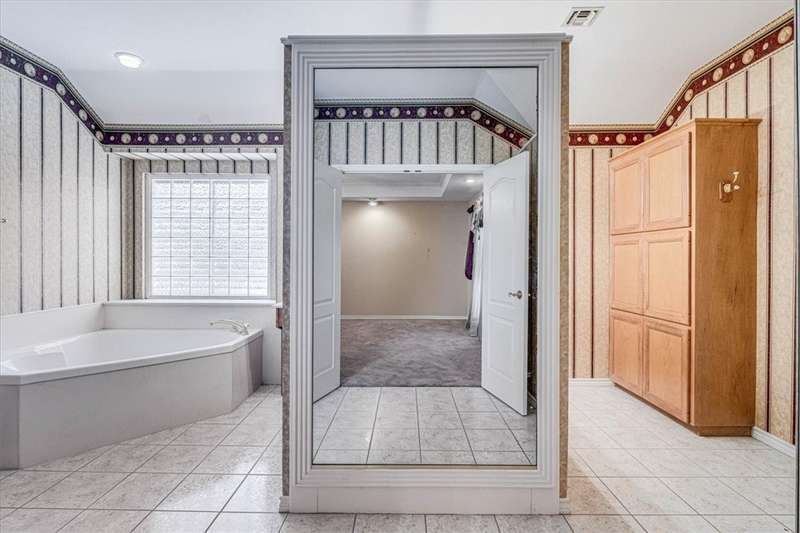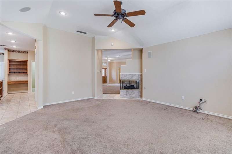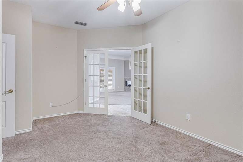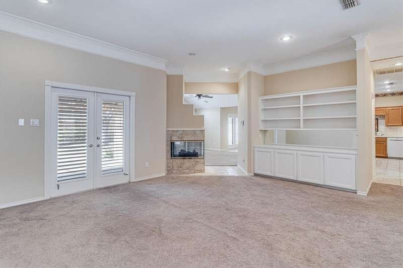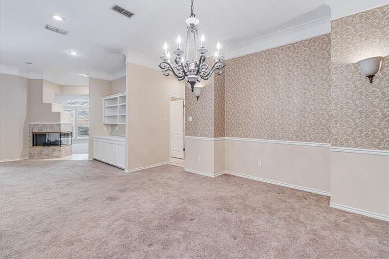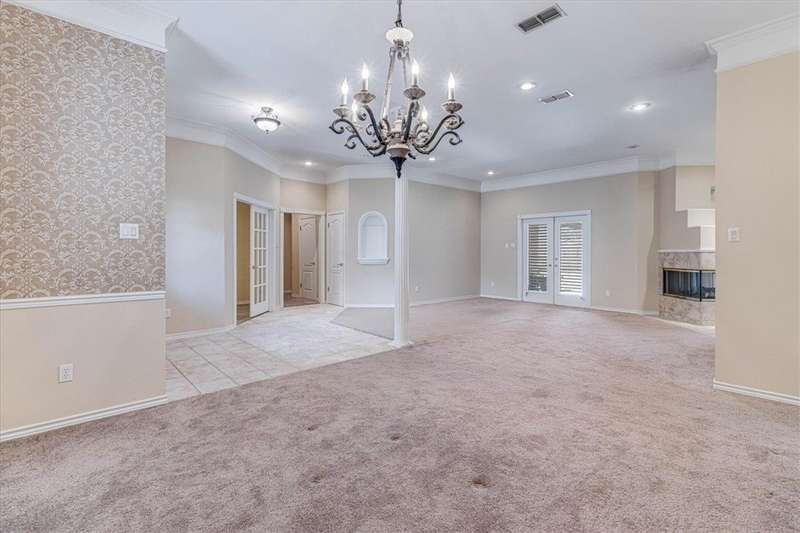 This gracious, well-loved Kings Crossing one-story home offers over 2,700 square feet with 4 bedrooms (one perfect for a home office). Set on a tremendous 99x135 lot, the home invites outdoor living-imagine a pool, gardens, or entertaining space-accessible through two sets of French doors from the main living areas. A second living area provides flexible options to suit your needs. A home you can move right into and add your personal preferred updates. Property also features a spacious three-car garage (NCAD lists 880 sq. ft.) with a split 2/1 design for ideal separation and use. Additional highlights include two hot water heaters, a cedar closet, a utility room with cabinetry, and louvered hurricane shutters. The roof was replaced in 2018. HVAC 2020. The kitchen is a chef's delight with a large walk-in pantry, a granite-topped island with down-draft exhaust cooktop, abundant cabinetry, and under-counter shelving for all your cookbooks. Kitch backs to 1 car garage and offers potential for additional living space. So many people need that separate, yet inclusive living space. Take a look!